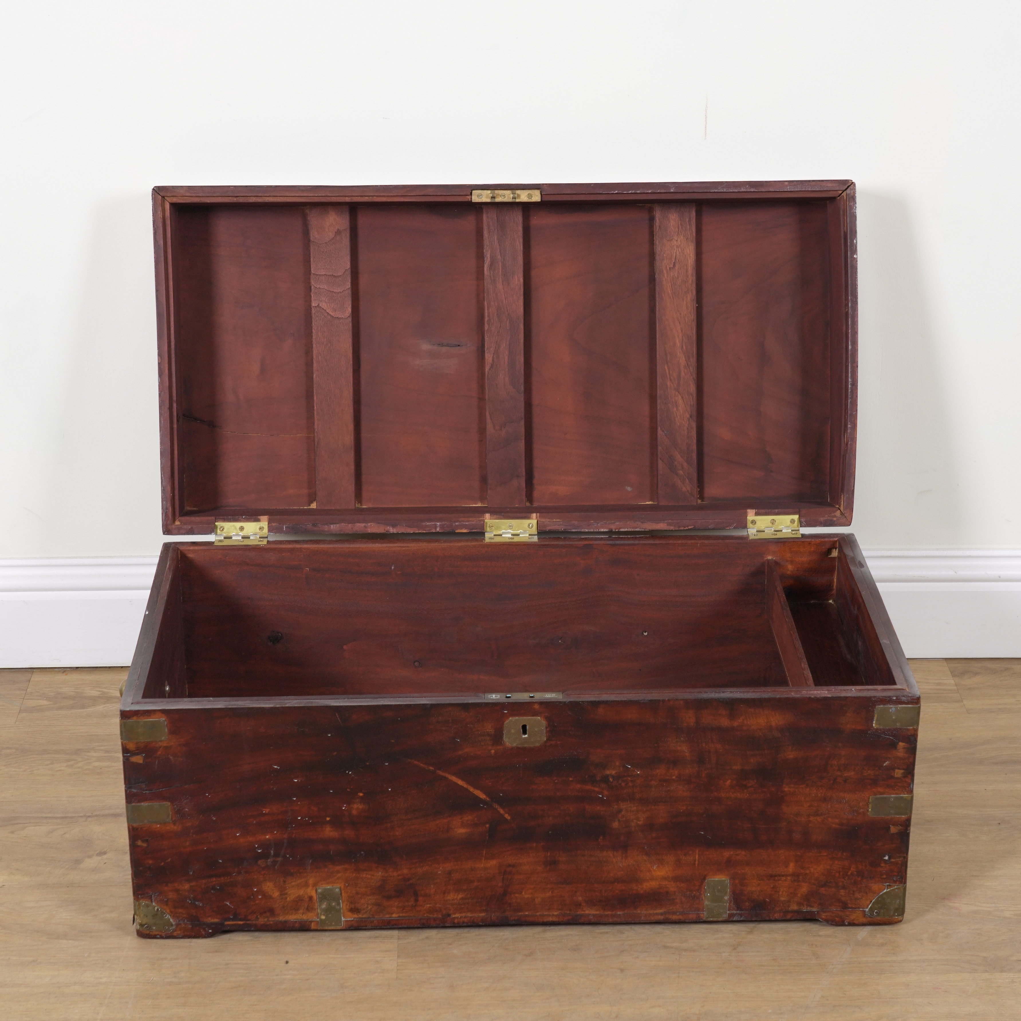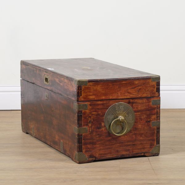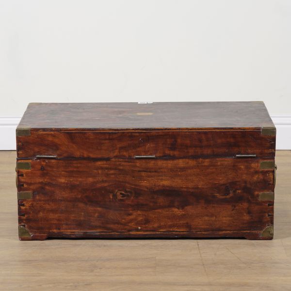AN EARLY 20TH CENTURY BRASS BOUND CAMPHOR WOOD TRUNK
