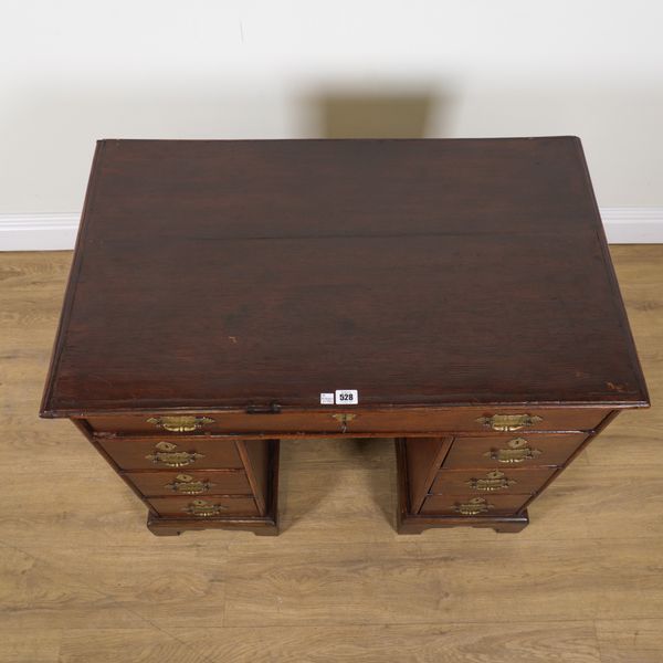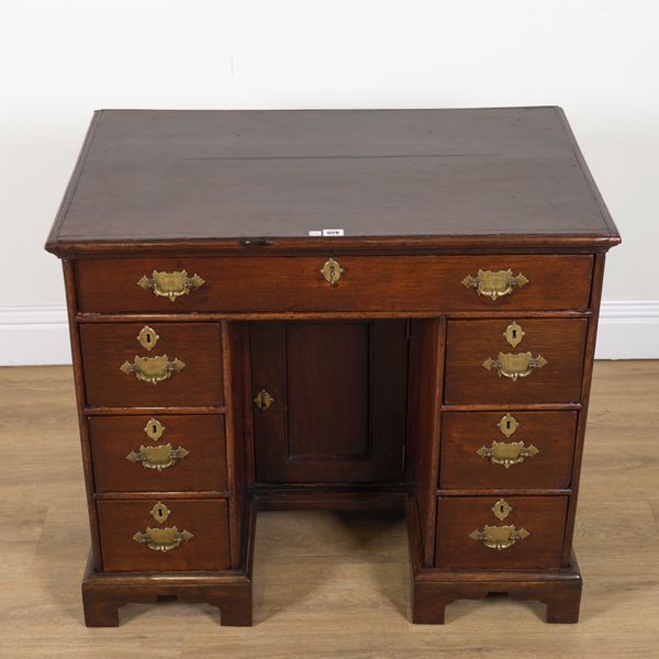 A GEORGE II OAK KNEEHOLE WRITING DESK