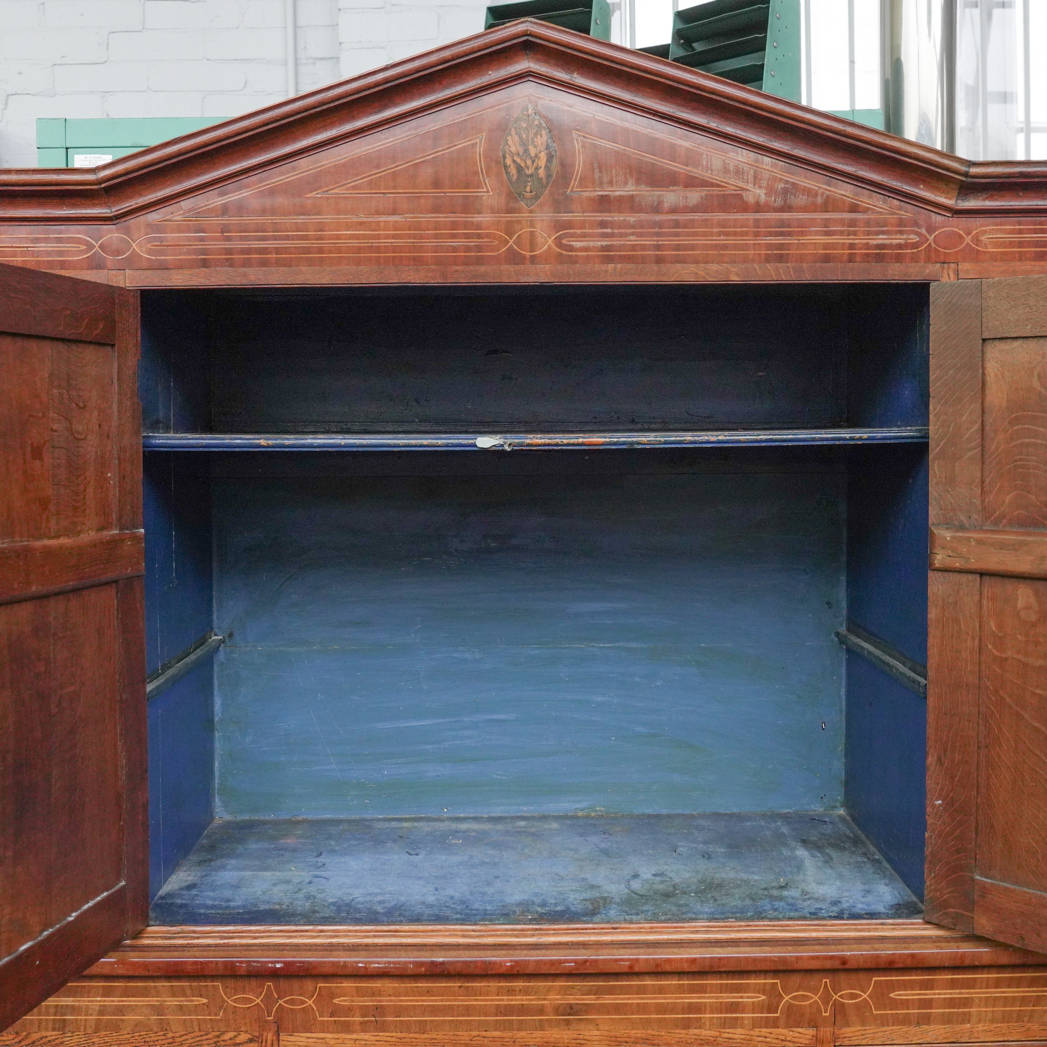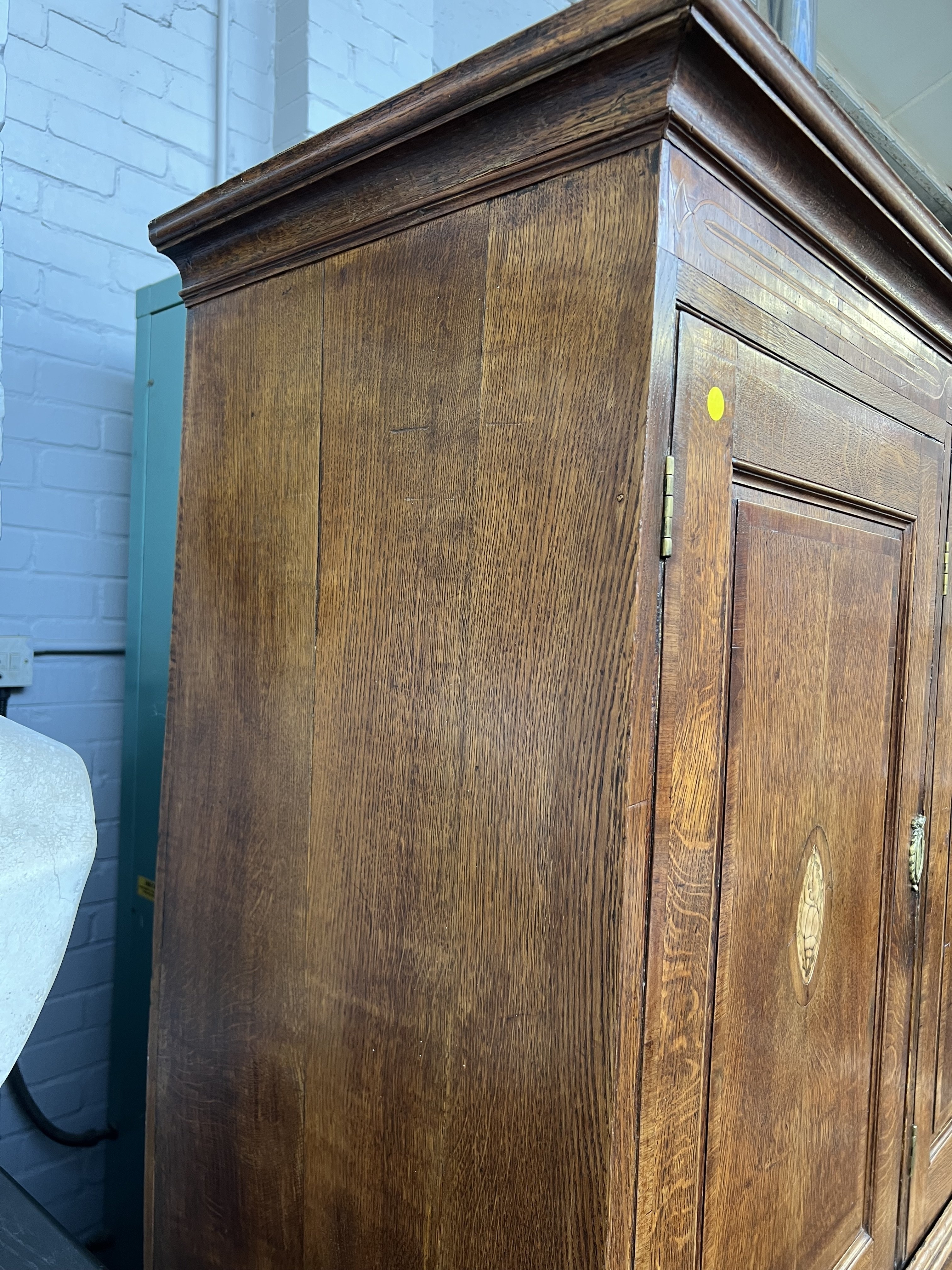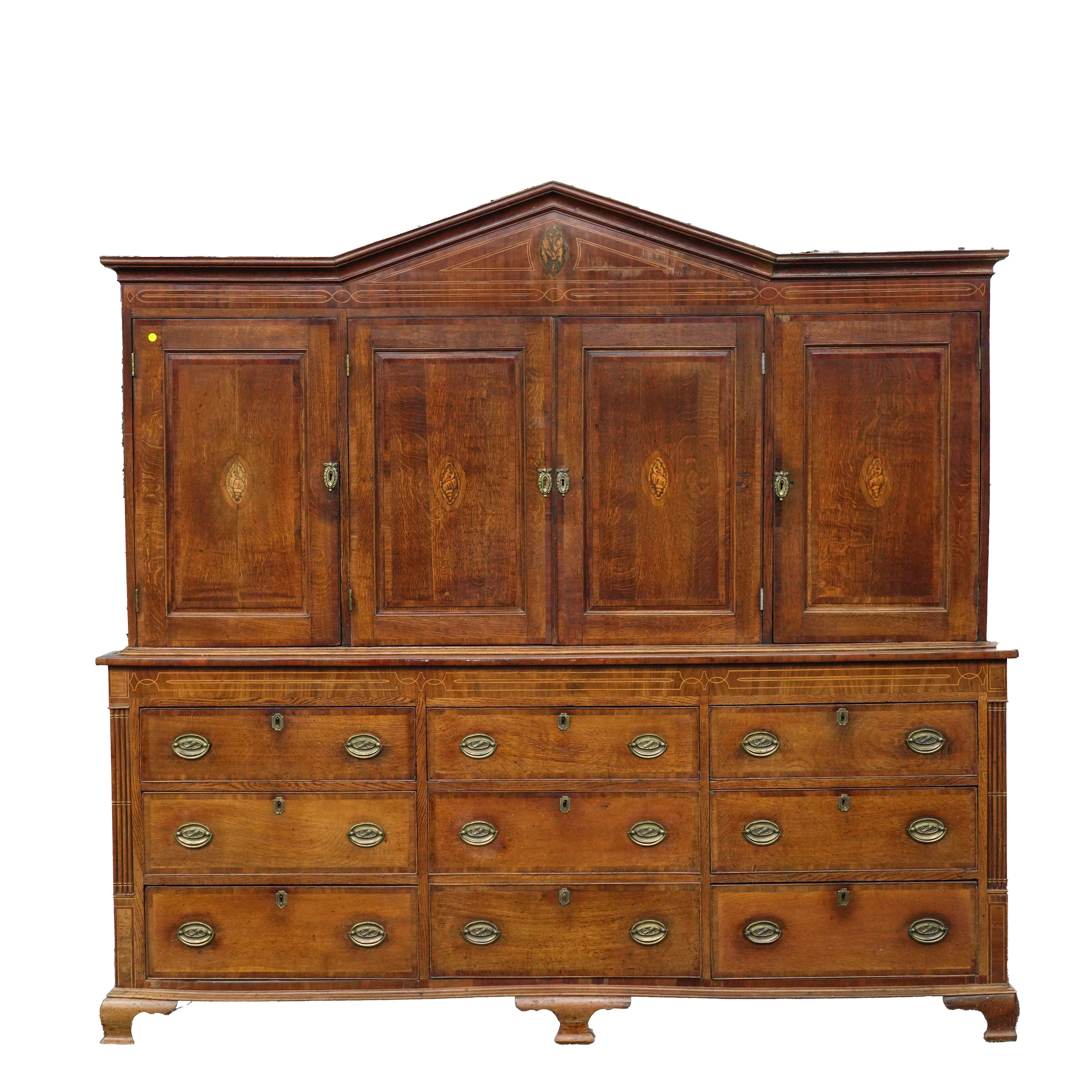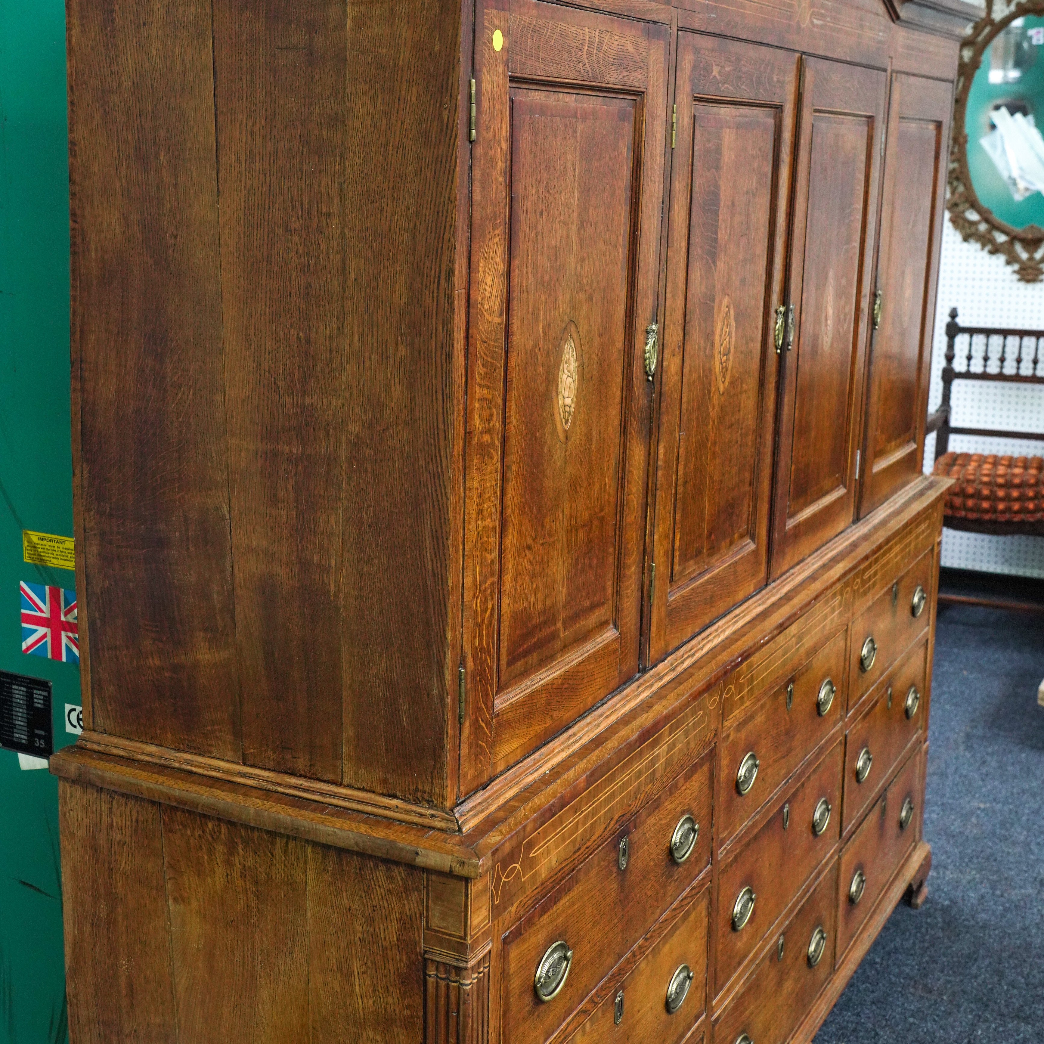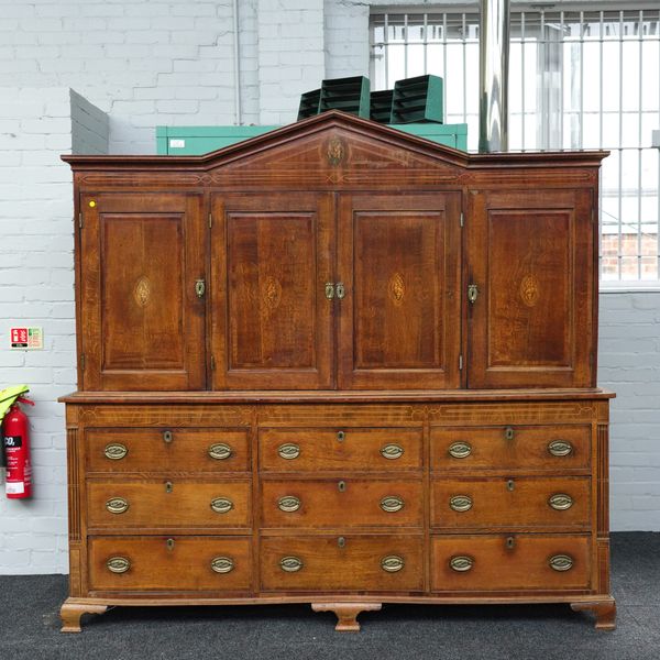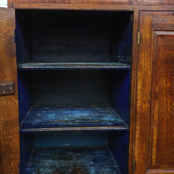 A GEORGE III INLAID OAK AND MAHOGANY HOUSEKEEPER'S CUPBOARD