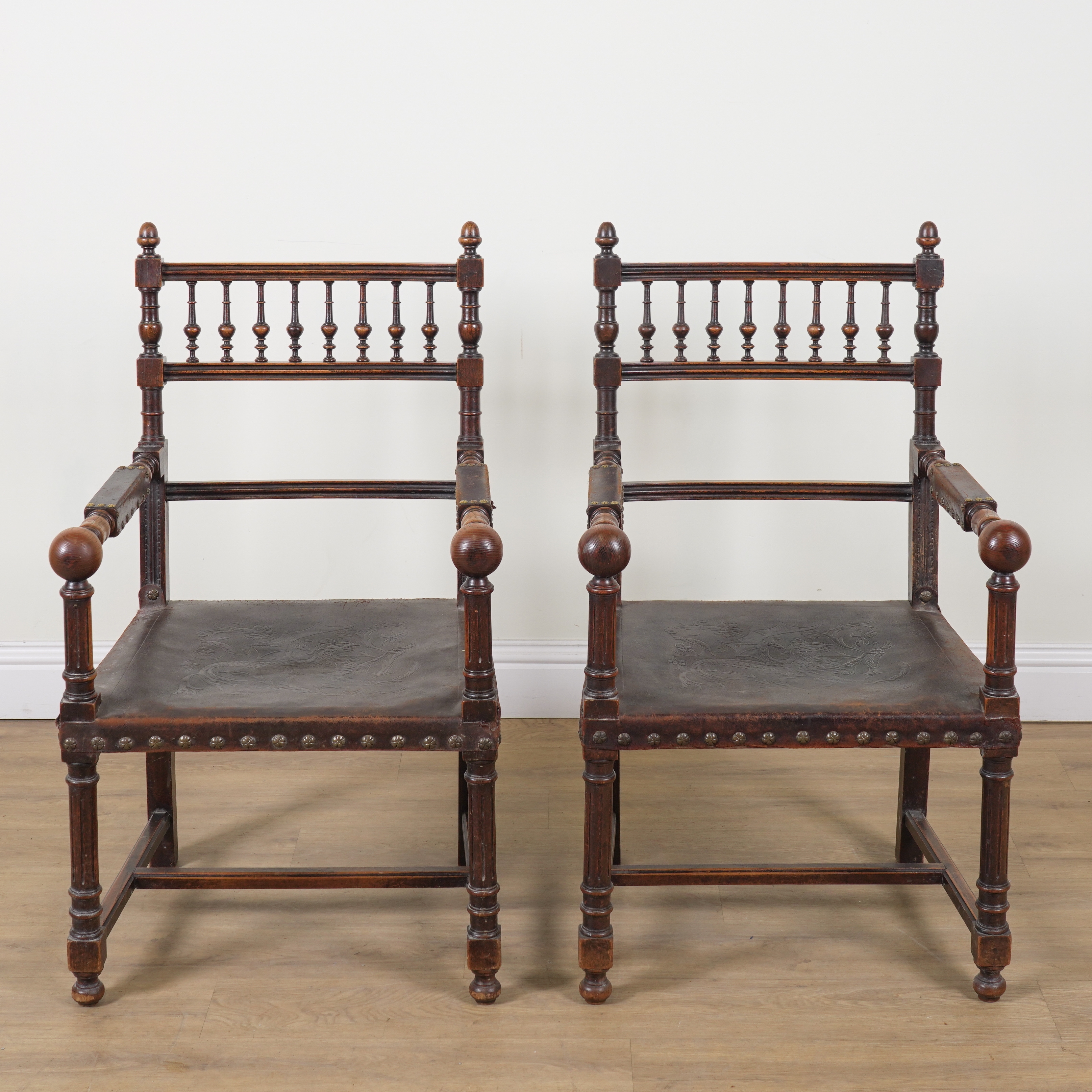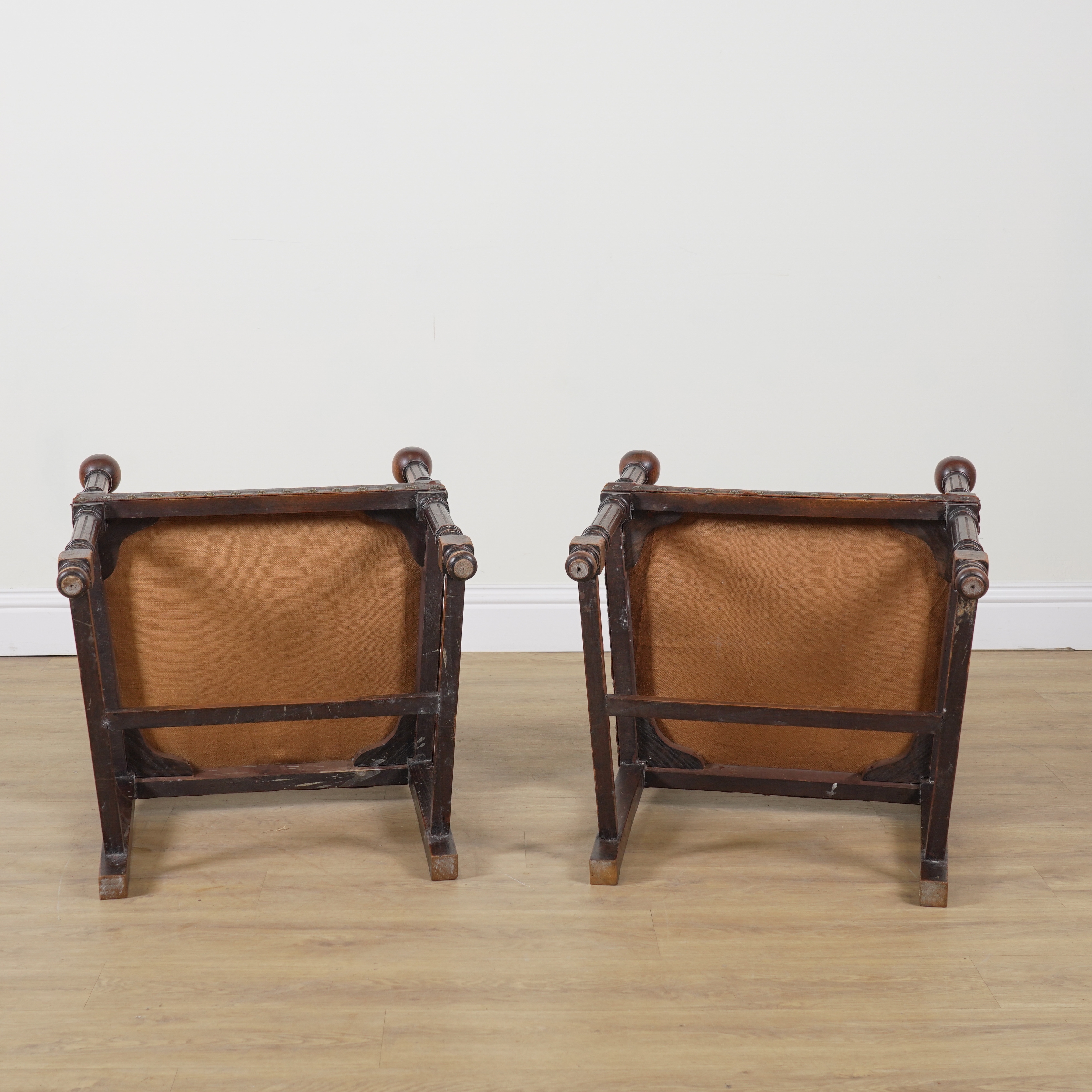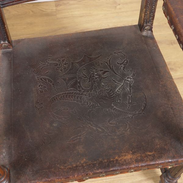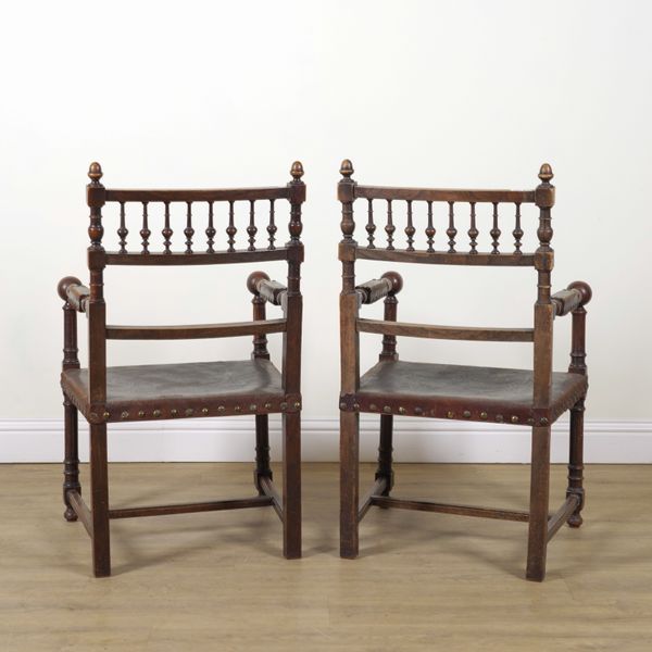 A PAIR OF 19TH CENTURY CONTINENTAL OAK FRAMED OPEN ARMCHAIRS (2)