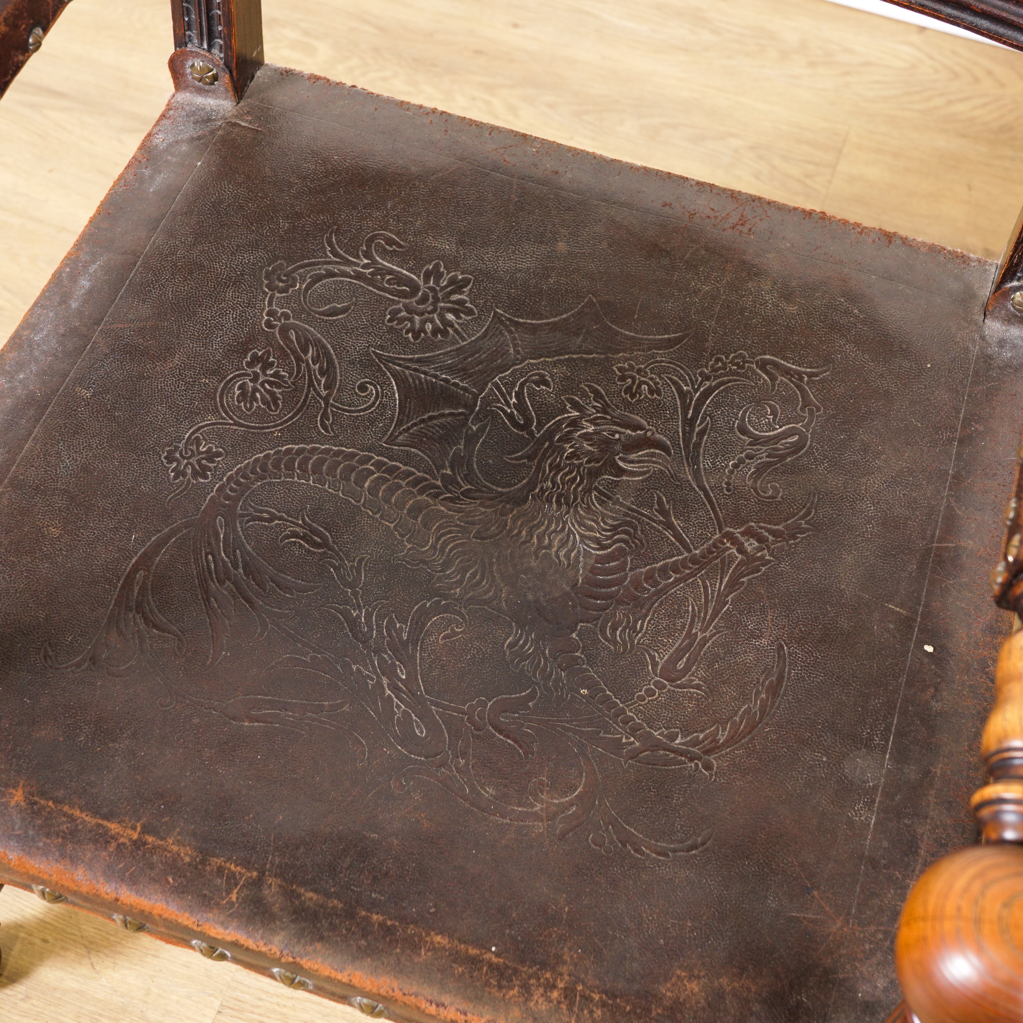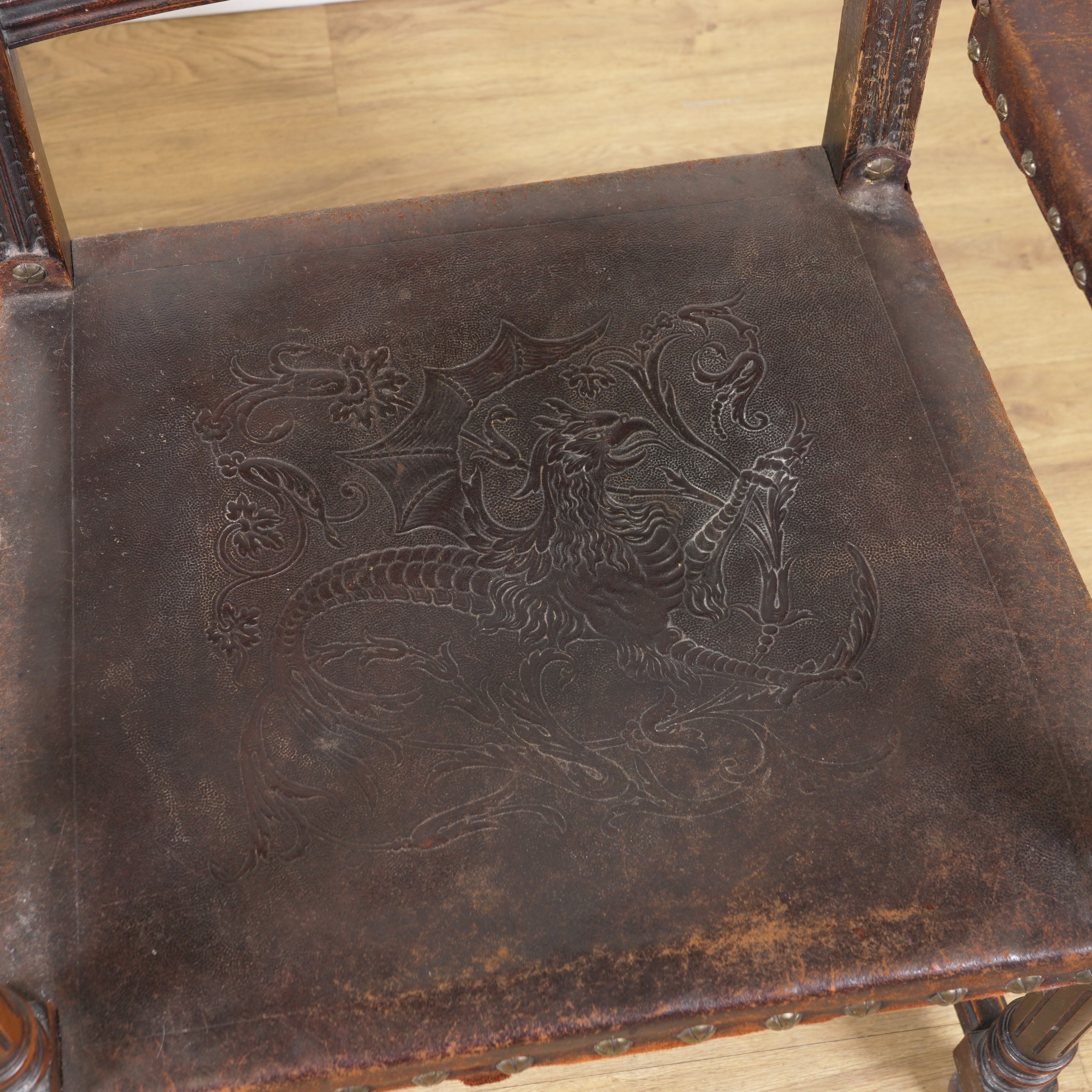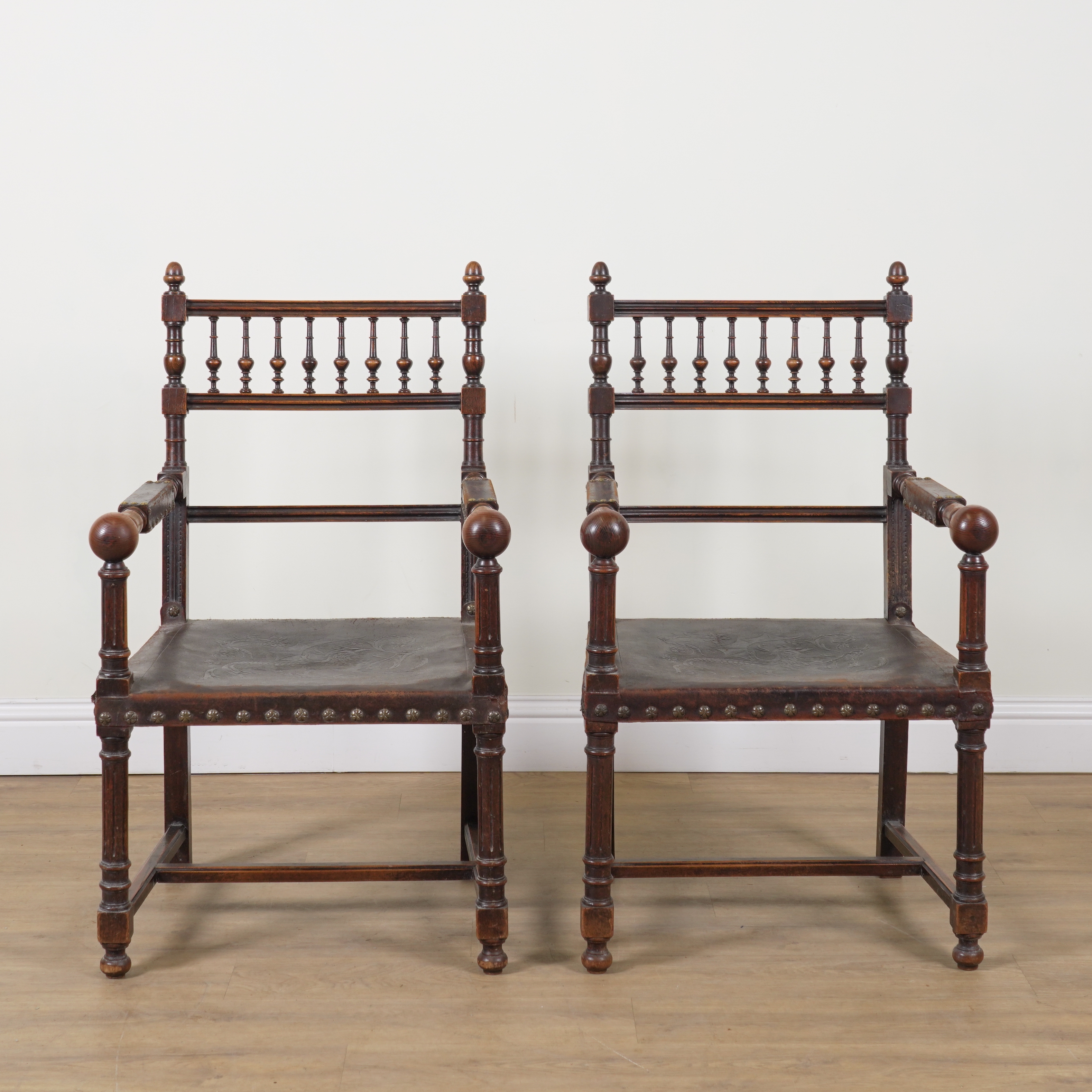 A PAIR OF 19TH CENTURY CONTINENTAL OAK FRAMED OPEN ARMCHAIRS (2)