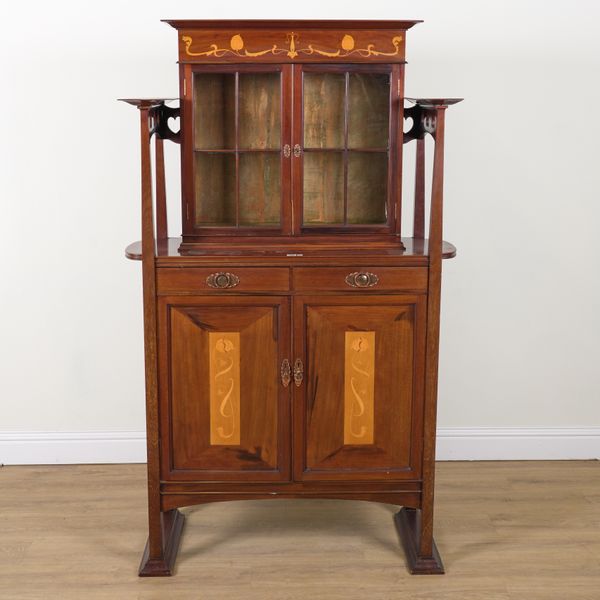 With glazed doors over two drawers and cupboards, 108cm wide; 49cm deep; 187cm high