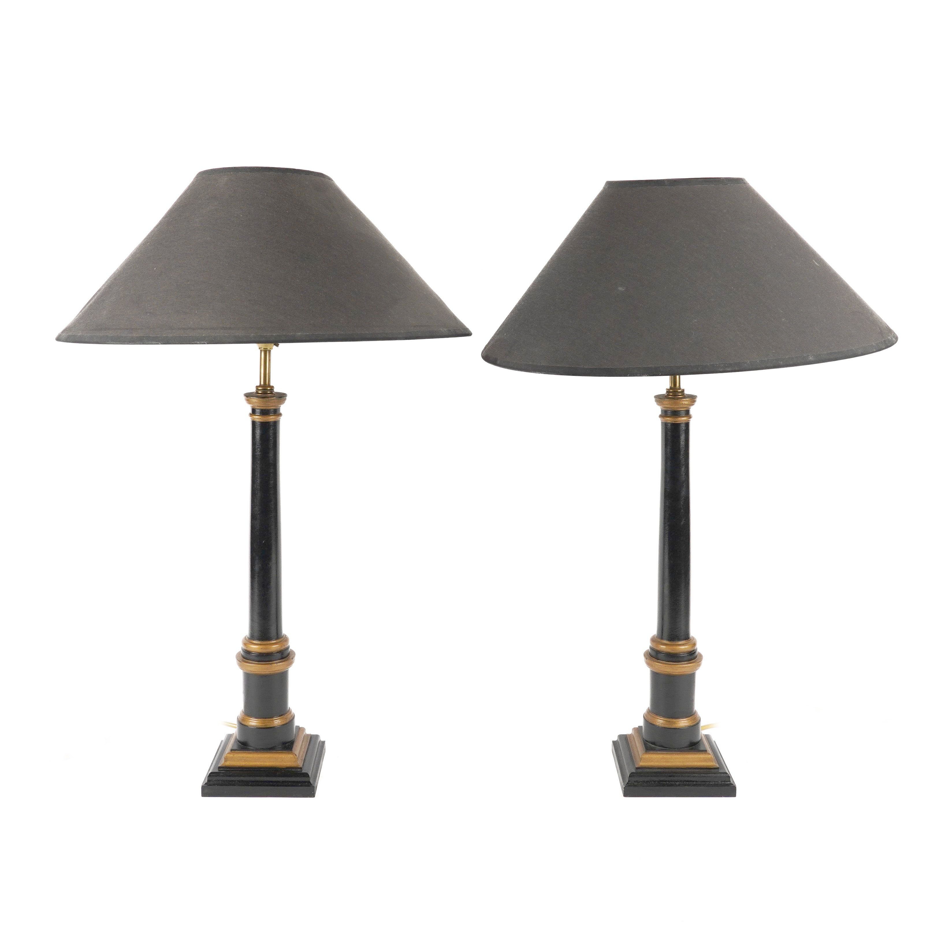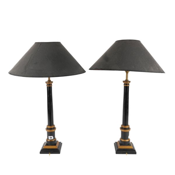 Modern With Doric capitals, black shades and fitted for electricity, 70cm high including shades