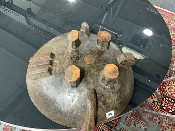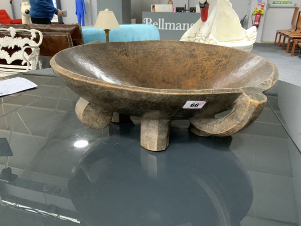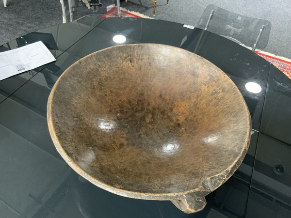 A LARGE HARDWOOD CENTRE DISH OR CEREMONIAL BOWL