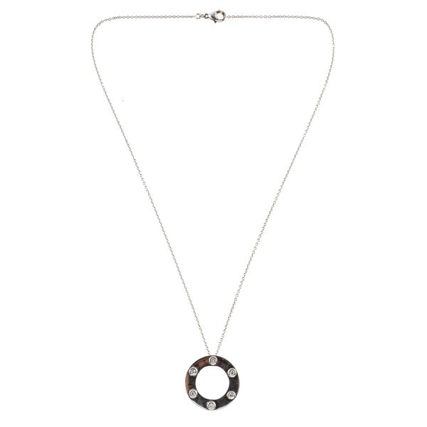 A CIRCULAR DIAMOND PENDANT NECKLACE