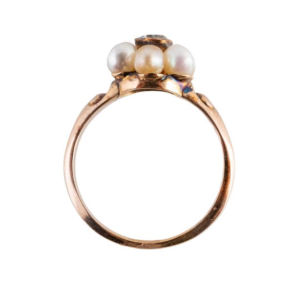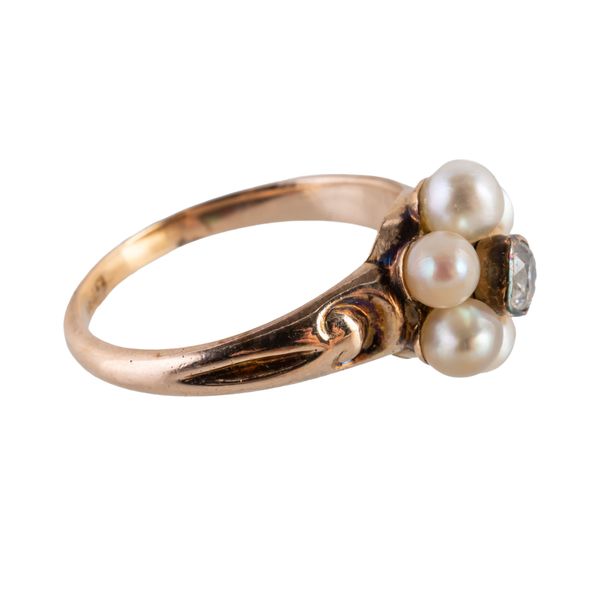 A 20TH CENTURY PEARL AND DIAMOND RING (2)