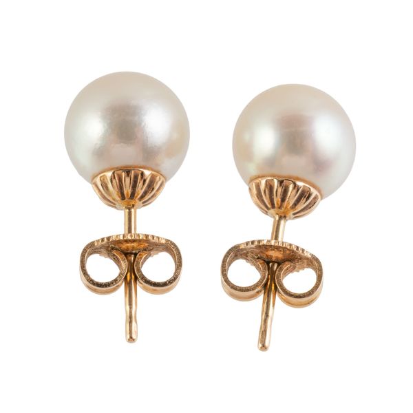 A CULTURED PEARL NECKLACE WITH MATCHING EAR STUDS (3)