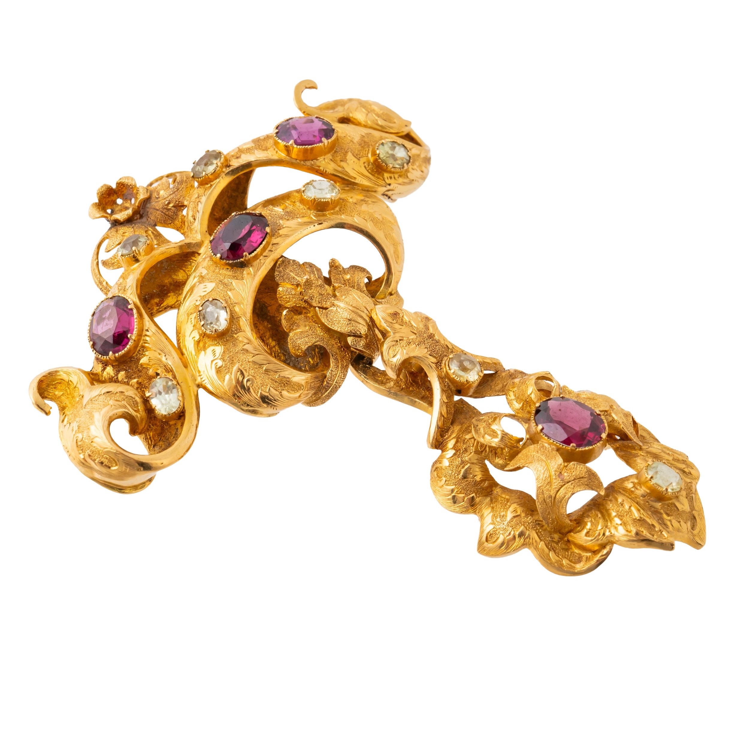 A MID-VICTORIAN CHRYSOBERYL AND GARNET BROOCH (2)