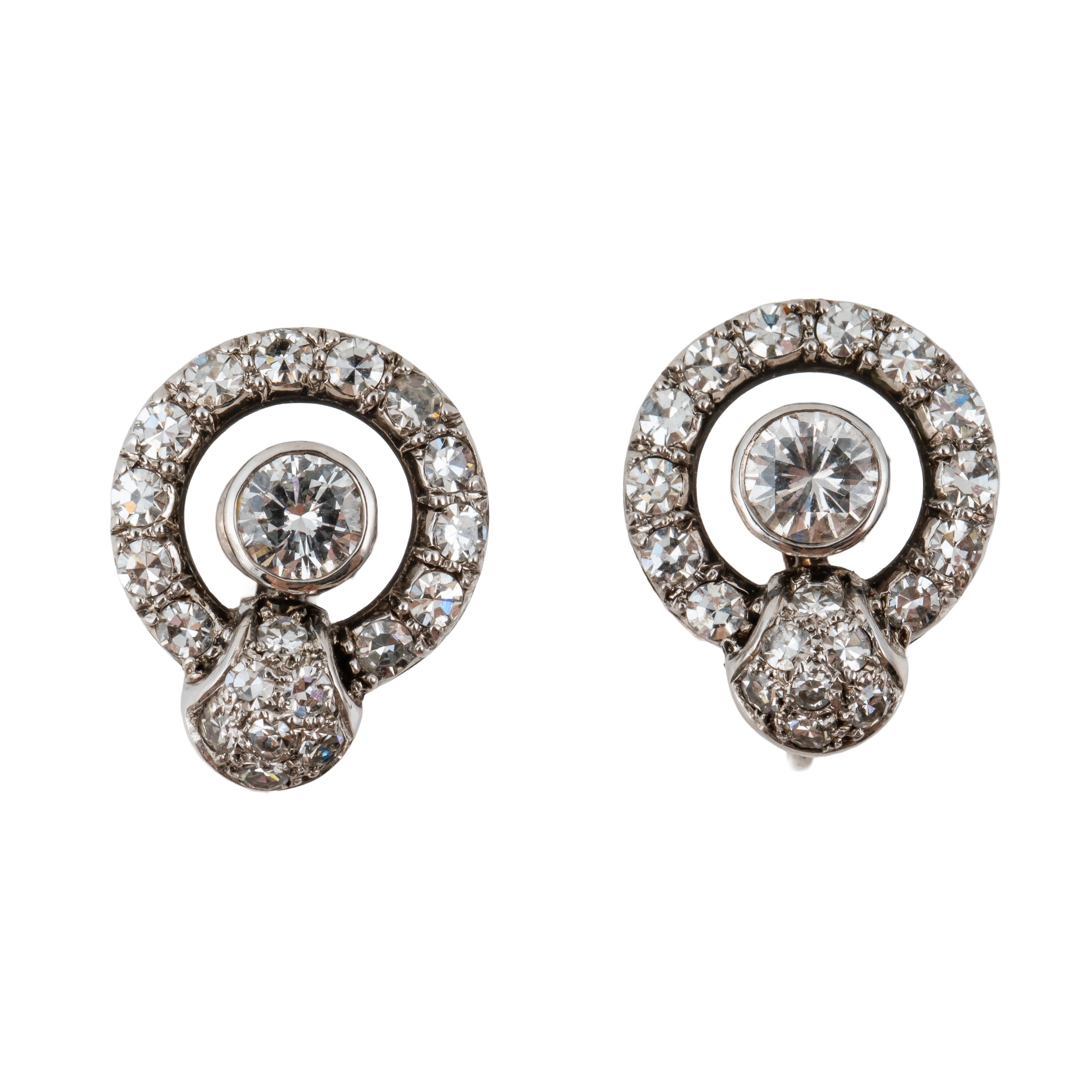 A PAIR OF ART DECO DIAMOND EARRINGS