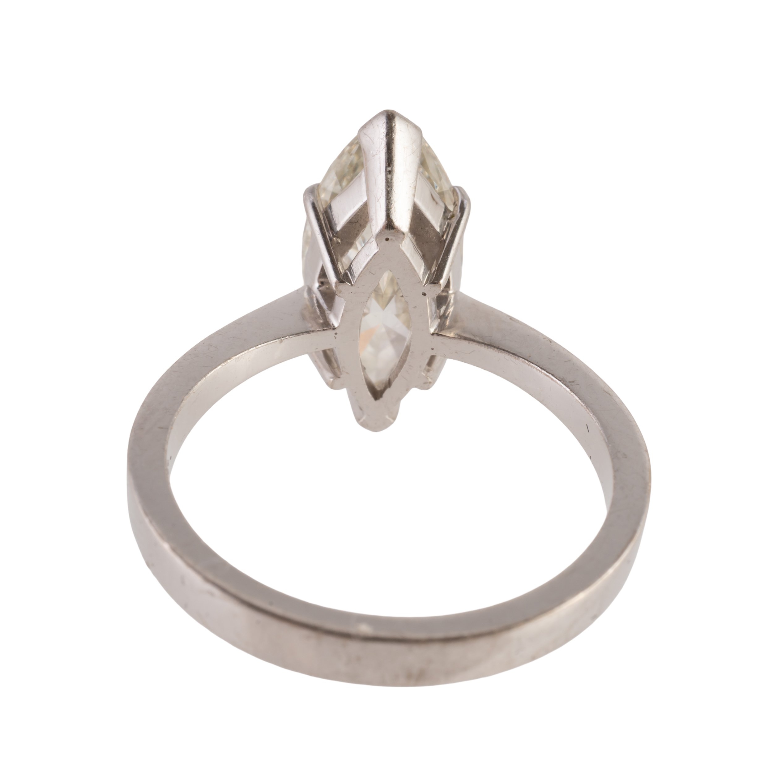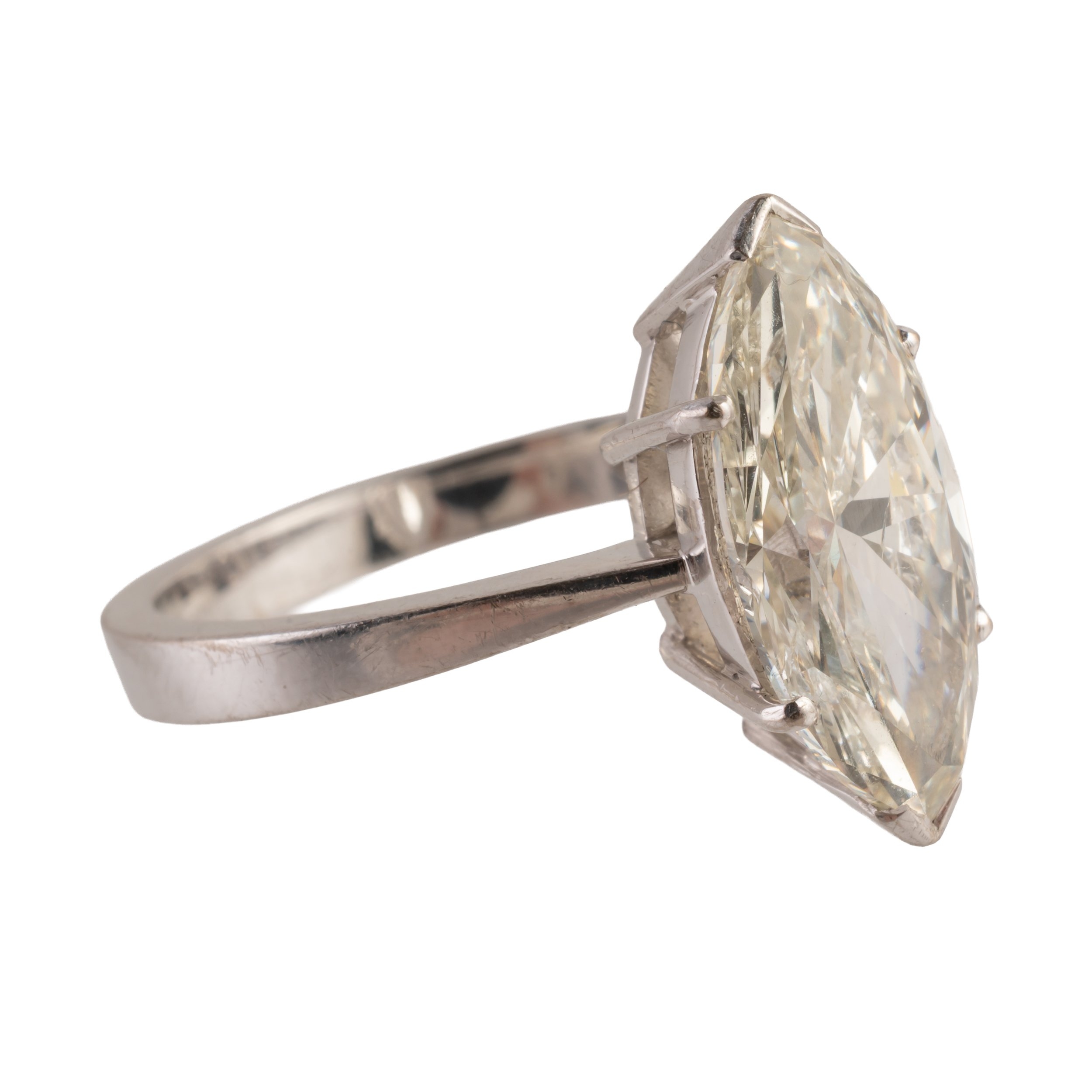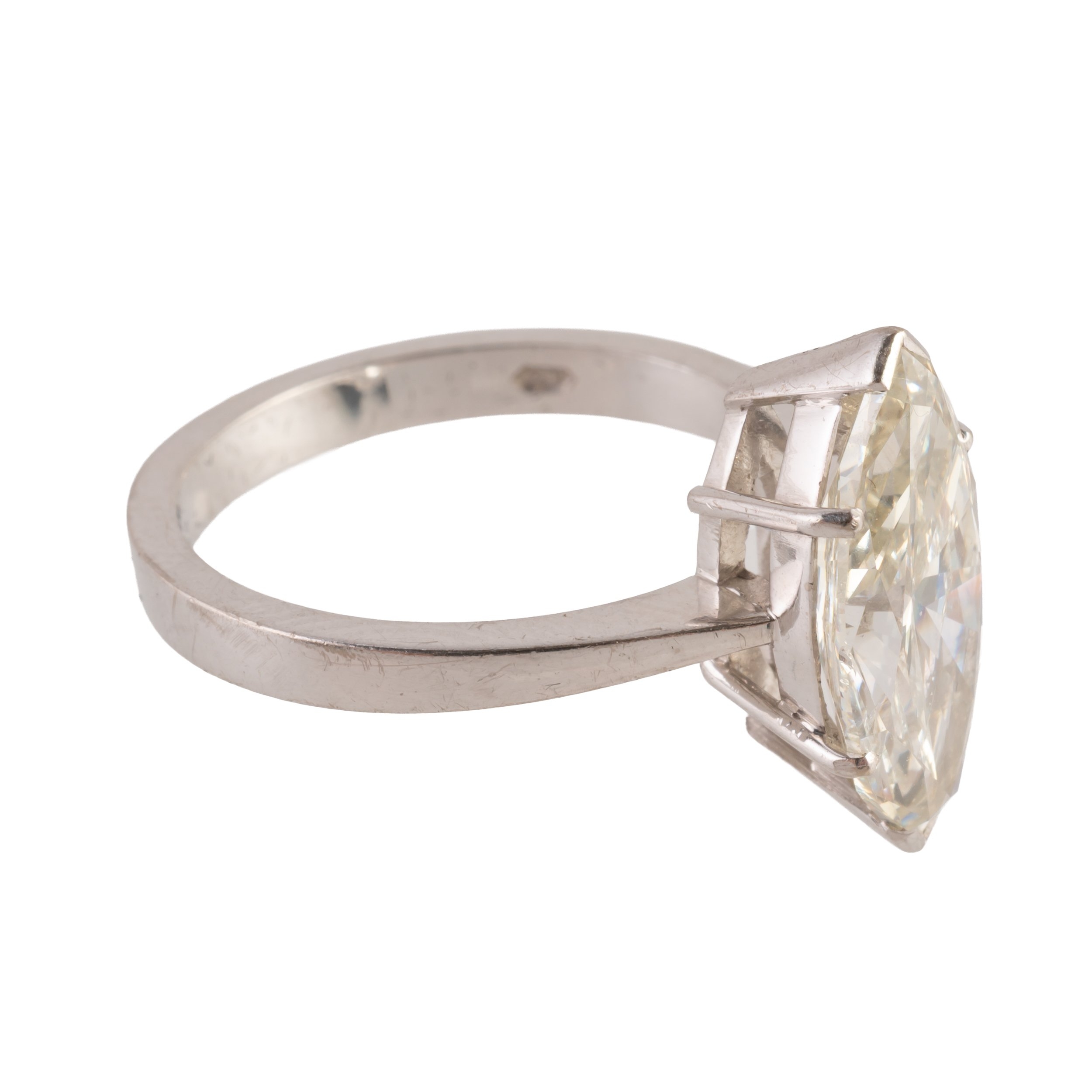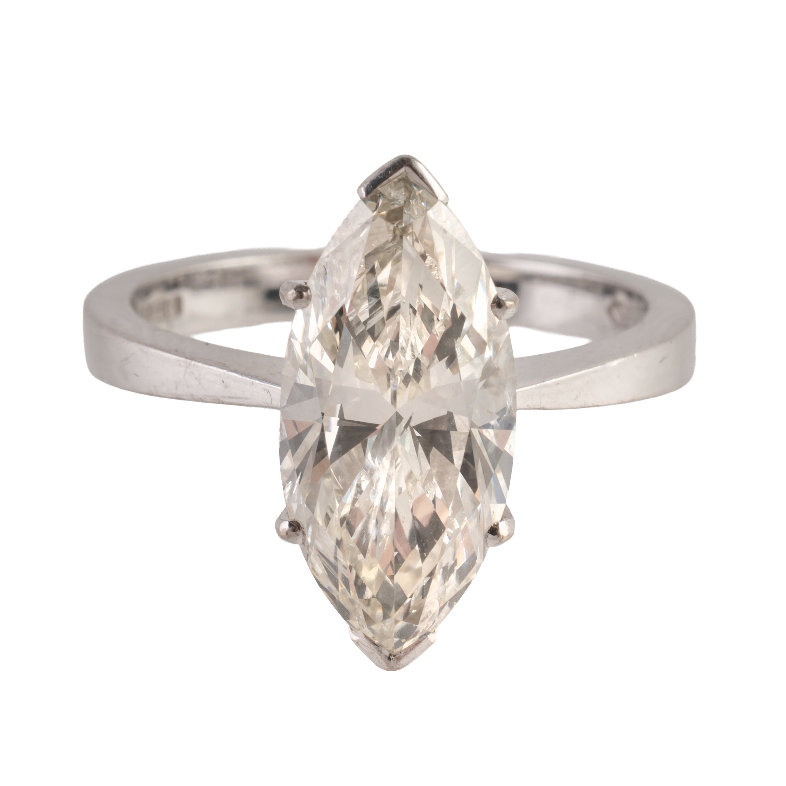 Claw set with a marquise cut diamond weighing an estimated 2.90 carats, with an estimated clarity of SI2 and colour of L-M, size M, mounted in 18ct white gold, hallmarked for London, 2001, gross weight 4.9 grams, with a box