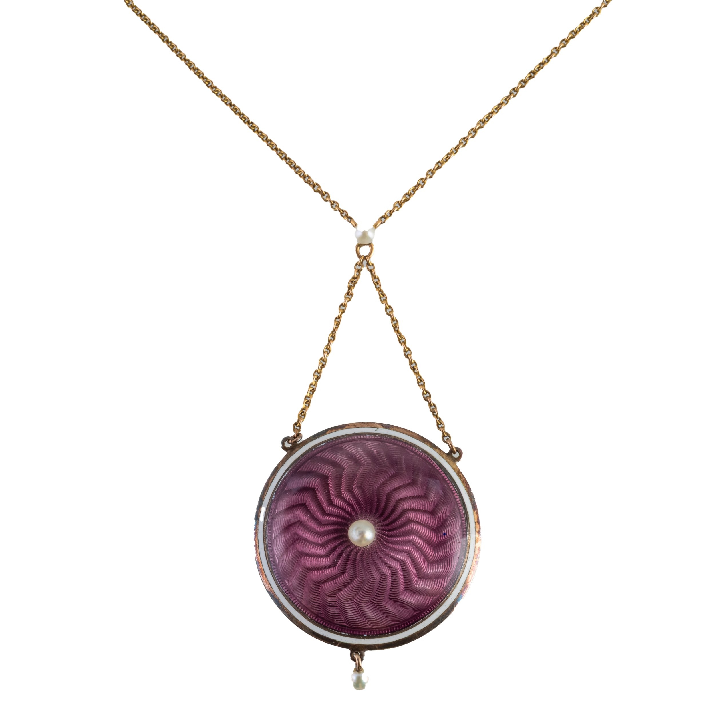 AN GUILLOCHE ENAMEL AND PEARL LOCKET