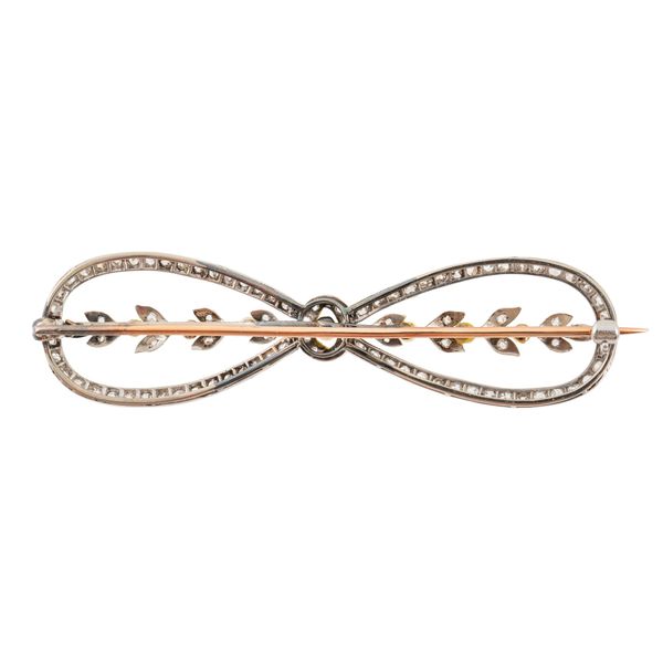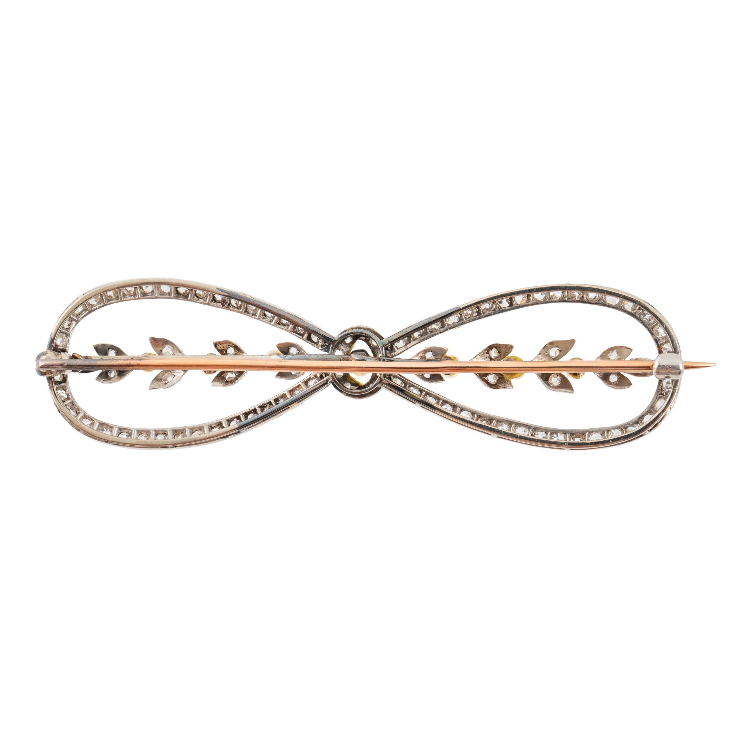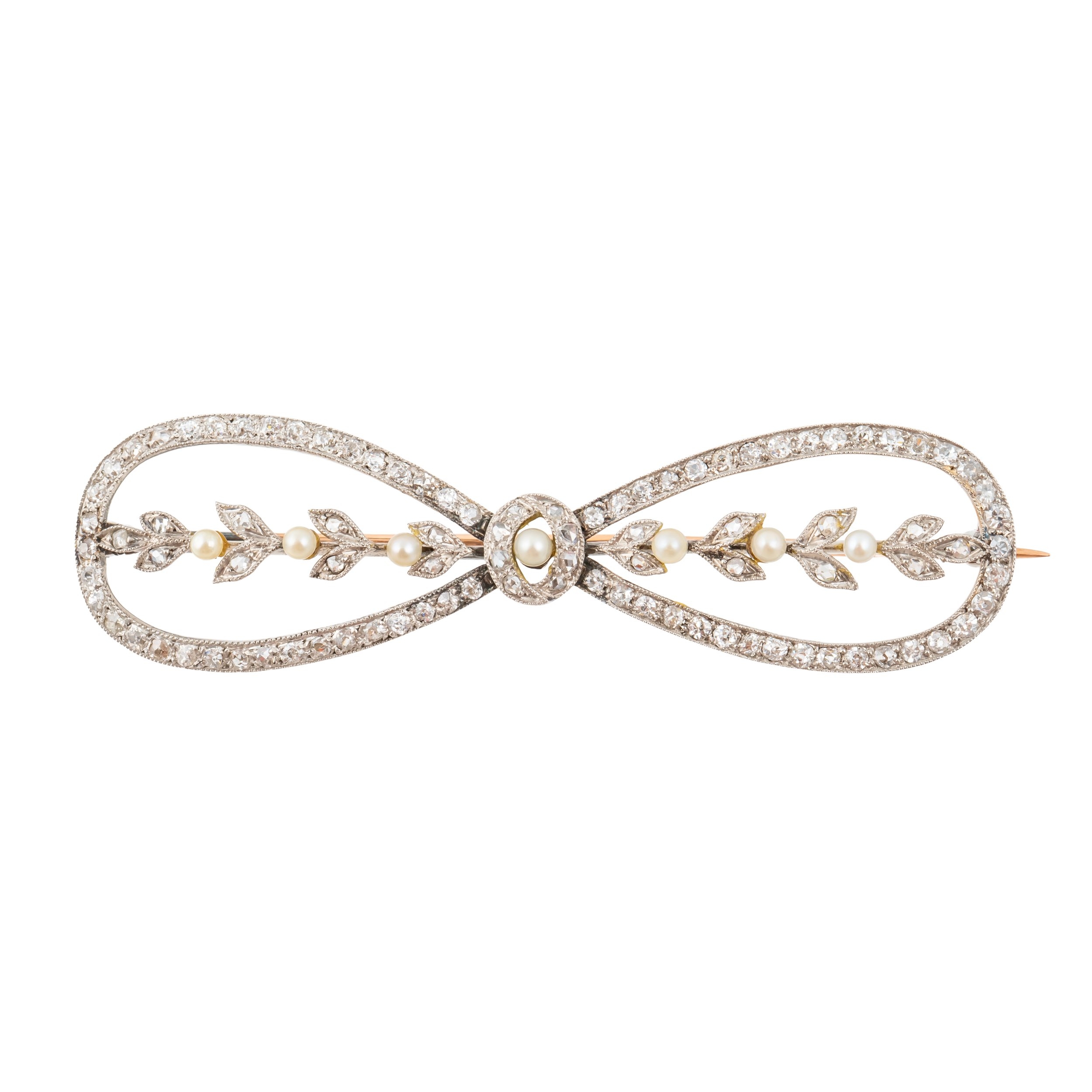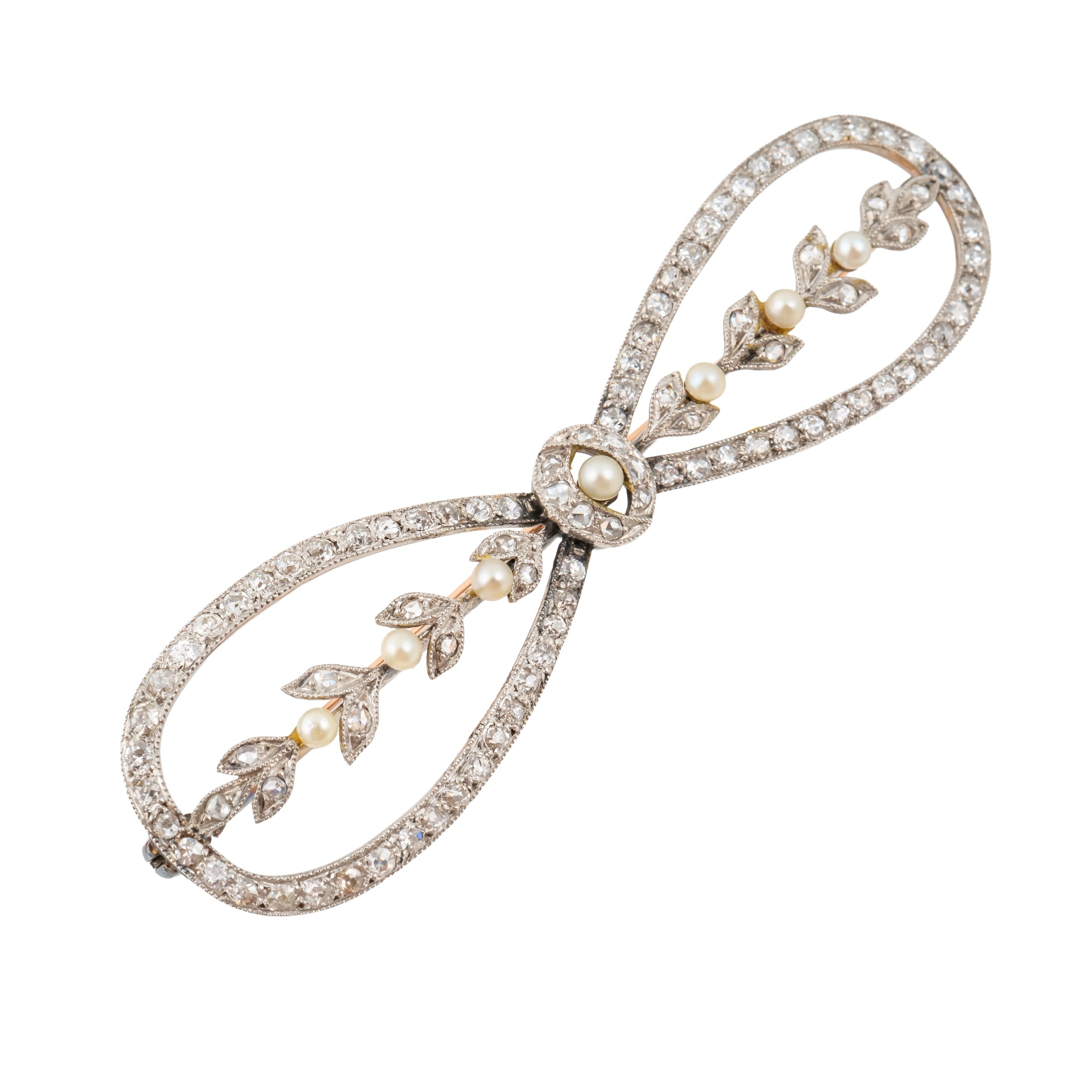 AN EDWARDIAN DIAMOND AND PEARL BOW BROOCH (2)