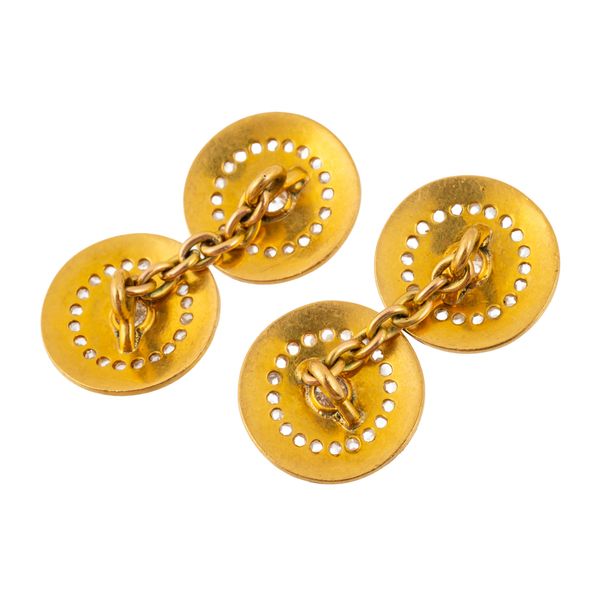 A PAIR OF DIAMOND AND ENAMEL CUFFLINKS