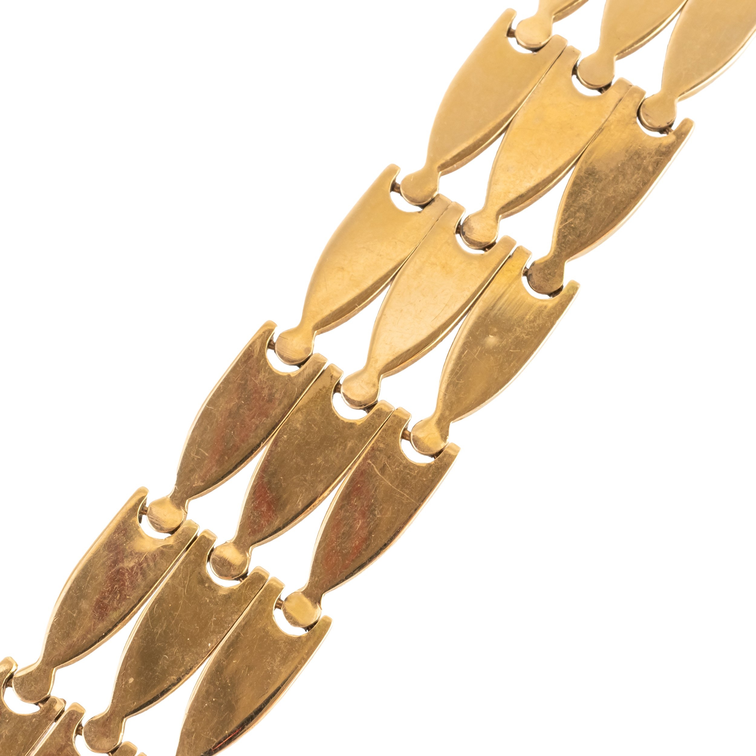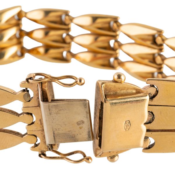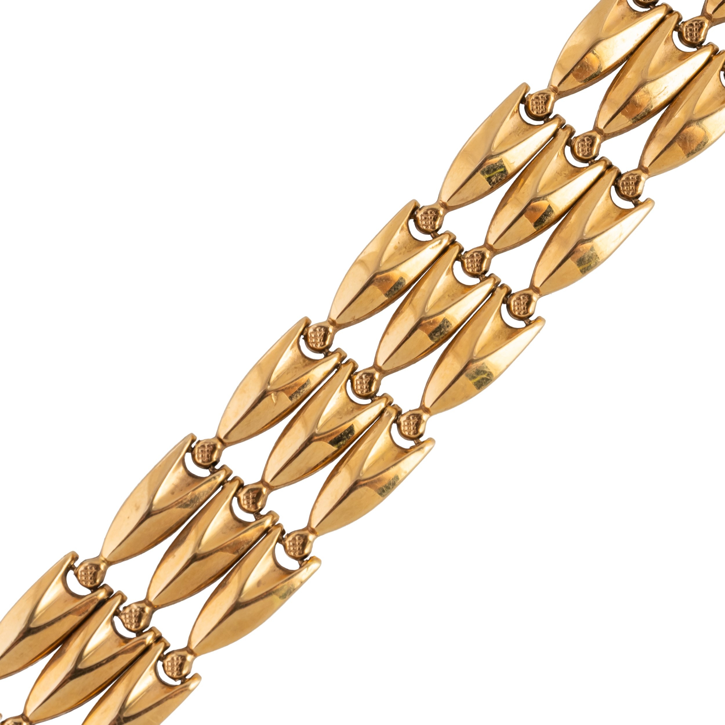 Measuring 19cm in length, with a box clasp and two safety clips in 18ct gold, gross weight 28.6 grams, with a box