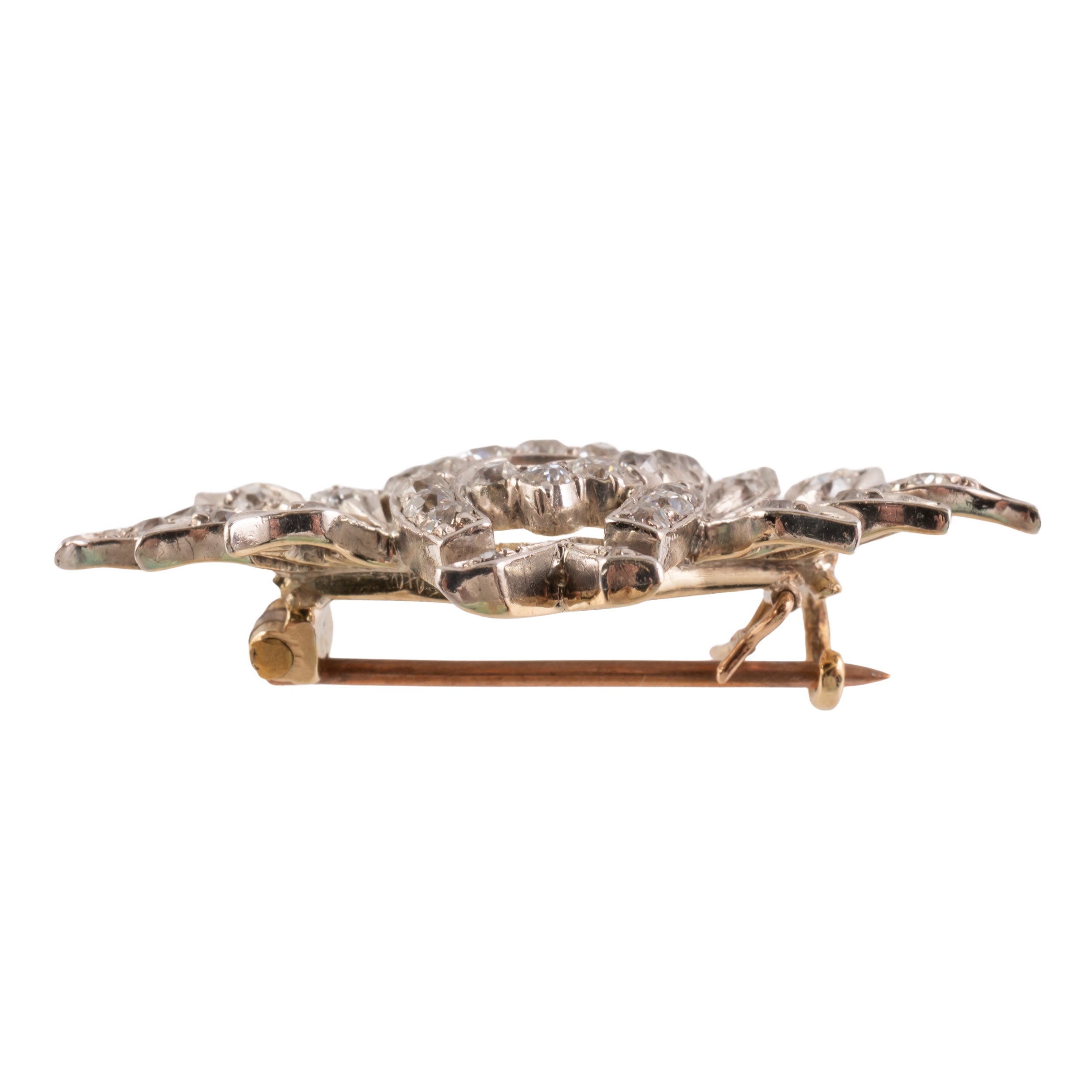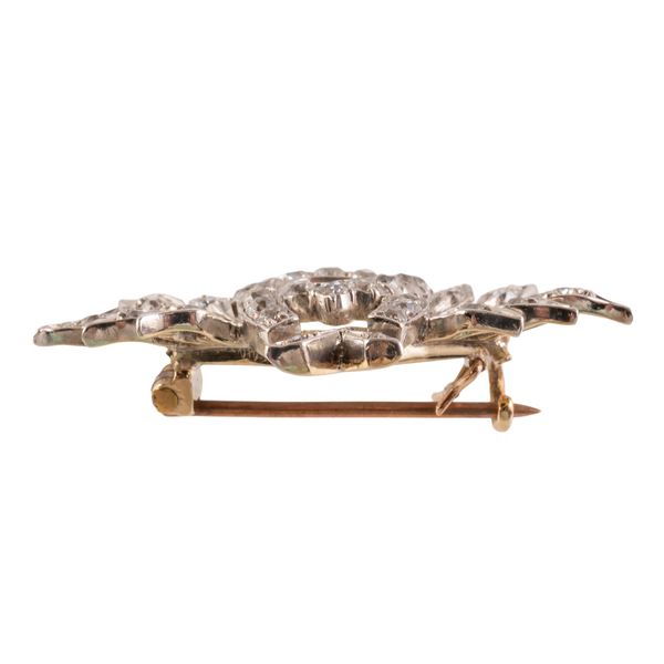 Mounted with old cut diamonds, in silver on gold, all unmarked, measuring 34.2mm x 17.2mm, gross weight 3.6 grams