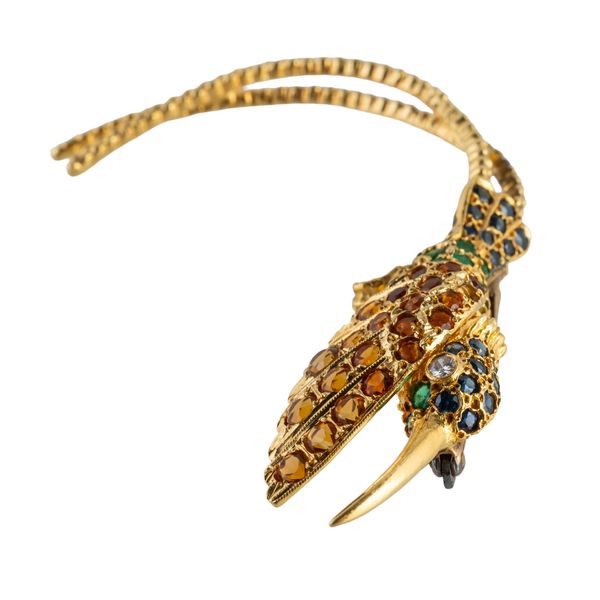AN 18CT GOLD BIRD OF PARADISE BROOCH