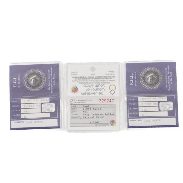 The certificate for the yellow diamond states the stone is VS1 in clarity.
