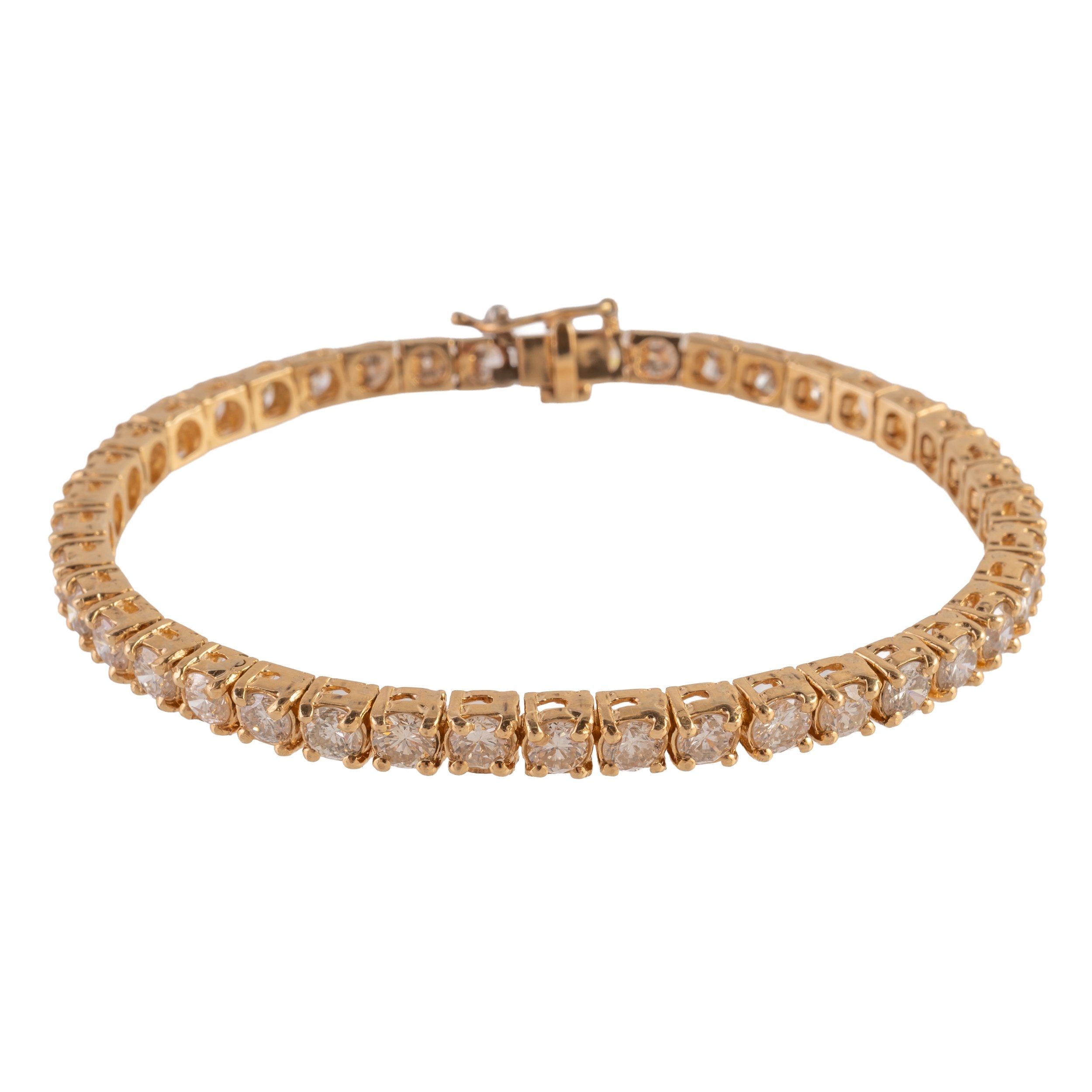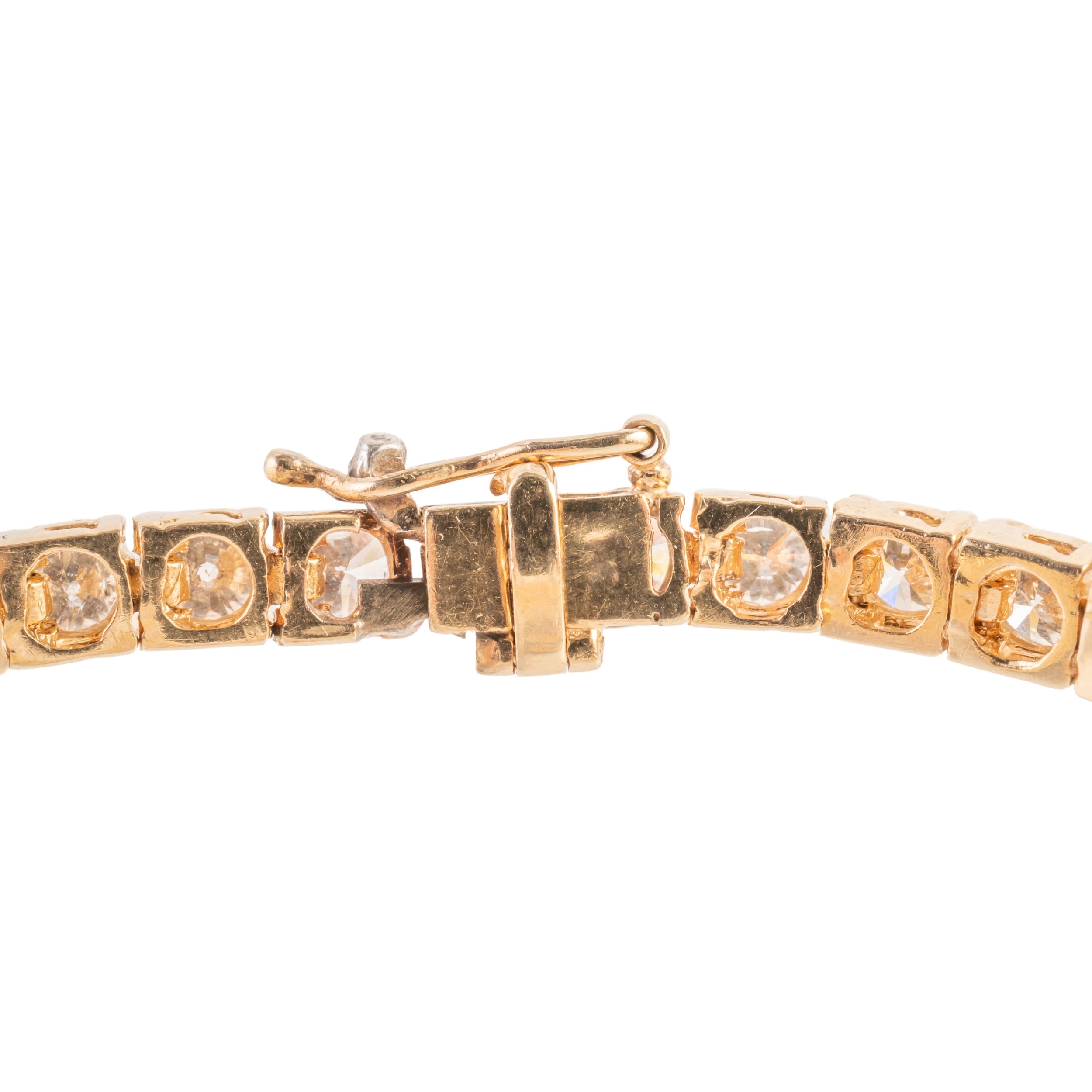 Mounted with round brilliant cut diamonds with an estimated total weight of 7.14 carats, estimated clarity of SI-I1 and estimated colour of I-J, measuring 18cm in length, with a box clasp and two safety clips, gross weight 17.2 grams