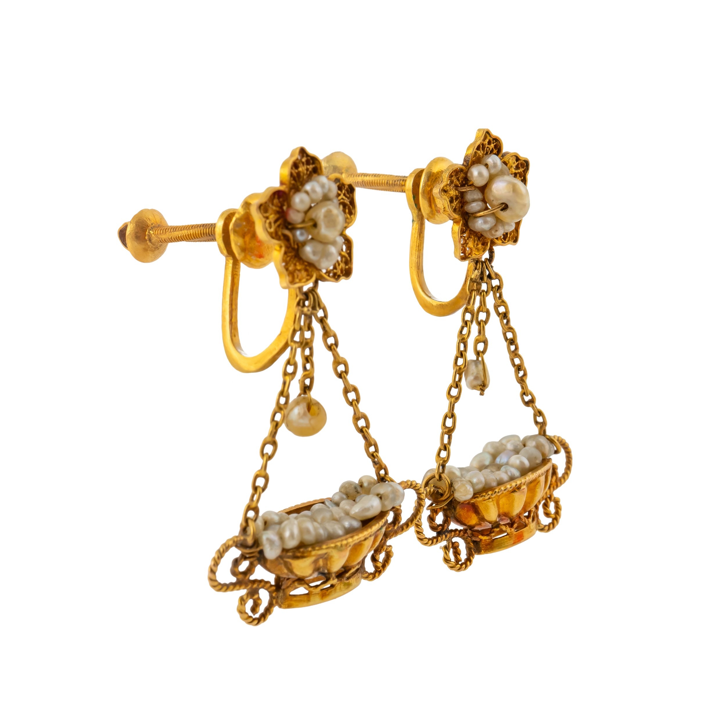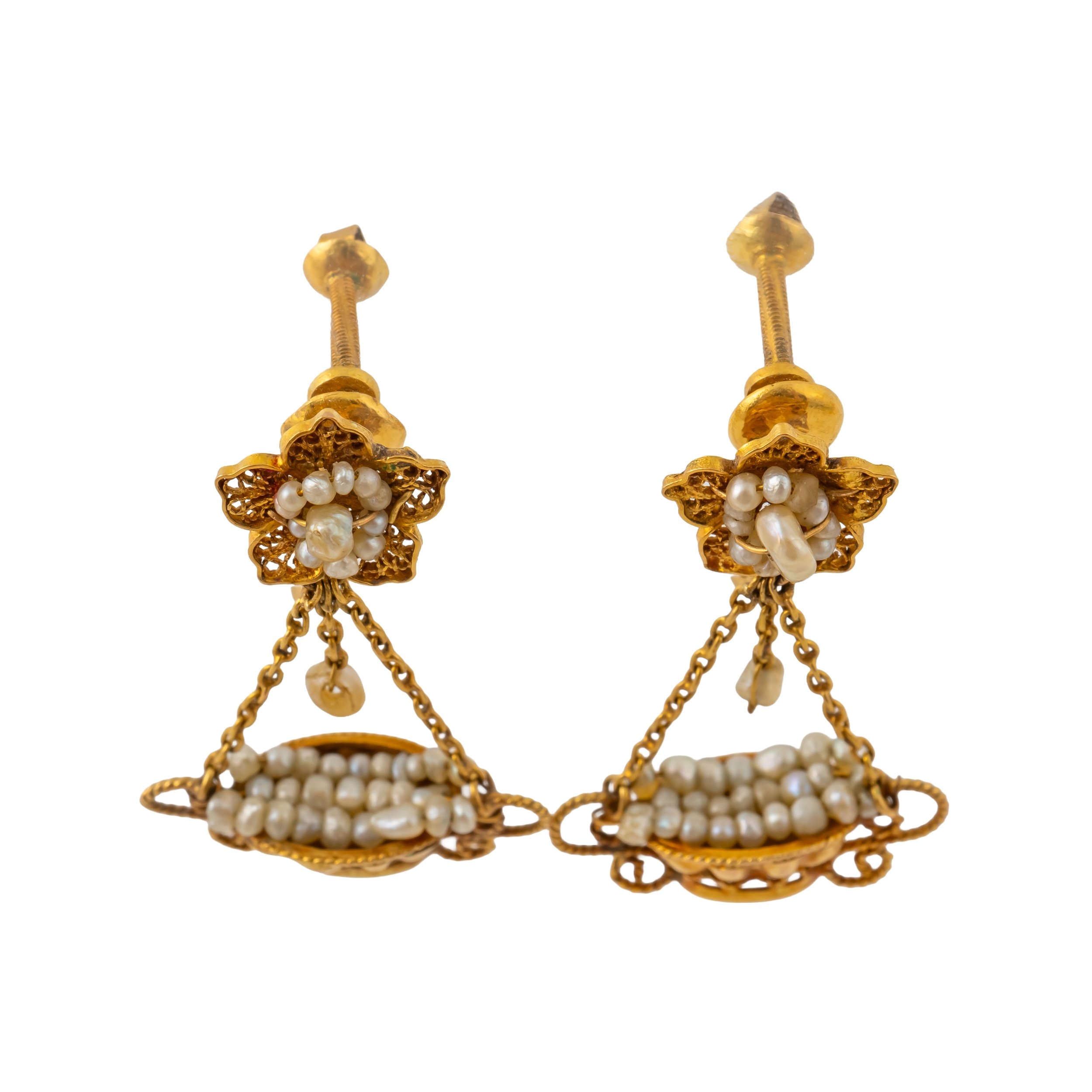 A PAIR OF 19TH CENTURY PEARL BASKET EARRINGS