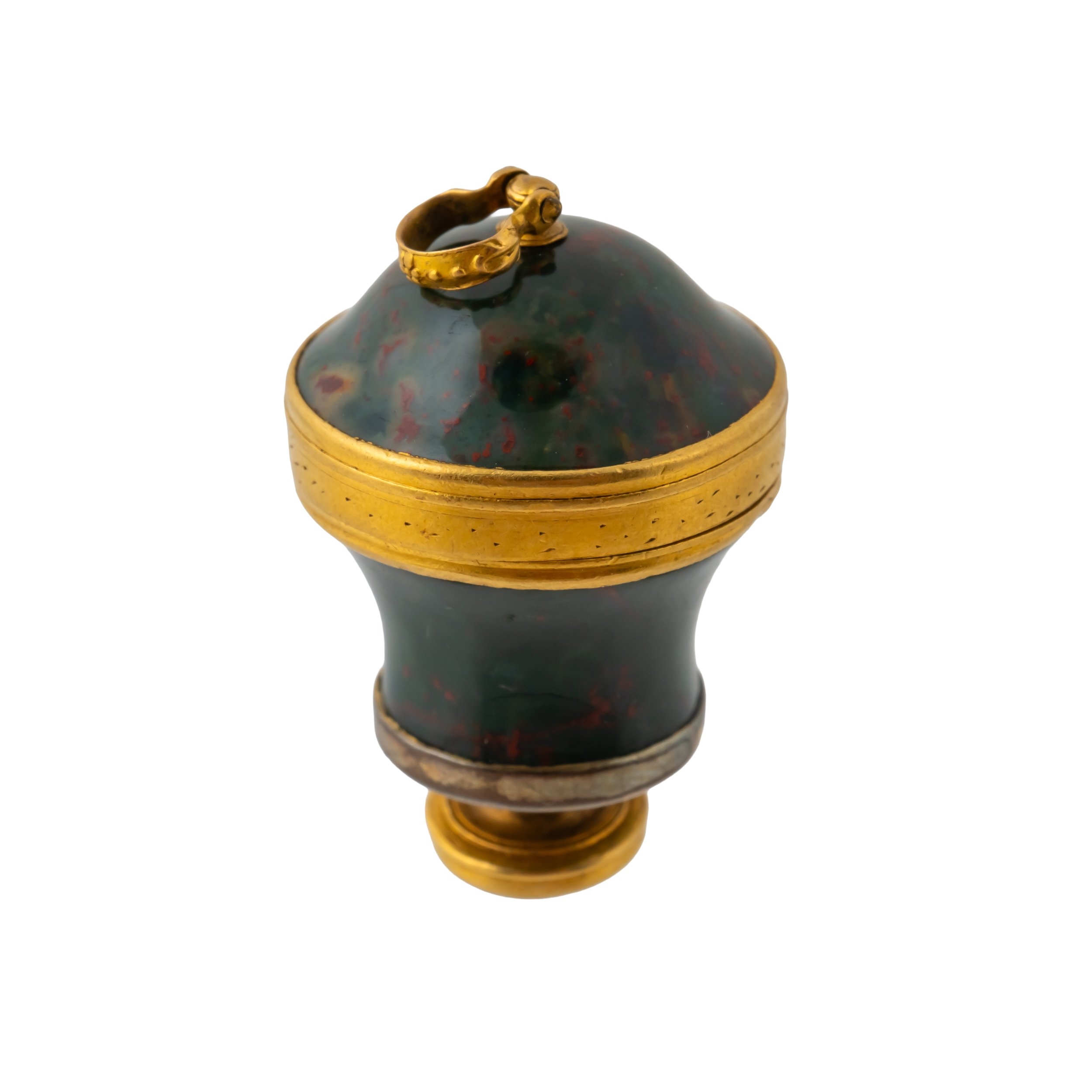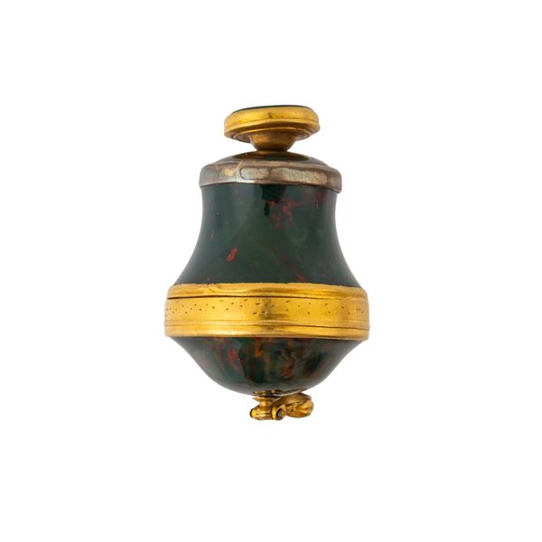Perhaps a vinaigrette, missing its grille, with a top that unscrews, measuring 25.4mm x 18.4mm at its widest point, gross weight 6.8 grams