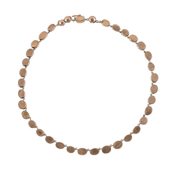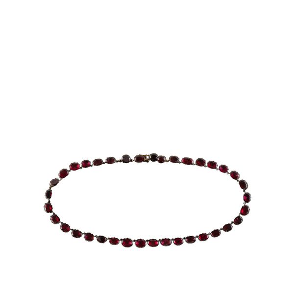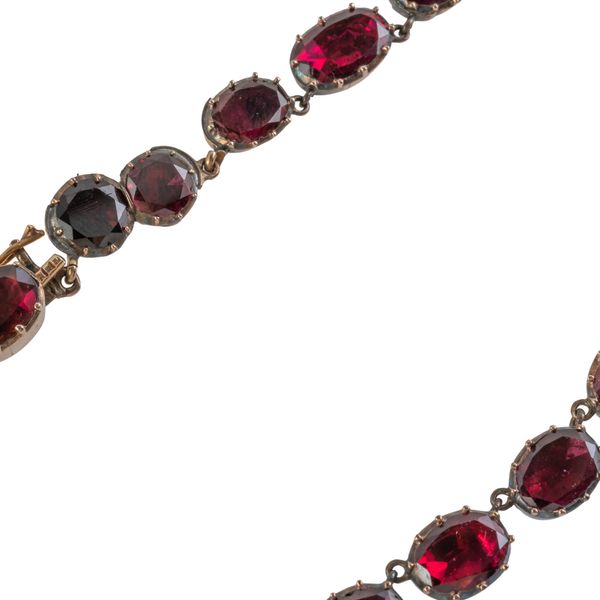 A FOIL BACKED FLAT CUT GARNET NECKLACE (2)