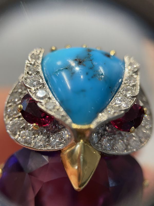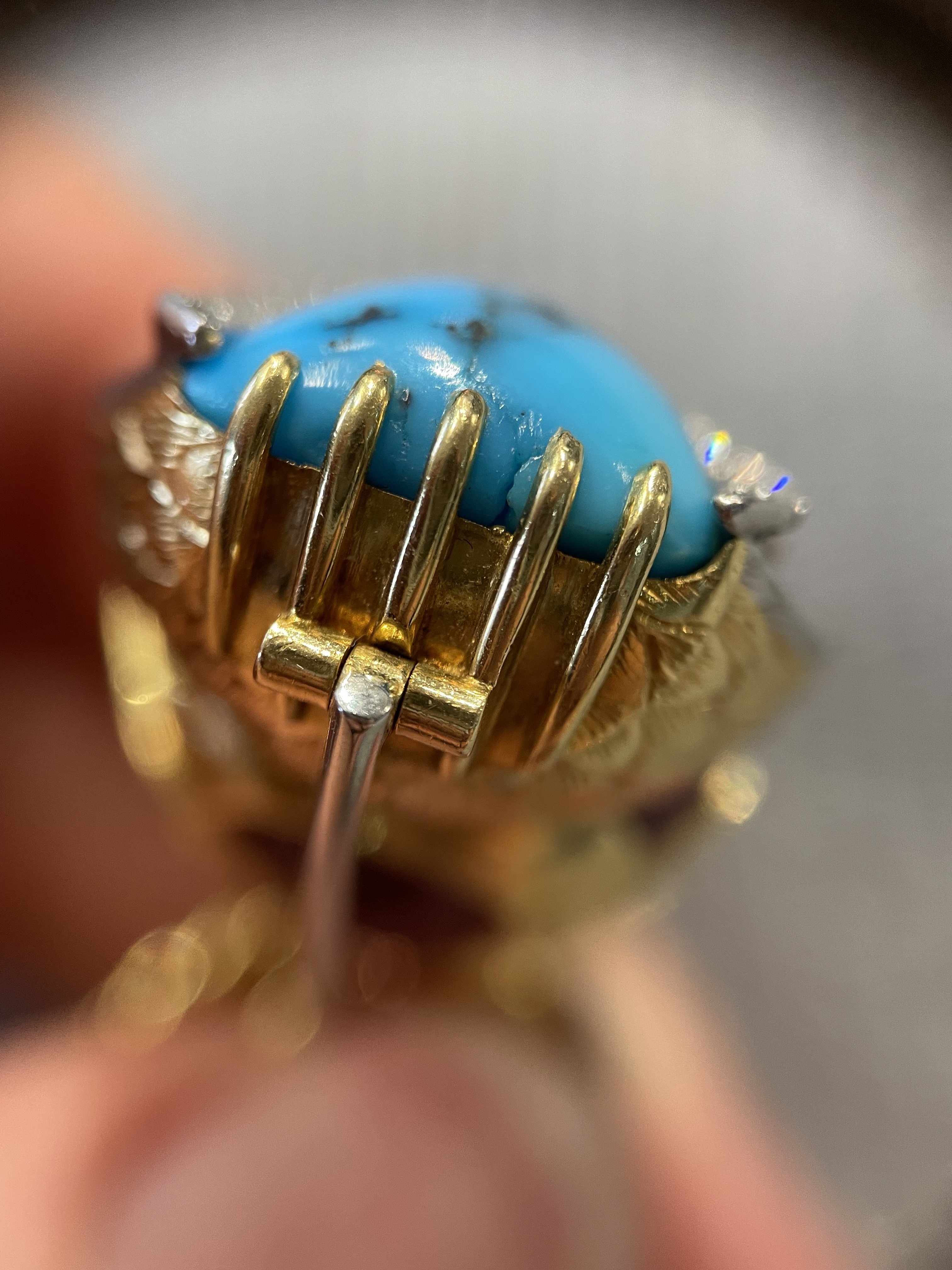 Surface reaching fracture to the top of the turquoise, some other surface reaching veins as seen in the image