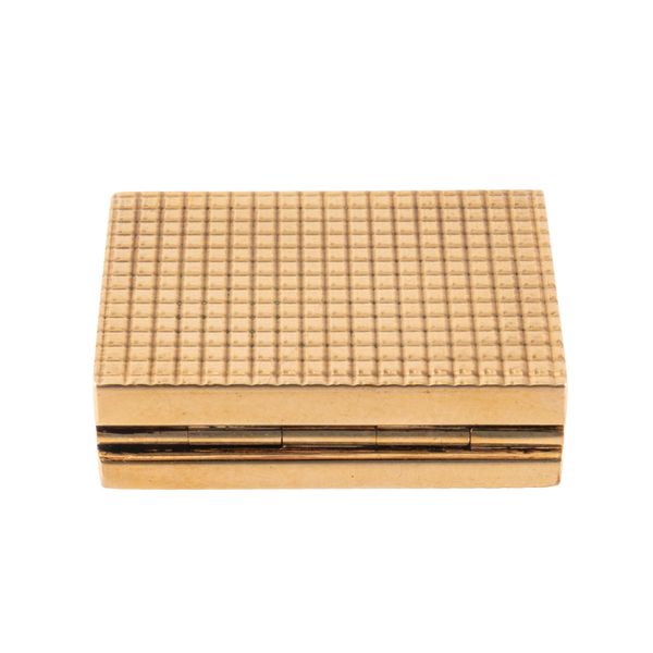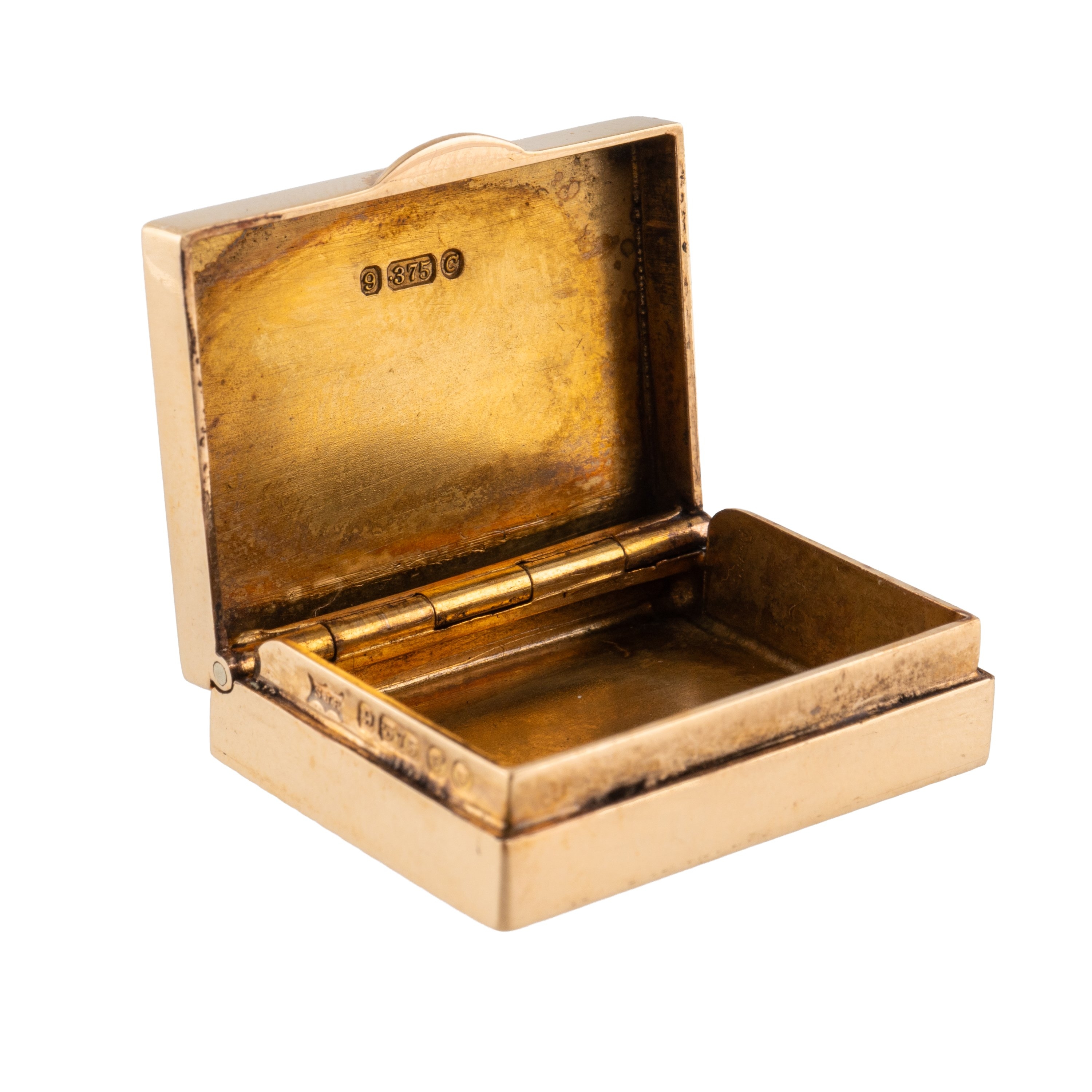 A 9CT GOLD RECTANGULAR HINGE LIDDED PILL BOX