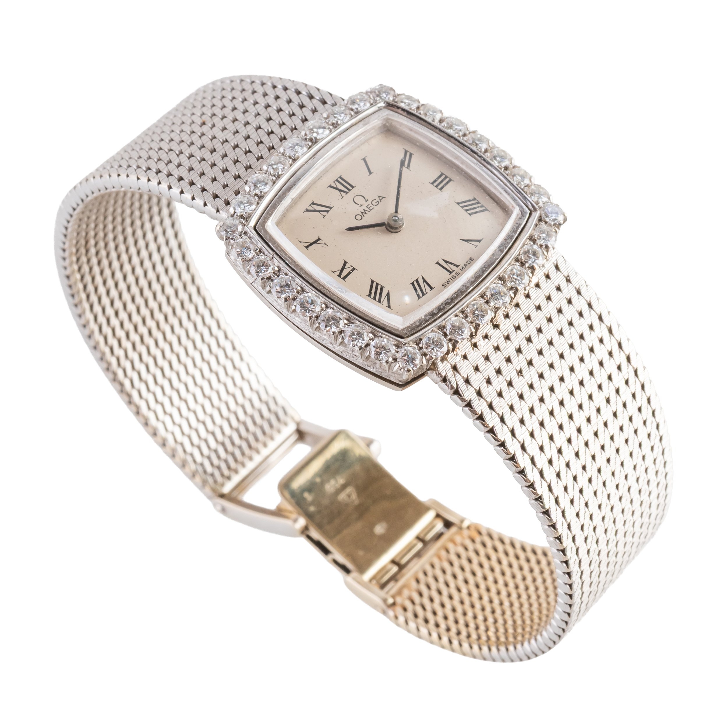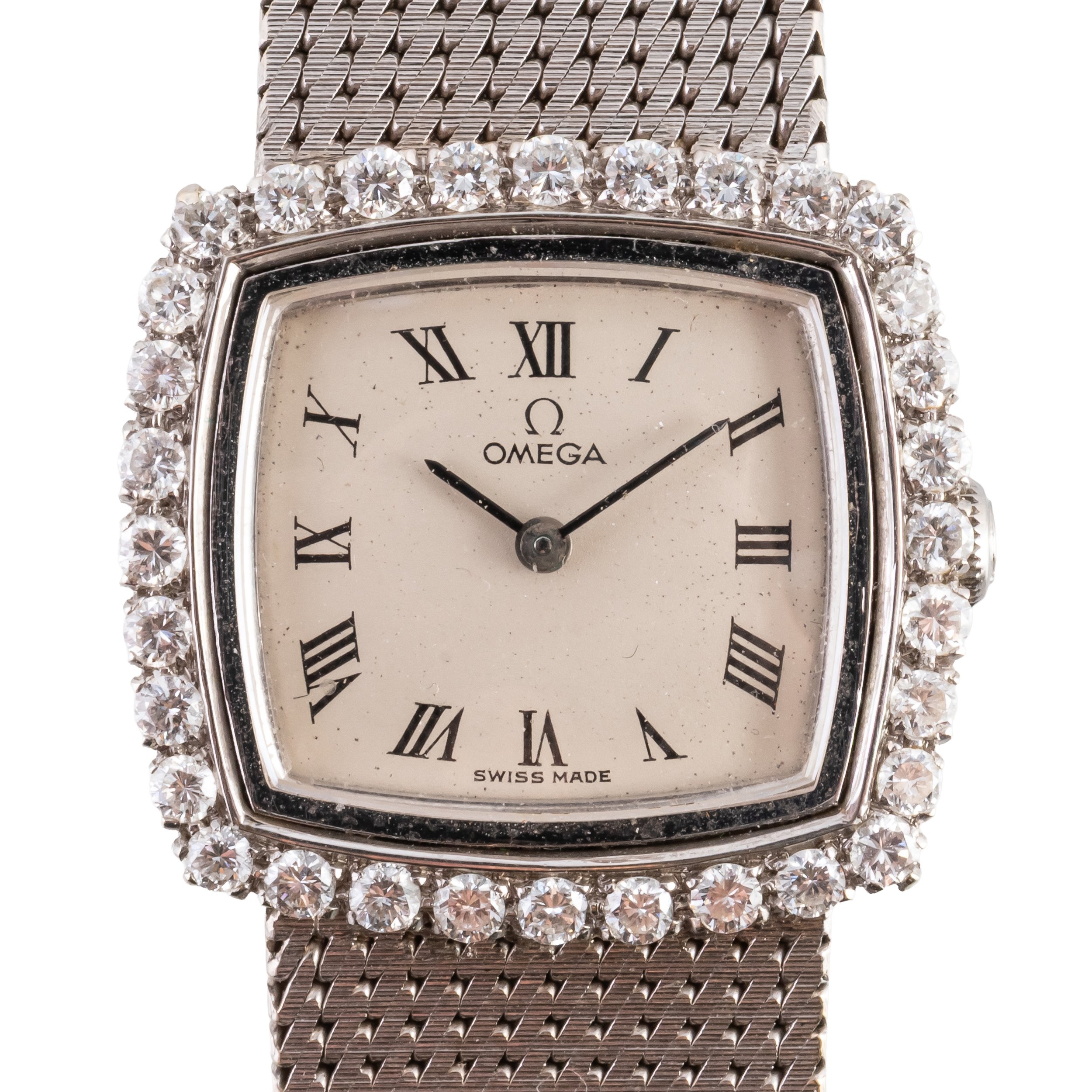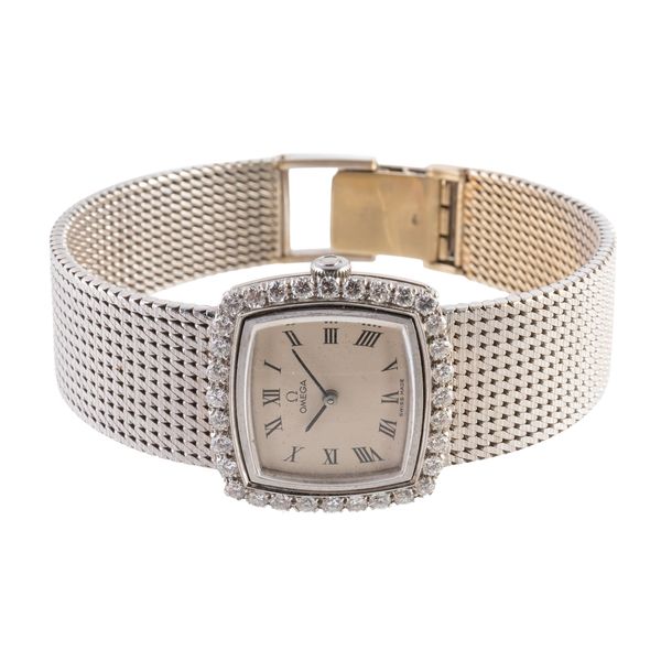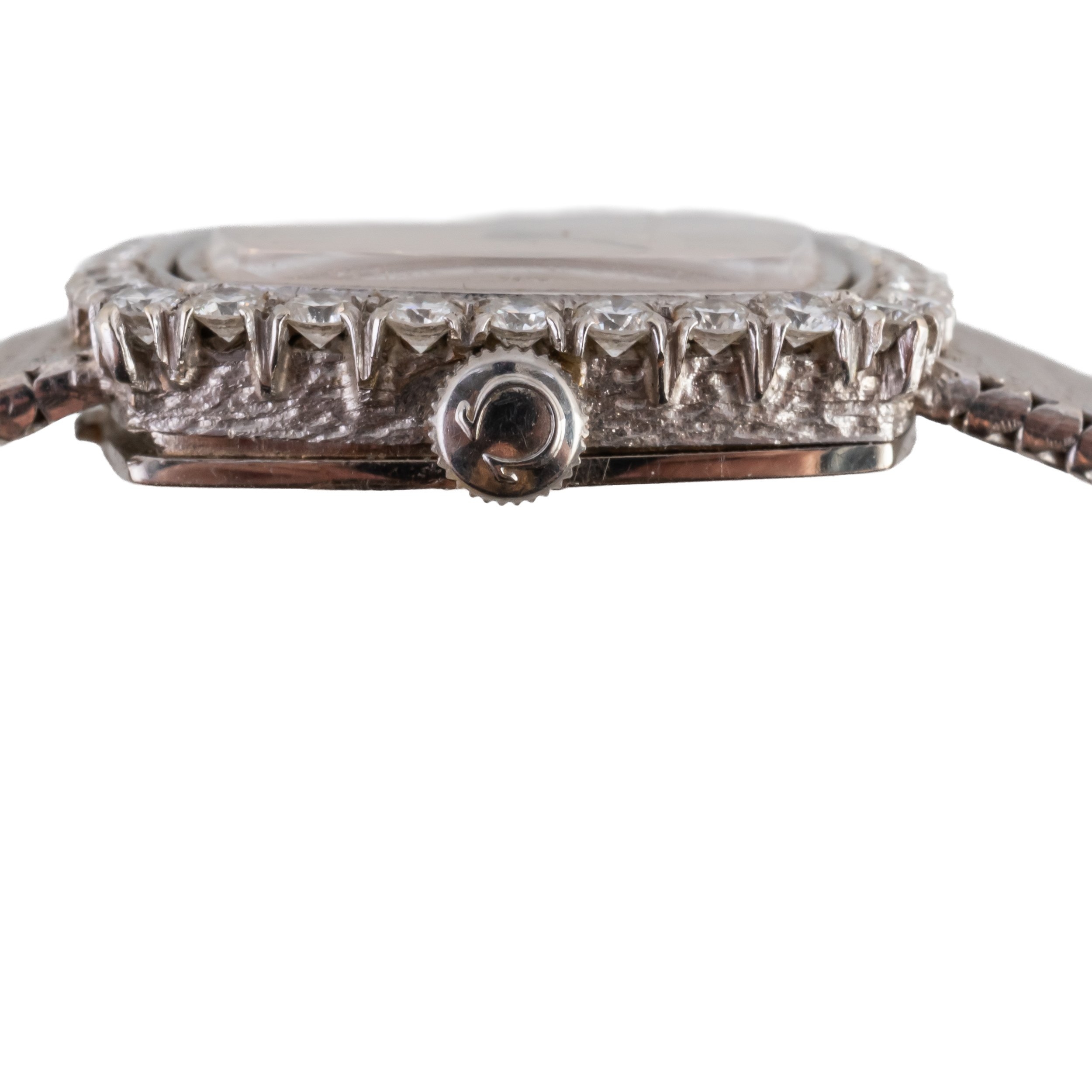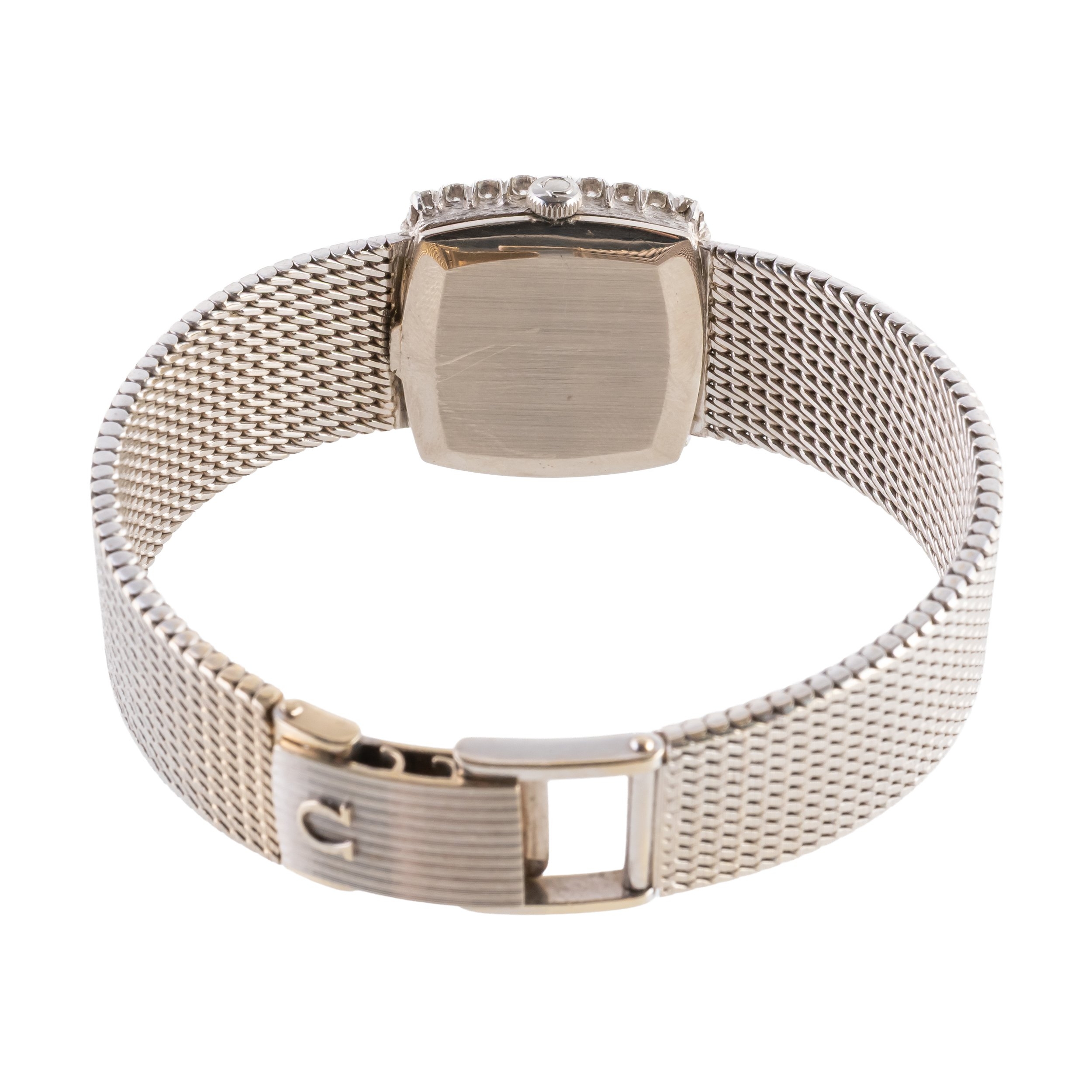 With a signed white dial with Roman numeral hour markers, with a diamond set bezel, with manual wind movement, in an 18ct white gold case with 18ct white gold bracelet and fold-over clasp, gross weight 53.8 grams