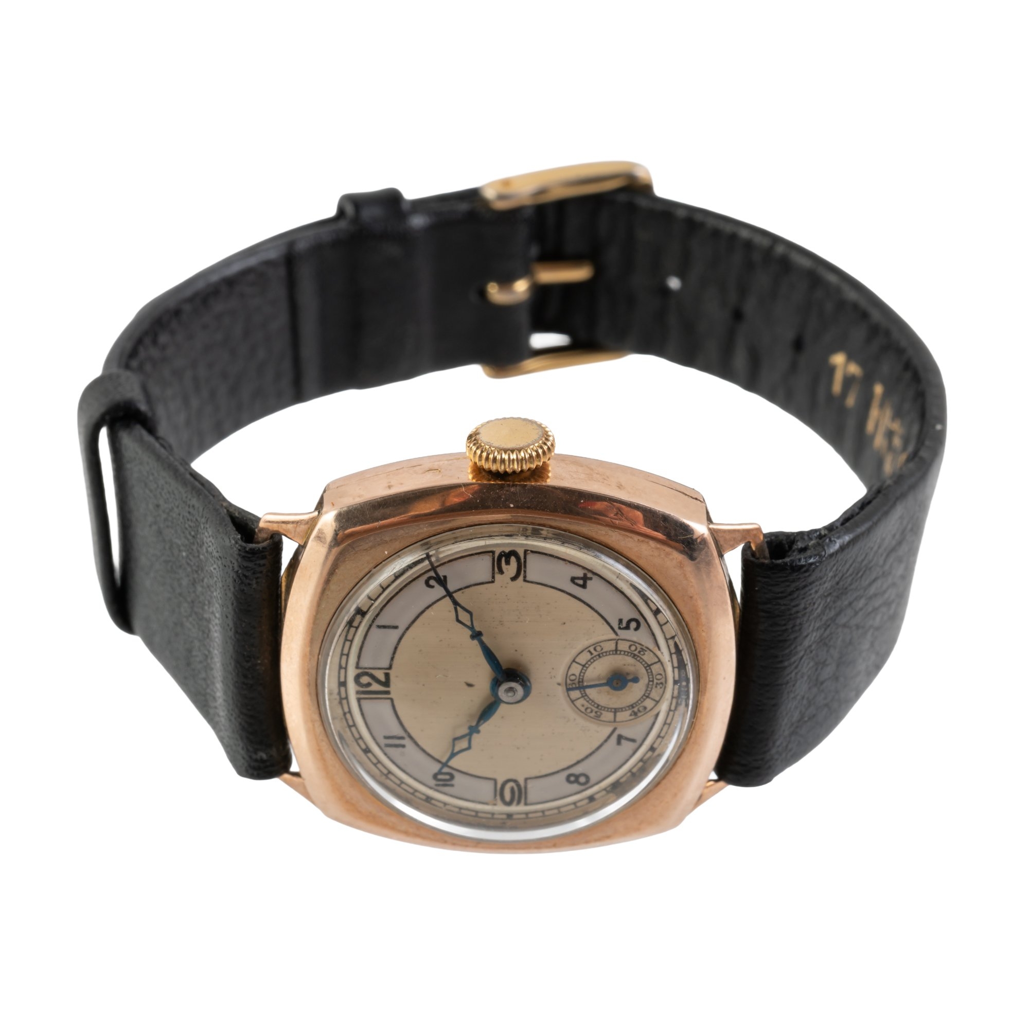 A 9CT GOLD CUSHION SHAPE WATCH