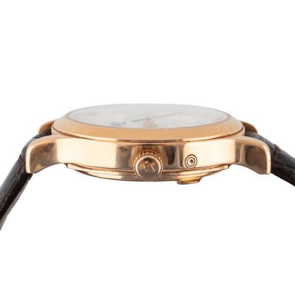 Complication: Dual time zone display, date, power reserve indicator, geographic/world time function.