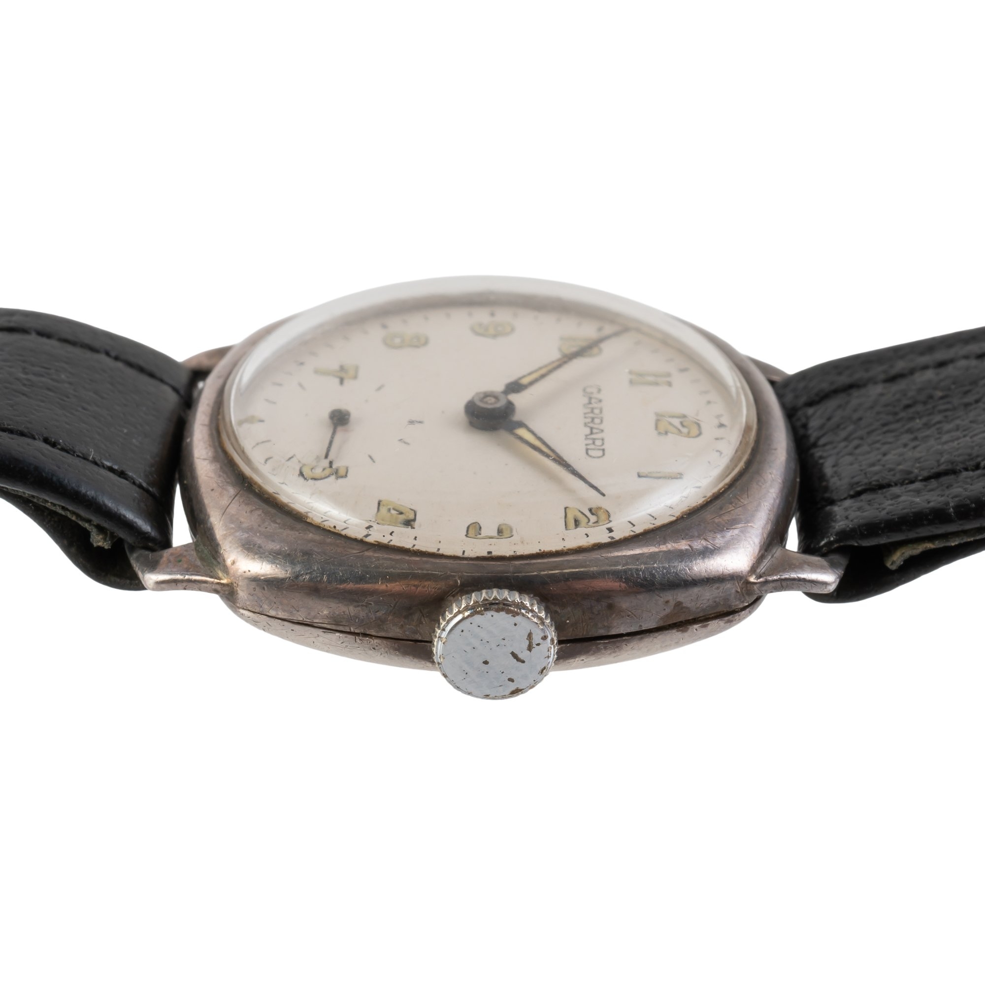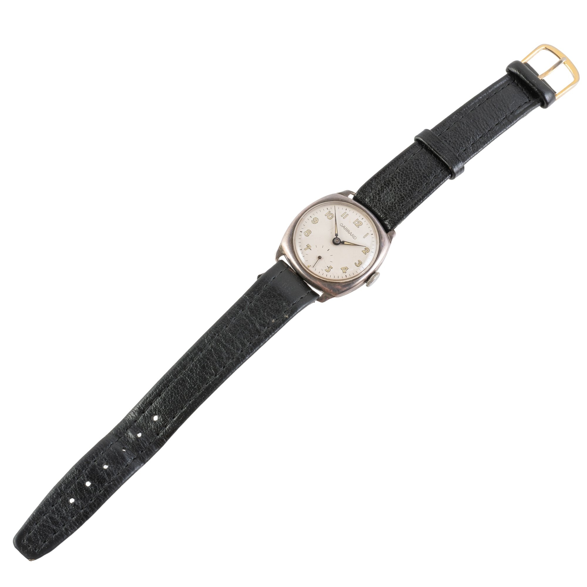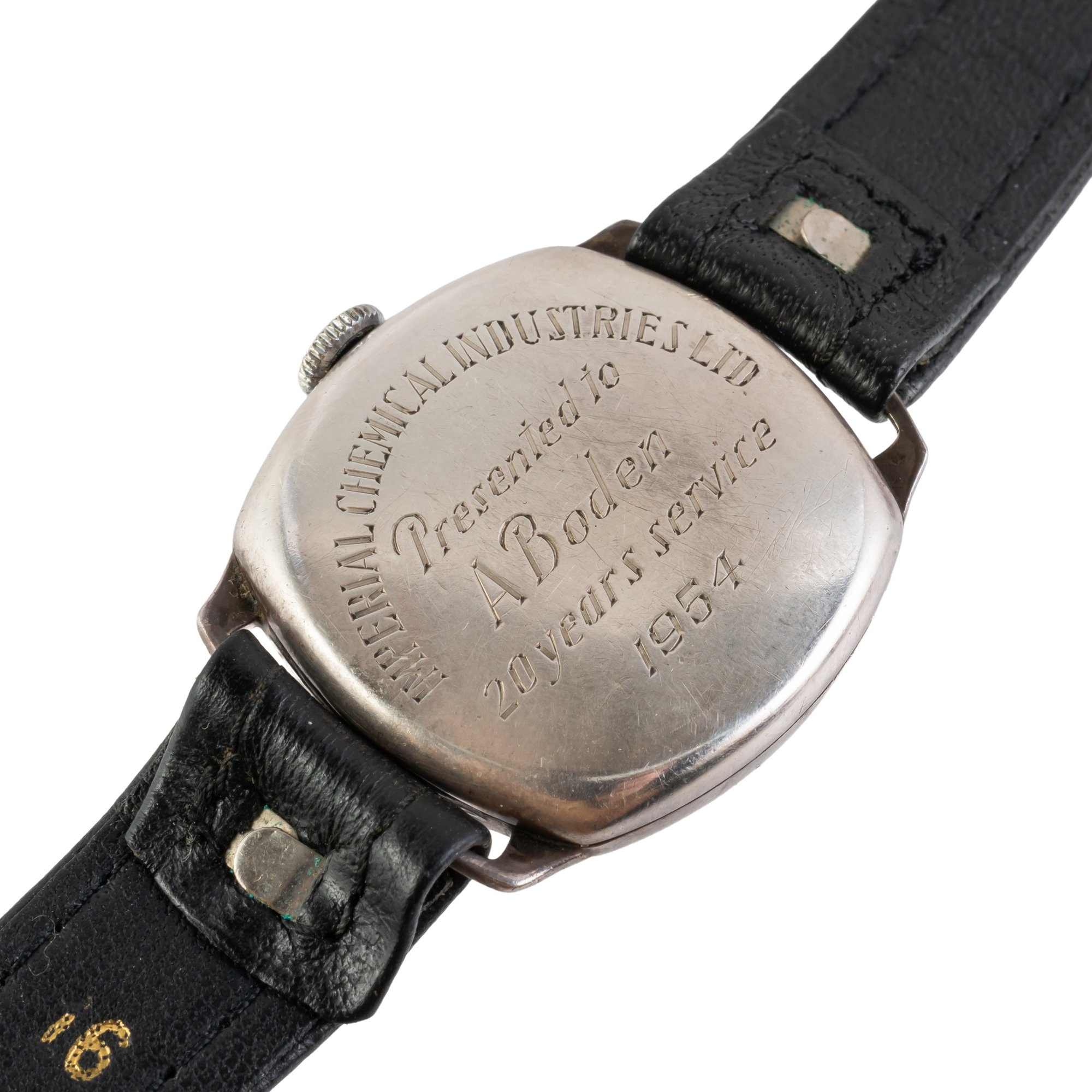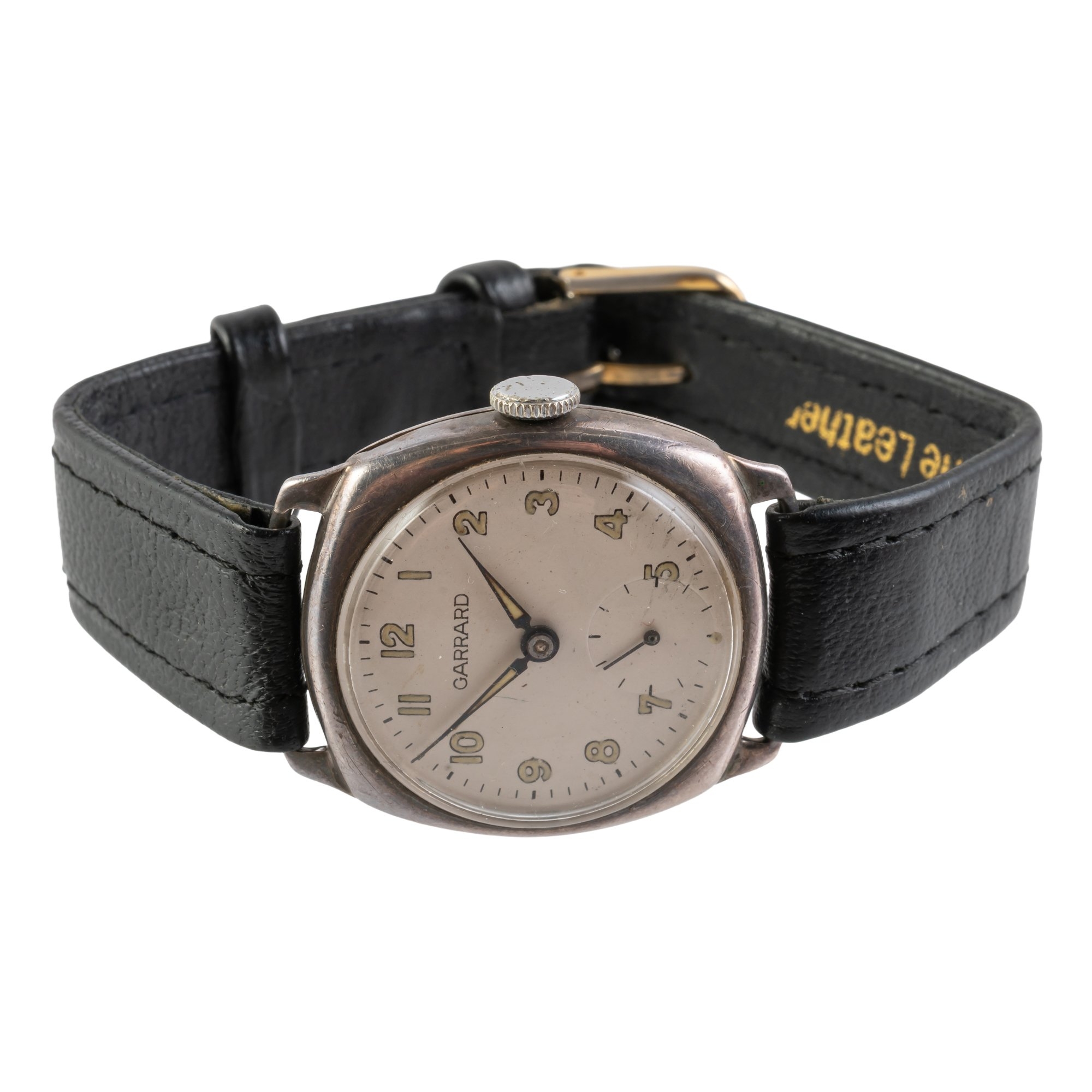 Featuring a Swiss-made handwound movement in a silver case measuring 29mm with a white dial and seconds sub-dial, all on a black leather strap with a box.