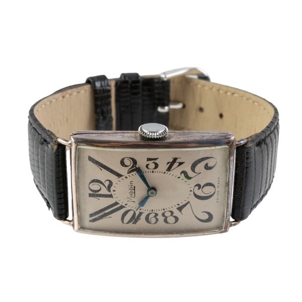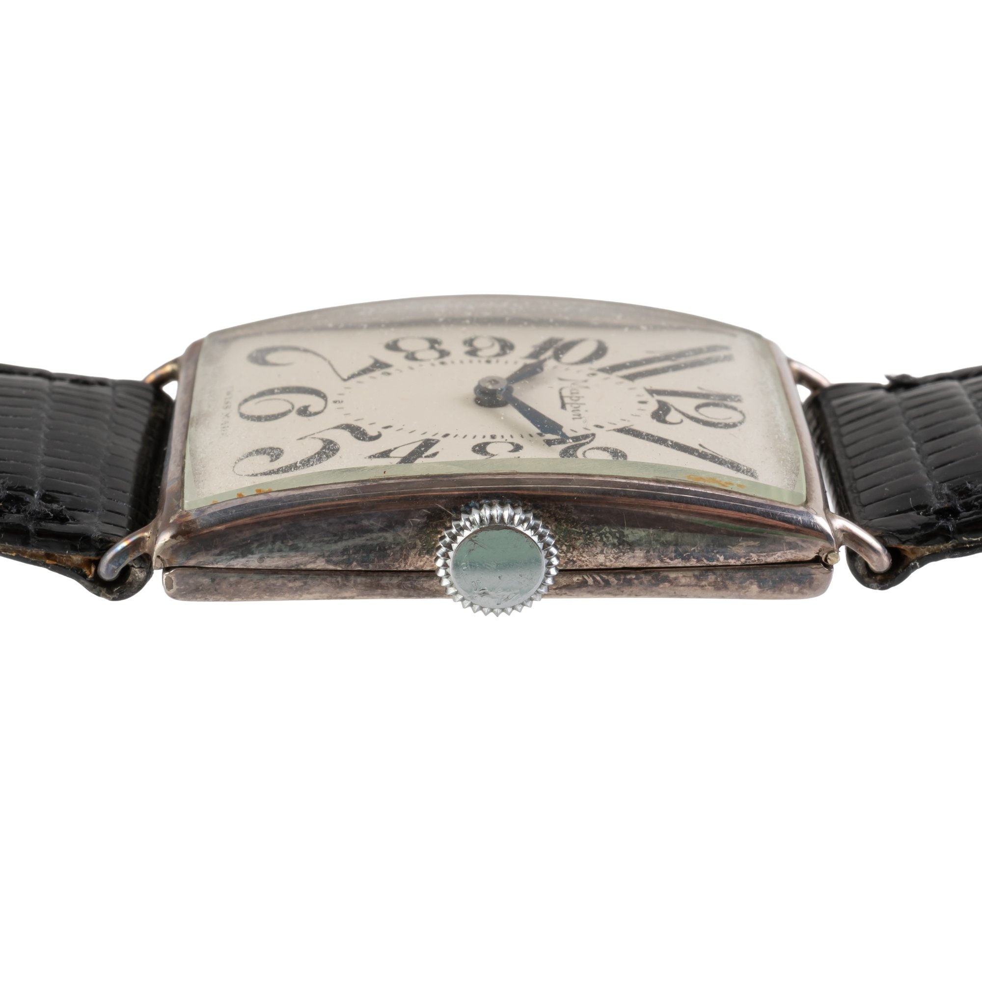 Featuring a hand-wound movement in a rectangular silver case measuring 25mm wide with an off-white signed dial 'Mappin' with blued hands and Arabic numerals. London Silver import marks for 1926.