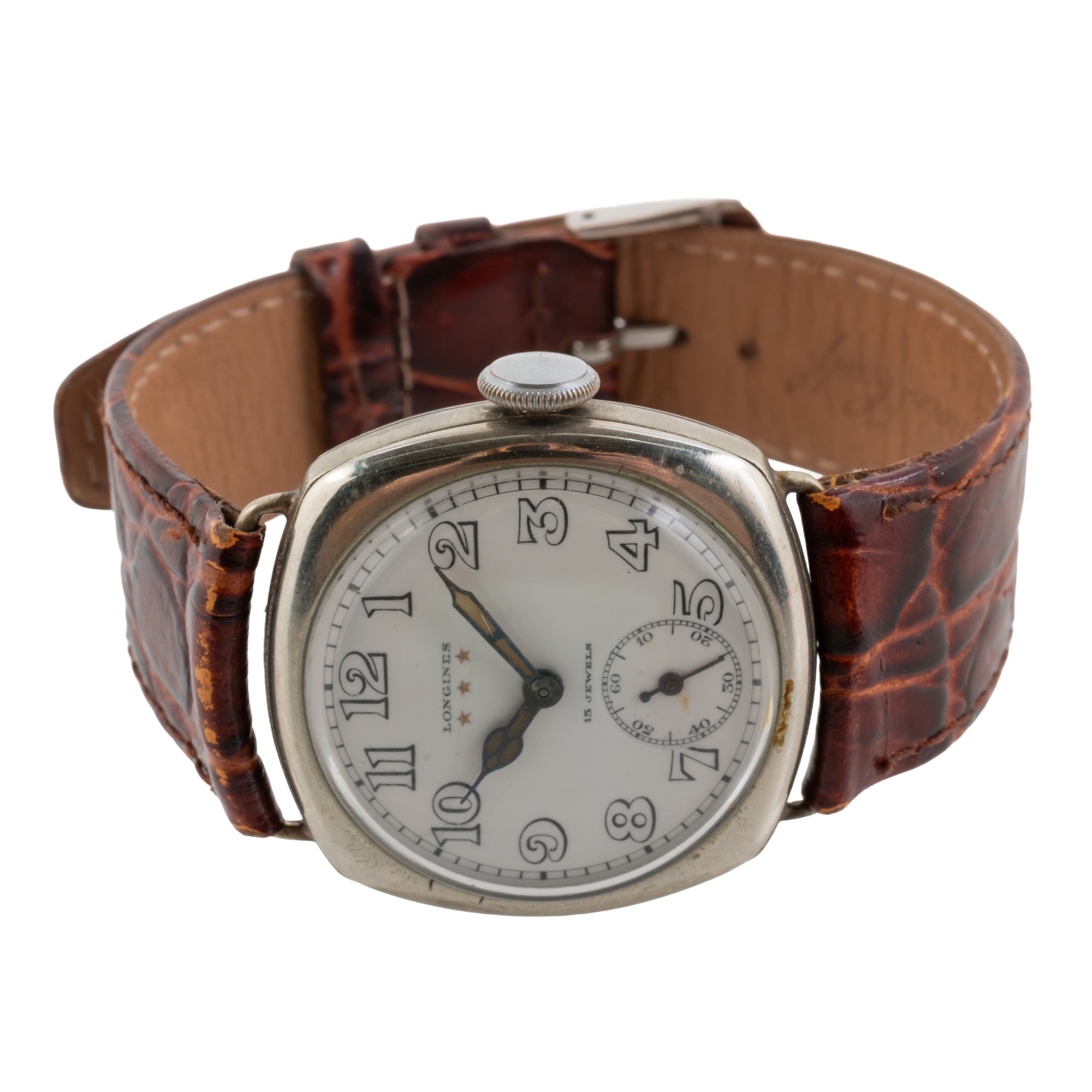 A 1928 LONGINES CUSHION SHAPED WRISTWATCH