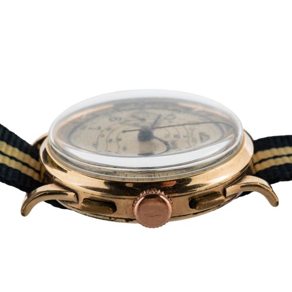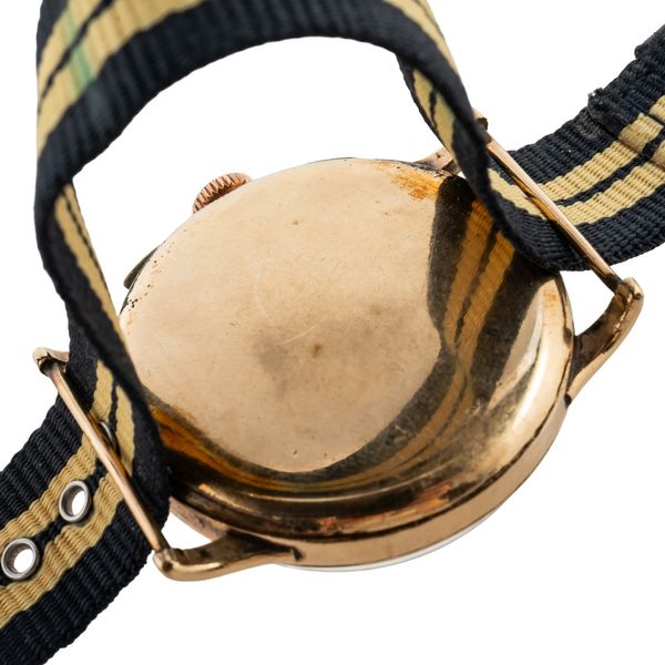 Featuring an unsigned mechanical movement in a gold-plated case measuring 38mm with a gold dial covered with acrylic glass, all on a NATO strap with a pin buckle.