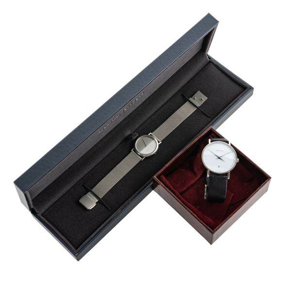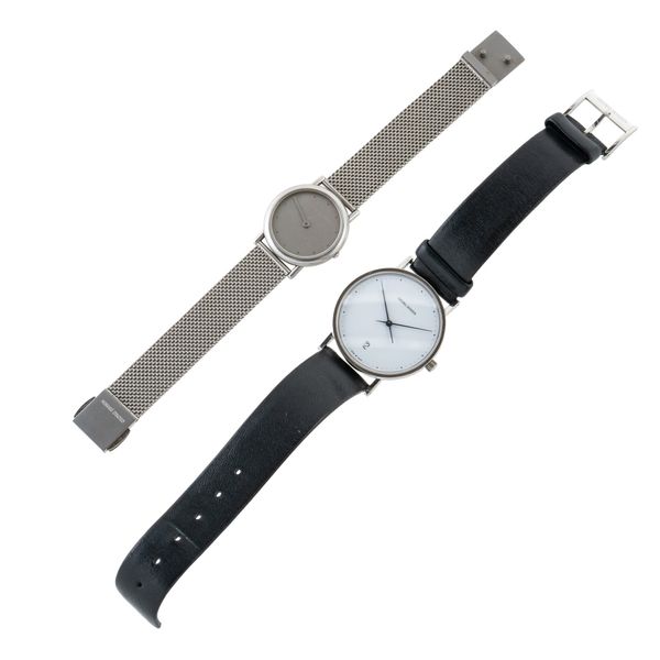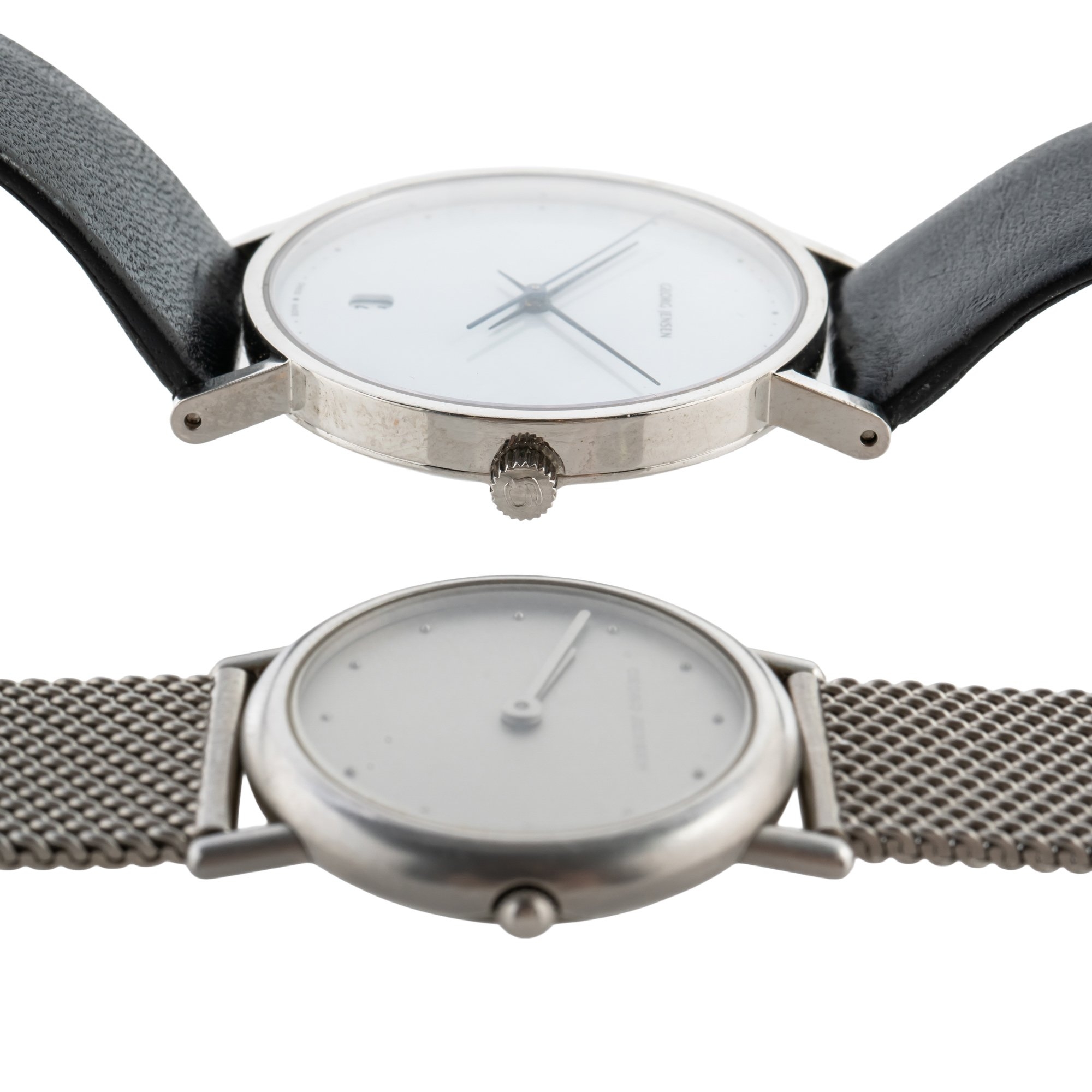 The second Georg Jensen watch No. 321 with serial 003336, features a quartz movement in a steel case measuring 32mm with a white dial on a black leather strap.