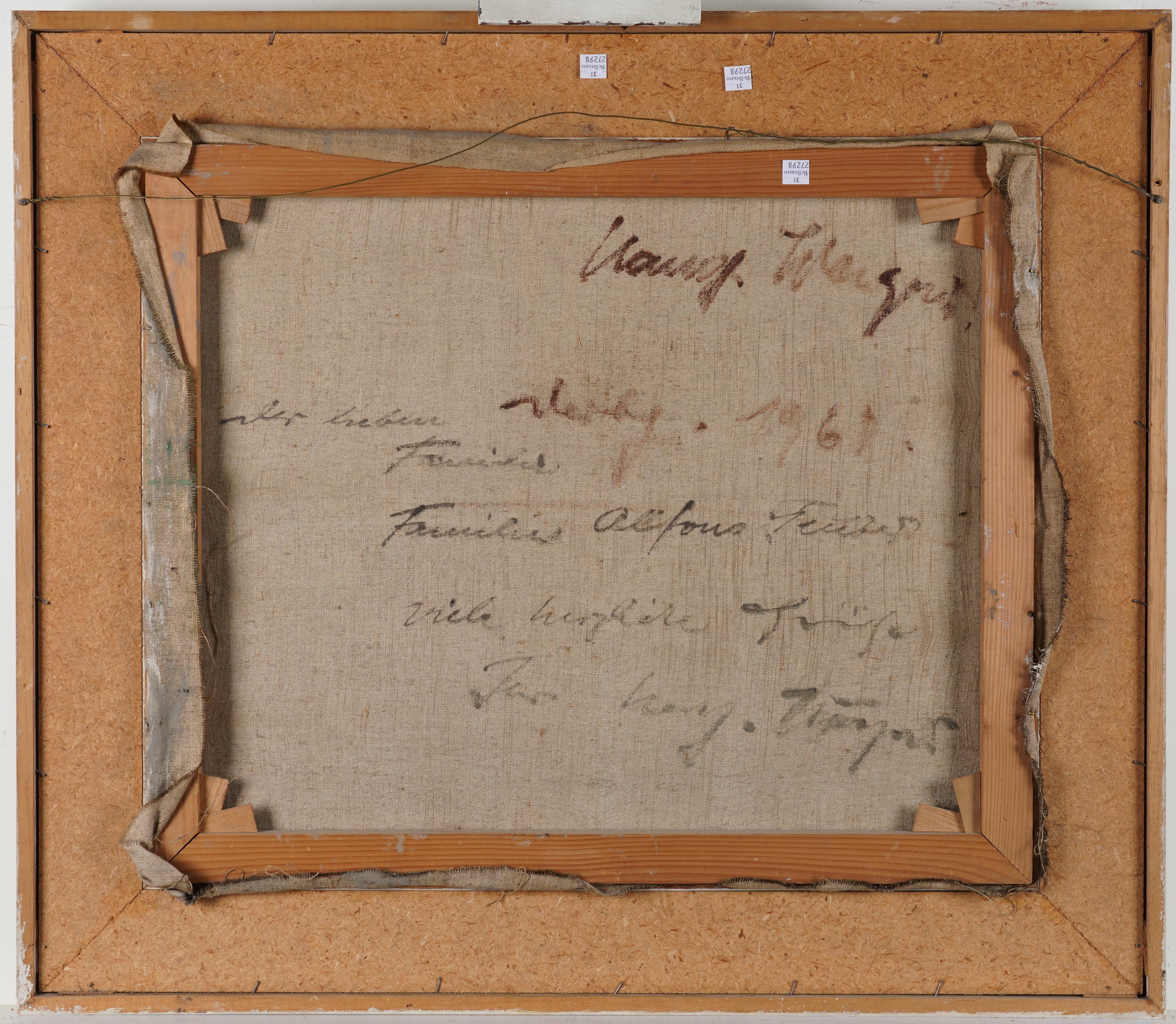 indistinctly signed and dated '1961' (lower right) and further indistinctly signed, dated, titled and inscribed in French (verso)