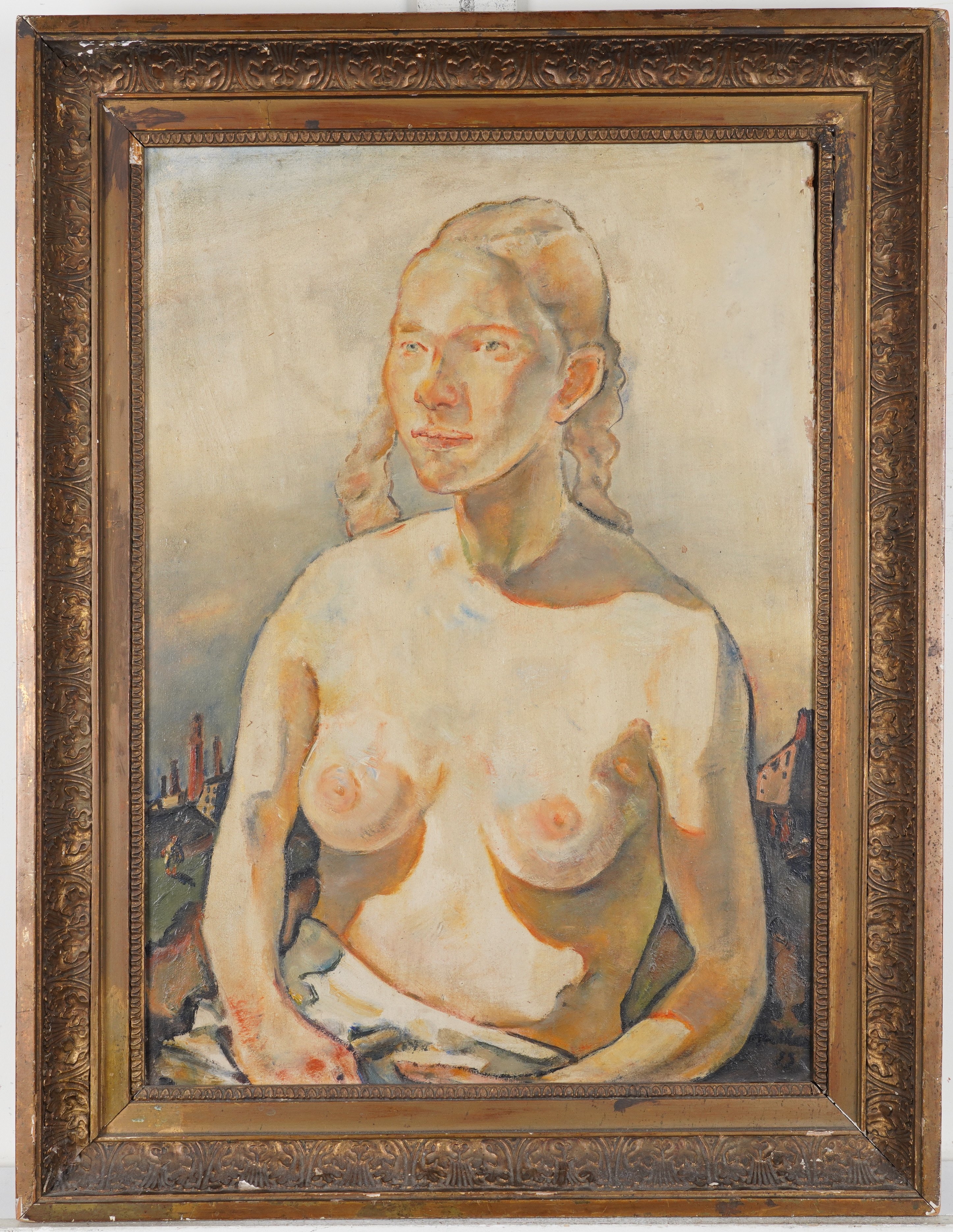 A female nude signed and dated 'Huther 23' (lower right) oil on board 69.5 x 49.5cm Provenance Private collection, UK