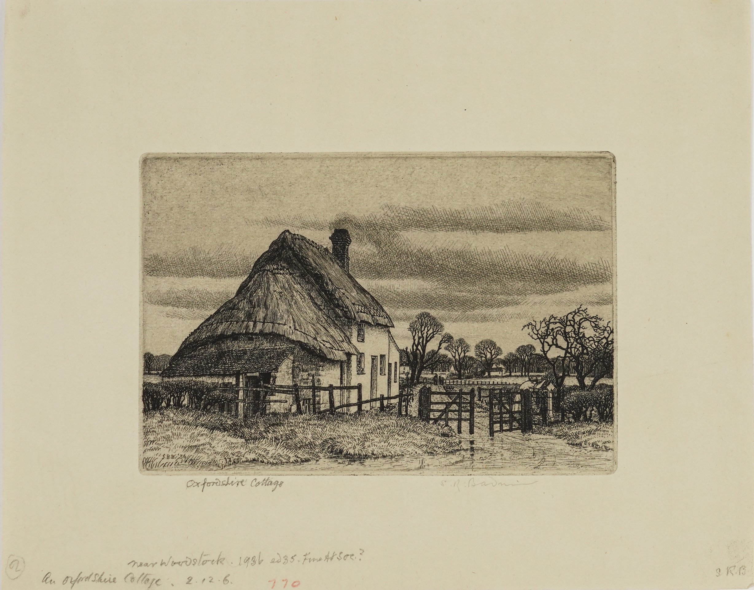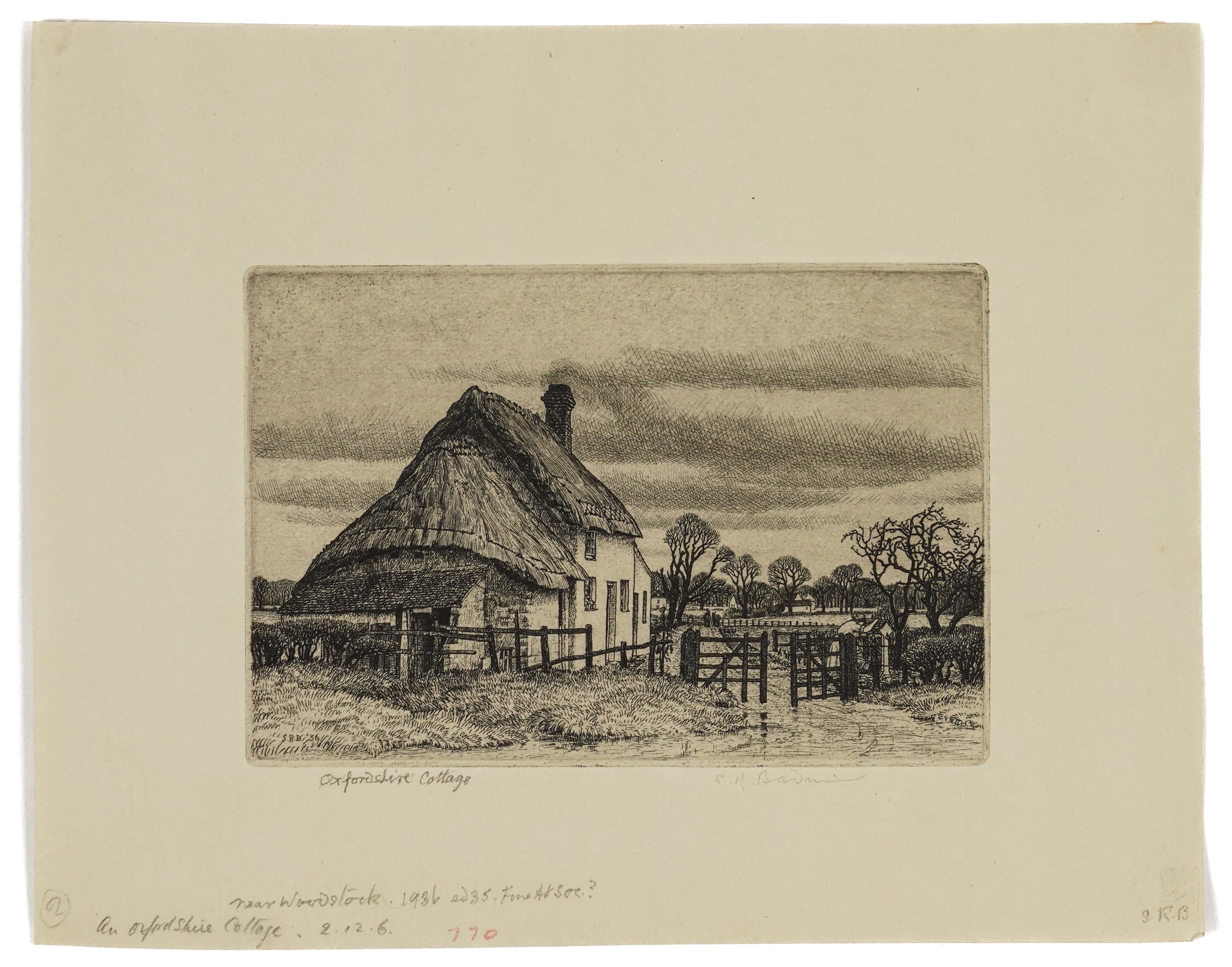 signed, titled and inscribed 'S.R. Badmin/ near Woodstock. 1936 ed.35. Fine Art Soc.?/ An Oxfordshire Cottage. 2.12.6/ S.R.B.' (lower margin)