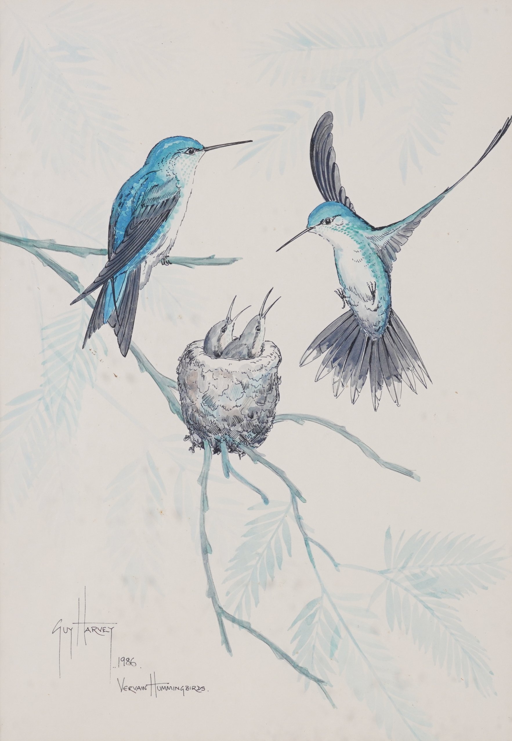 signed, dated and titled 'GUY HARVEY/ 1986/ VERVAIN HUMMINGBIRDS' (lower left)