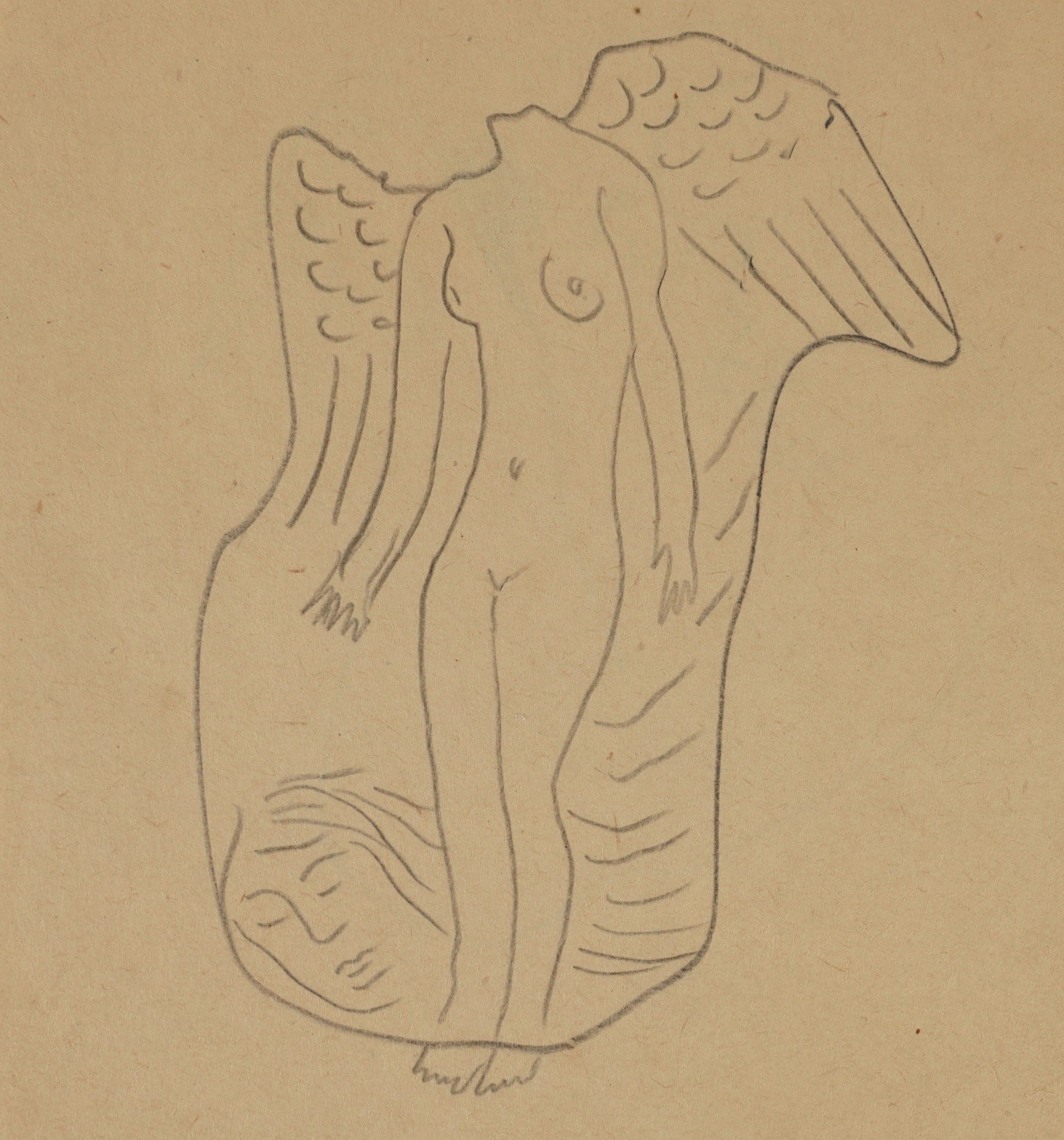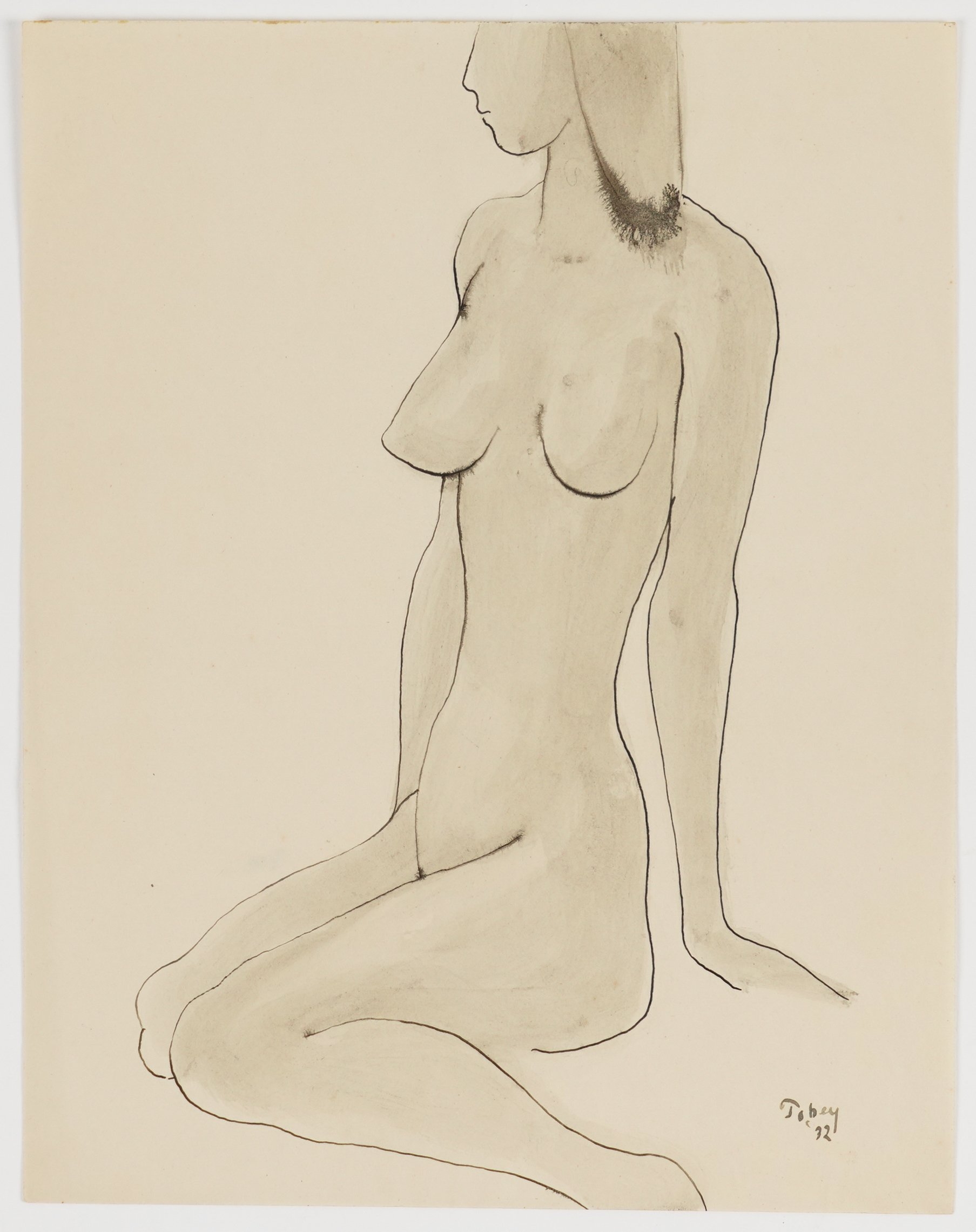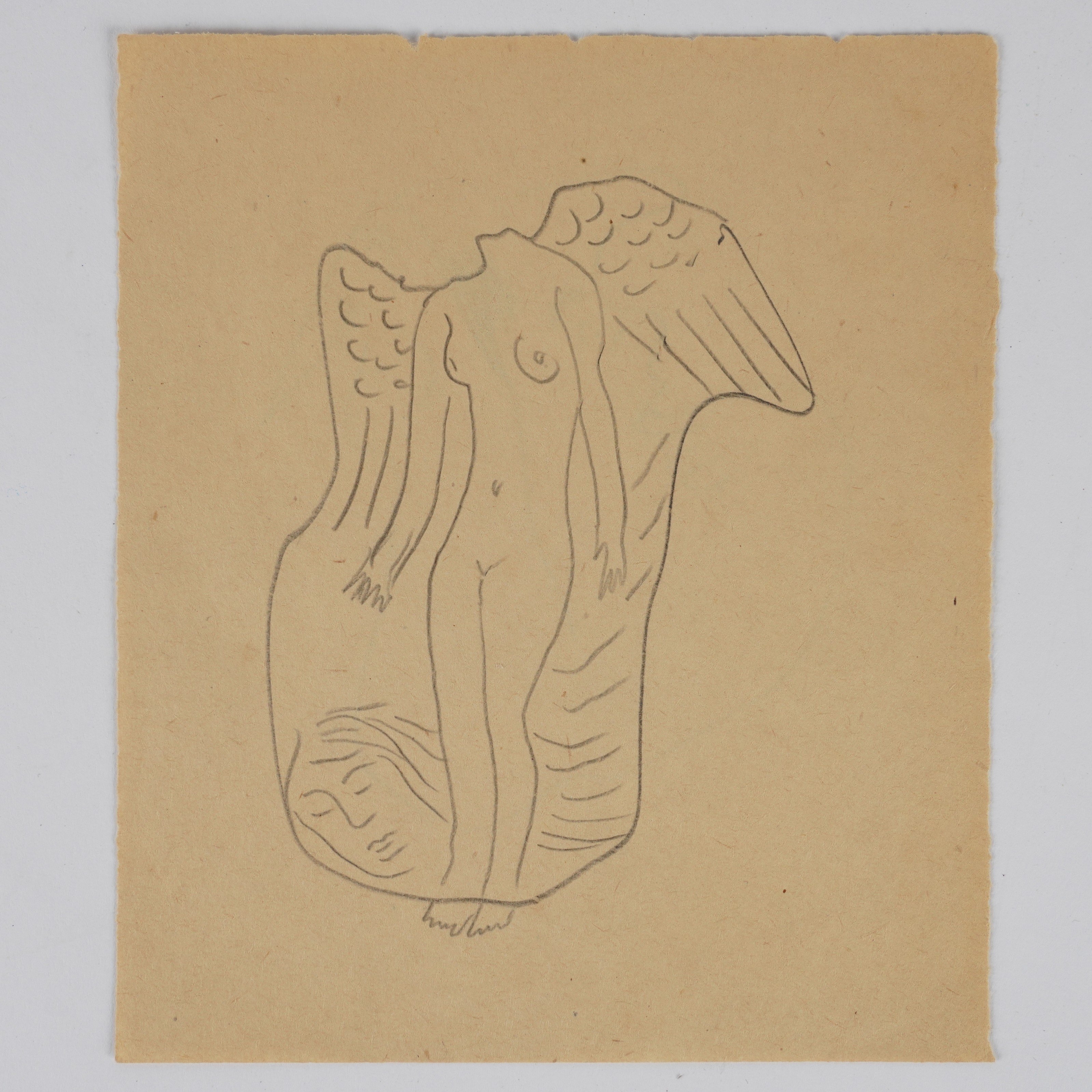 Angel (two head study, verso) pencil on paper 15 x 12.5cm ARR together with Female nude study, ink and wash, Attributed to Mark Tobey (2, both unframed)