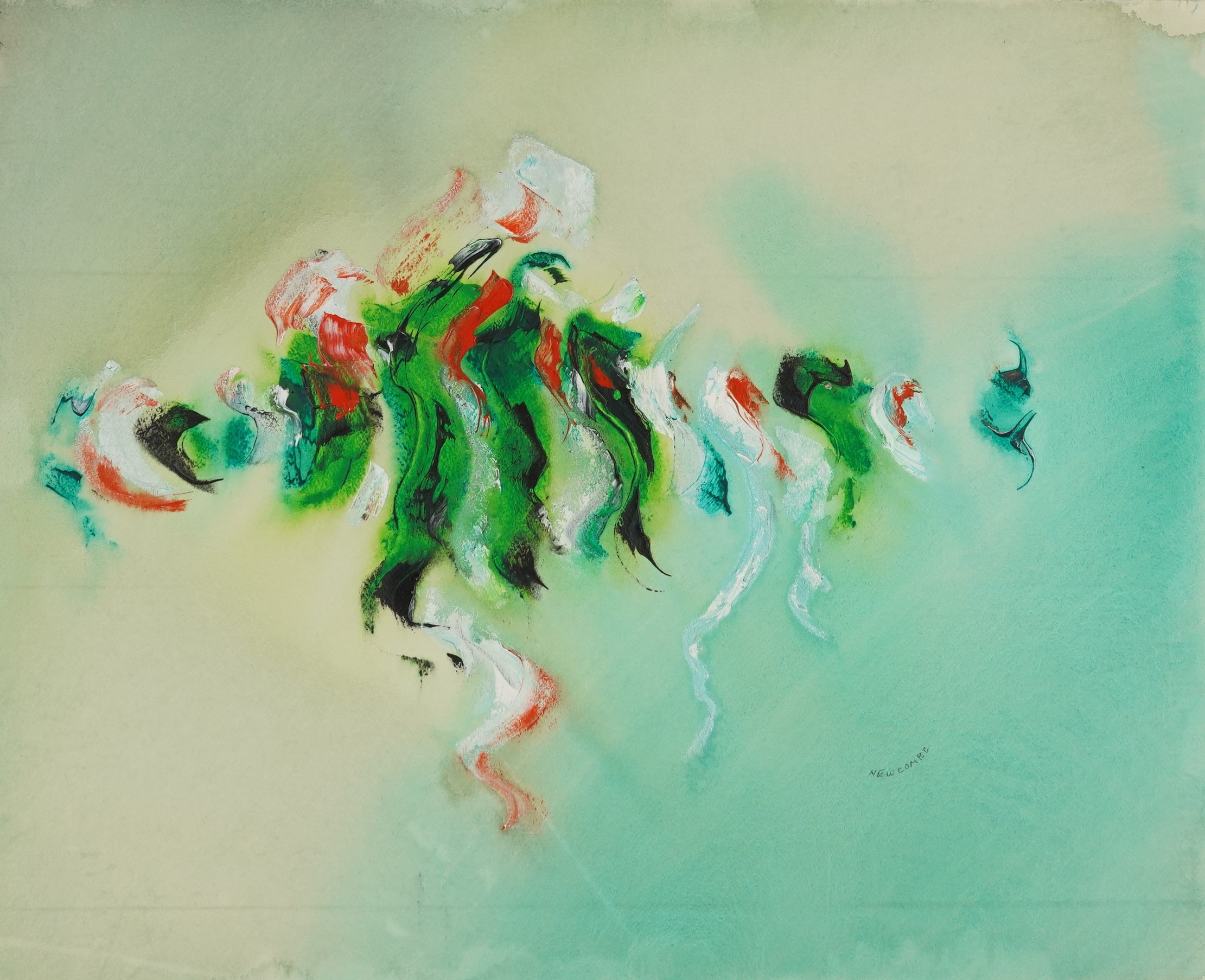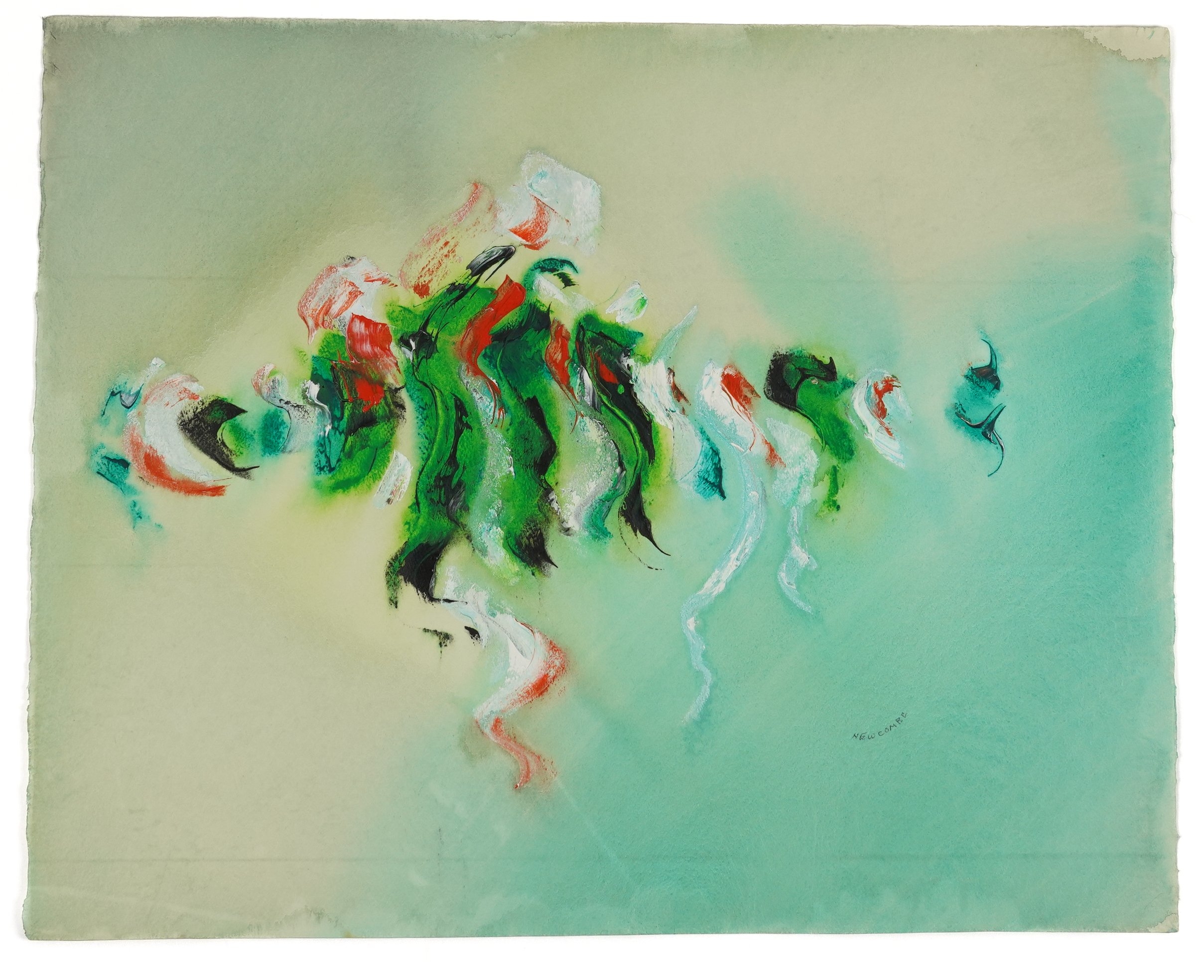 signed 'NEWCOMBE' (lower right), signed titled and dated 'LON - DEC. 1967' (verso)