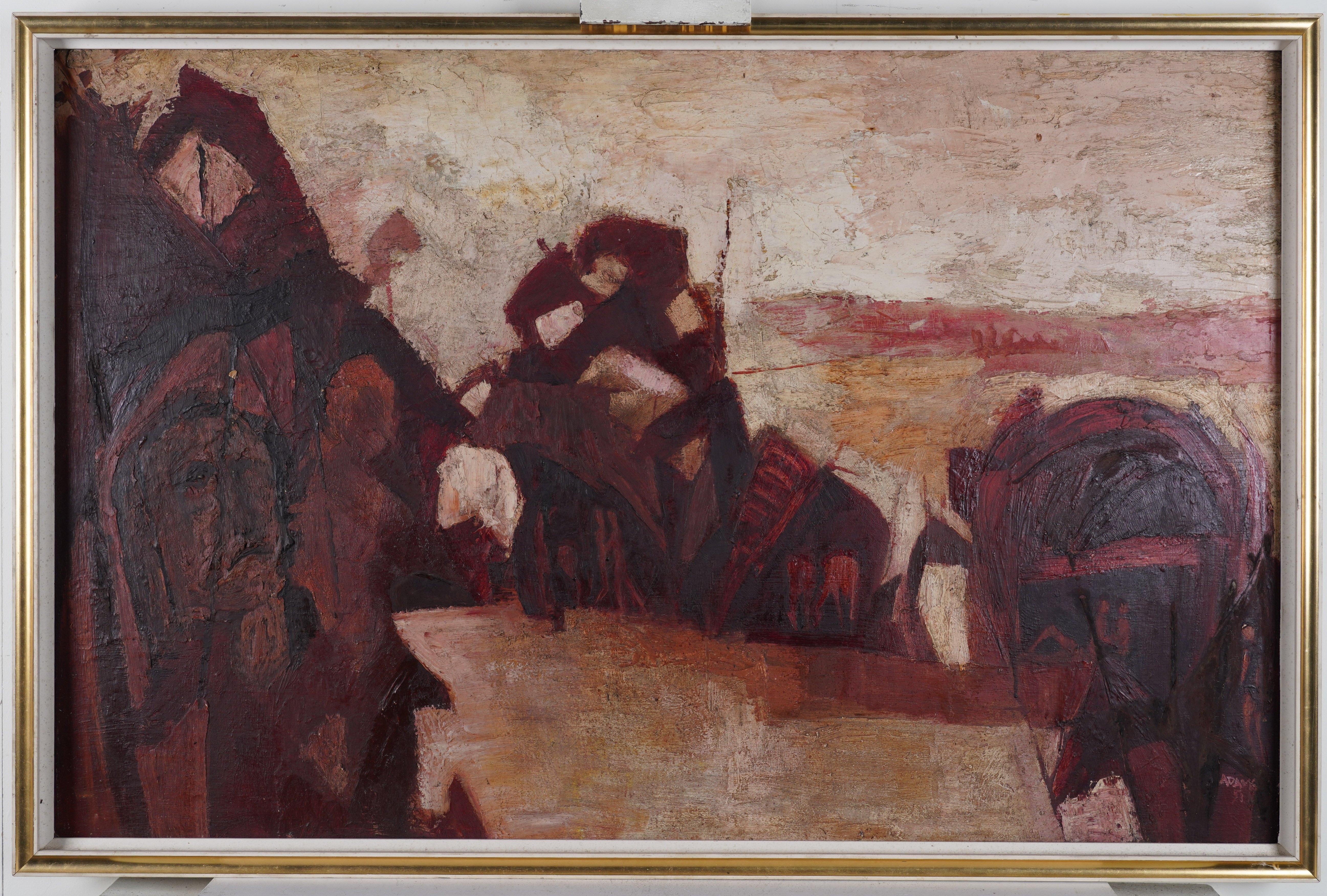 The Garden of Love signed and dated 'ADAMS 53' (lower right), inscribed with title on the artist's label (verso) oil on board 72 x 110cm ARR Provenance Private collection, UK