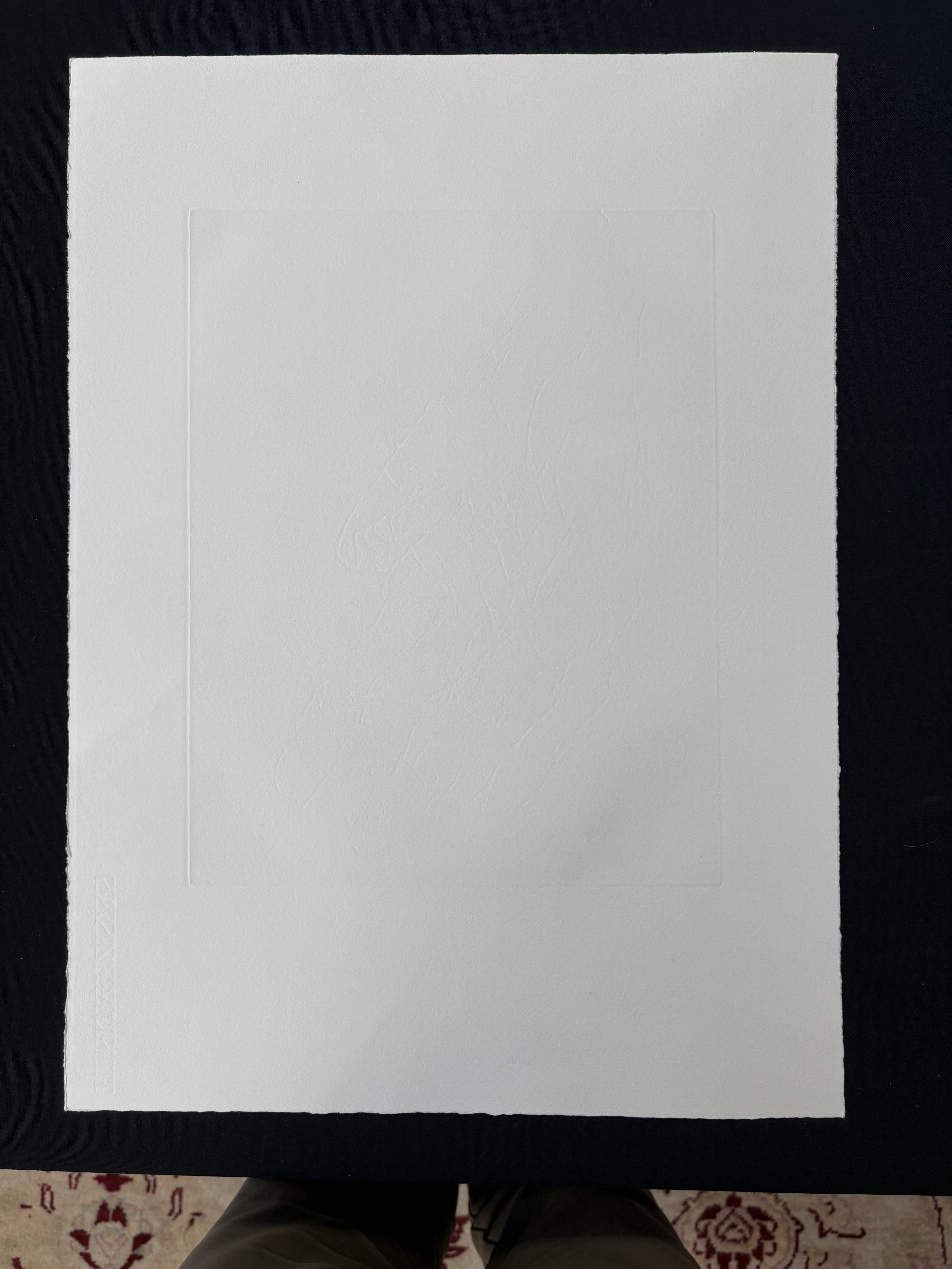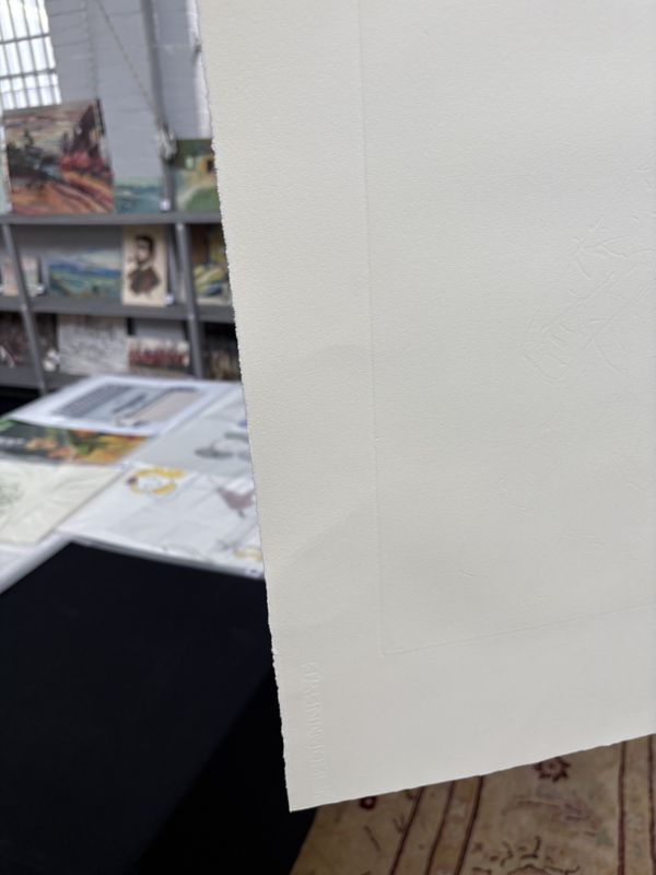 In a raking light, there are two minor, faint, partial creases visible to lower right margin. Please see additional photos.