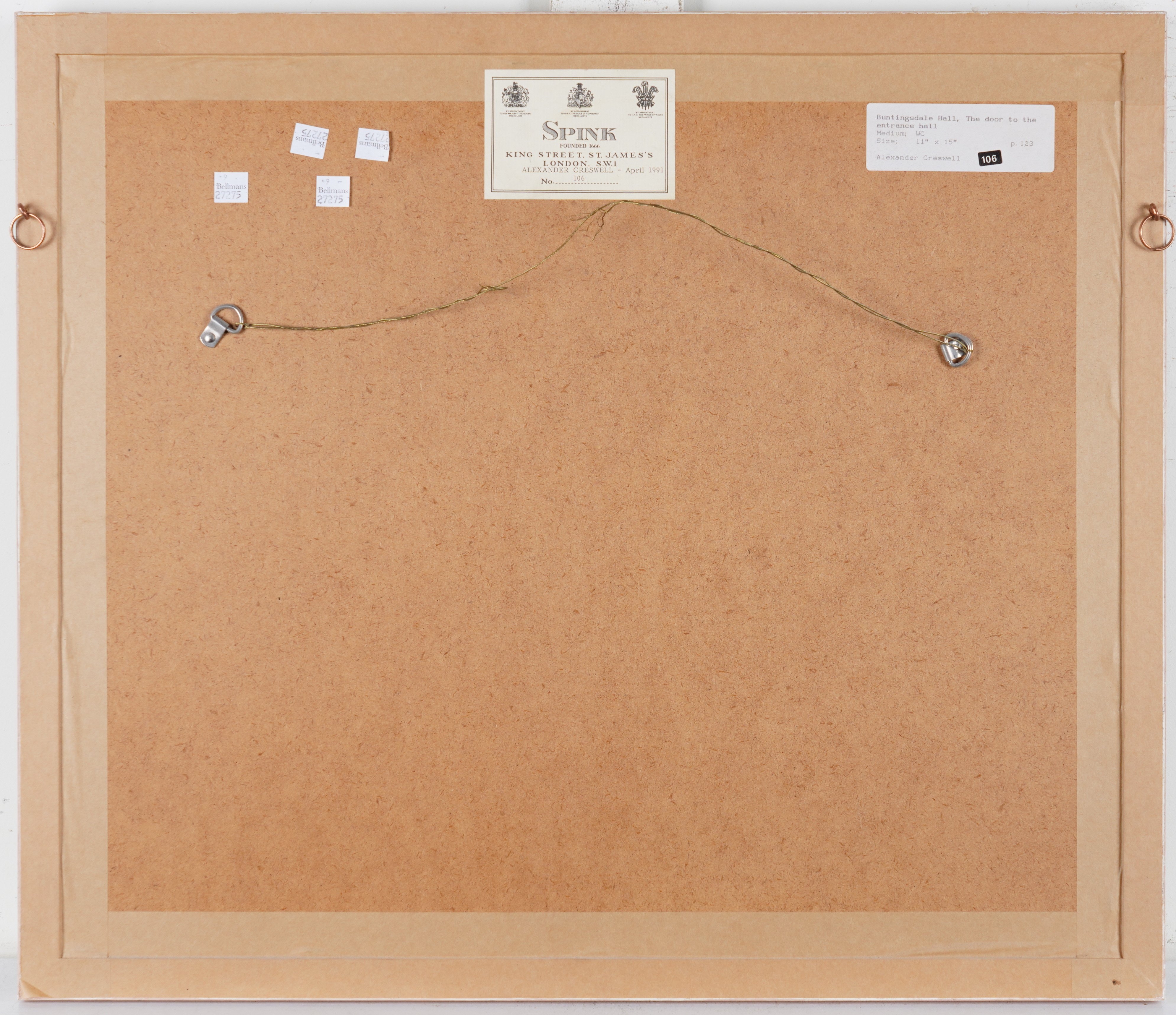 signed 'Alexander Creswell' (lower right) and with label (to backboard)
