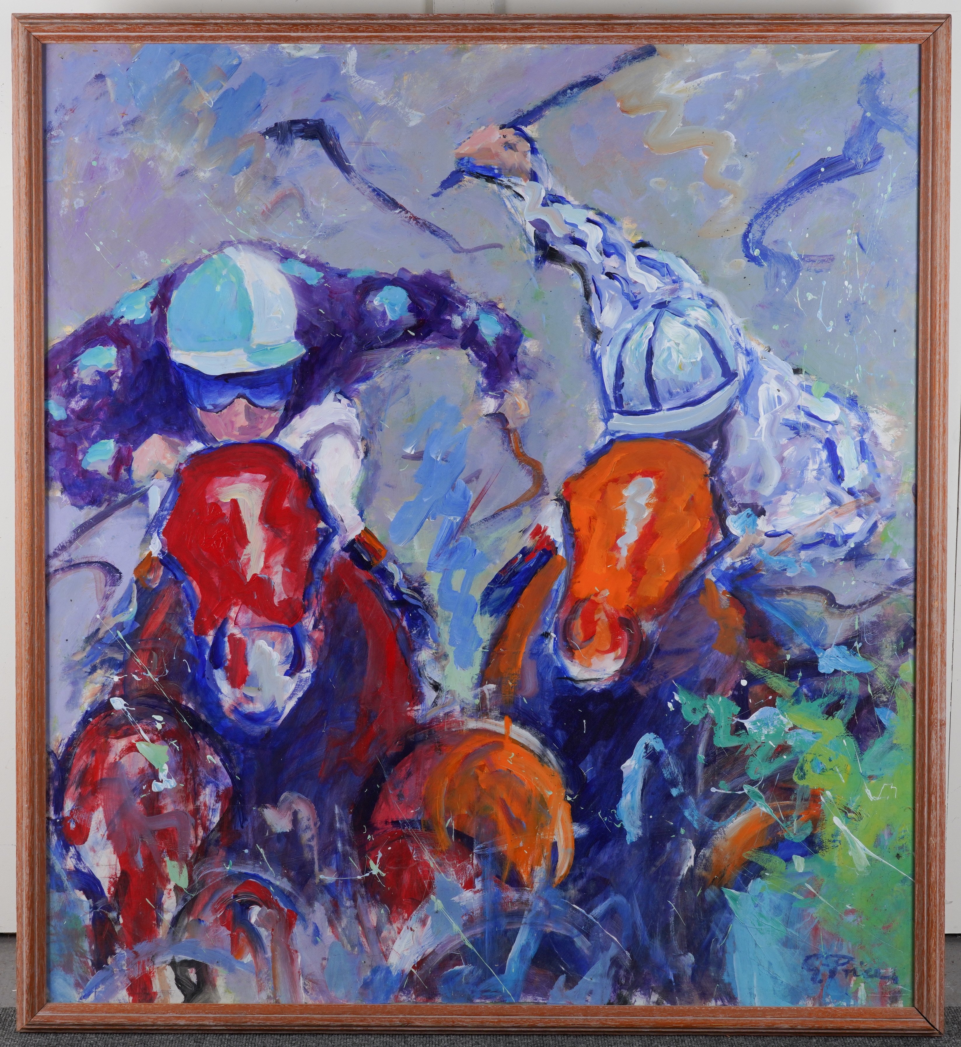Racing jockeys signed 'G. Price' (lower right) oil on board 110 x 100cm ARR