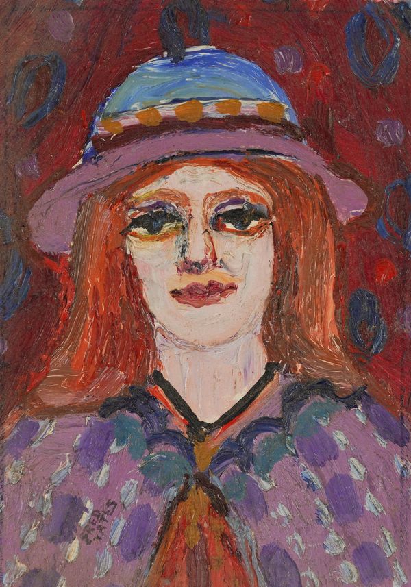 Lady in a blue hat signed 'FRED YATES' (lower left) oil on board 20.5 x 15cm (unframed) Provenance The Estate of the Artist