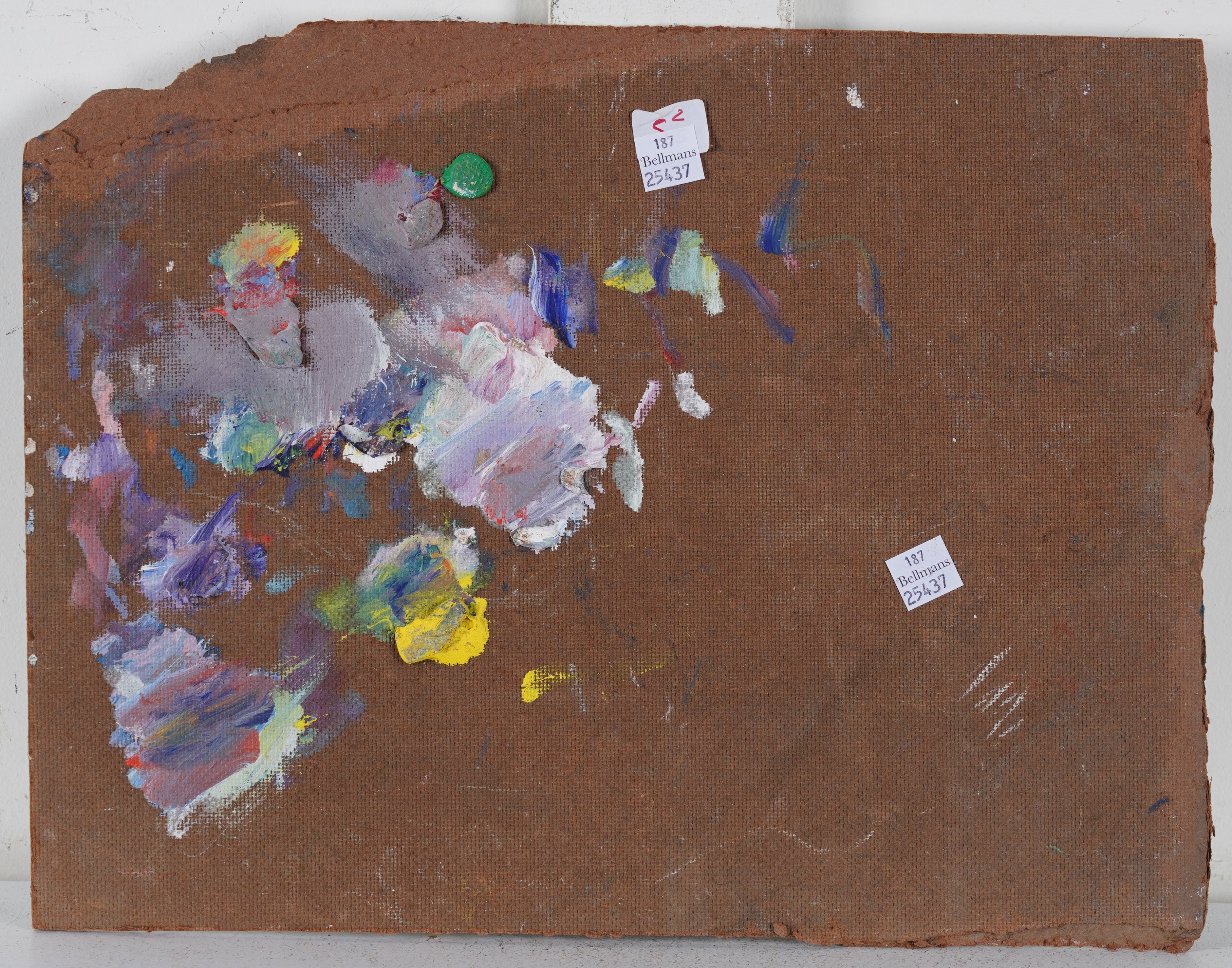 edges of the board are all uneven, particularly top right corner; some flecks of paint loss to borders; lines of craquelure to paint surface which is dirty; ultraviolet reveals no sign of retouching.
