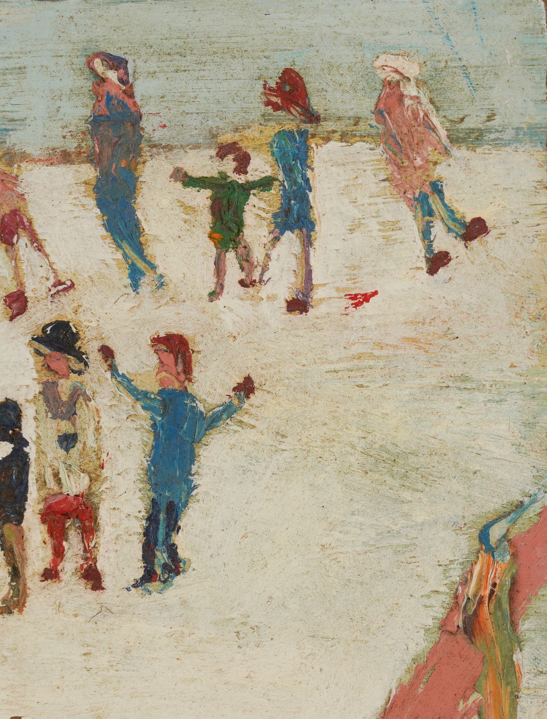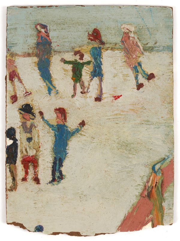 The board has been snapped so lower border is uneven; some minor paint loss to lower border and surface dirt; ultraviolet reveals some overpainting to the sky but this appears to be the hand of the artist.