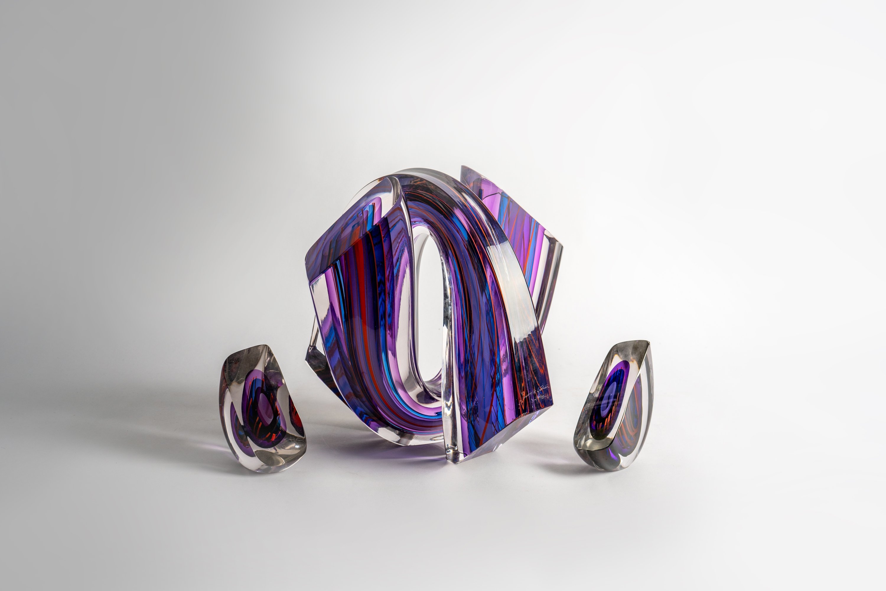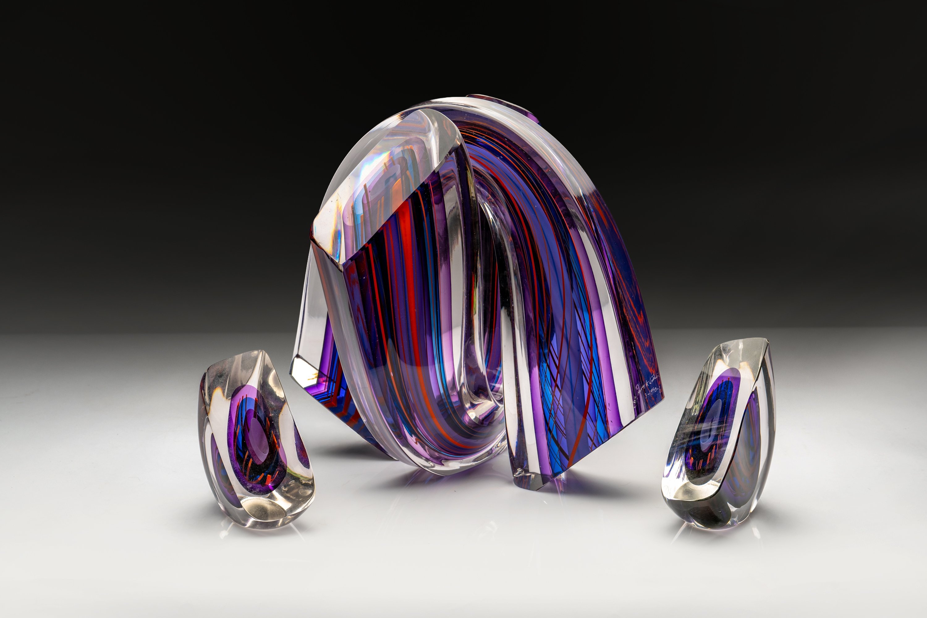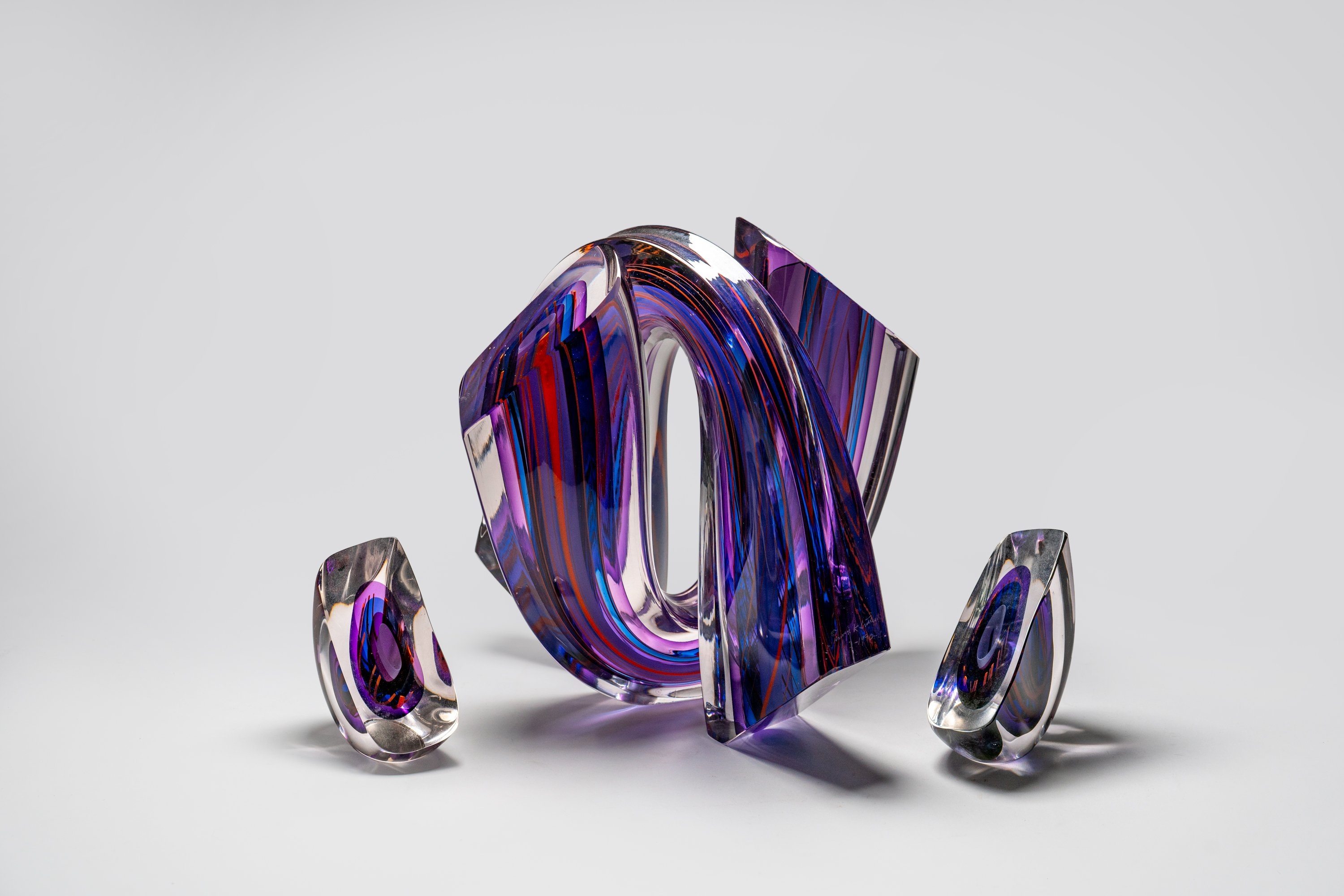 Works like ‘Purple Crossed Forms’ were made using individual coloured cups of glass, placed one inside the other so they become concentric.