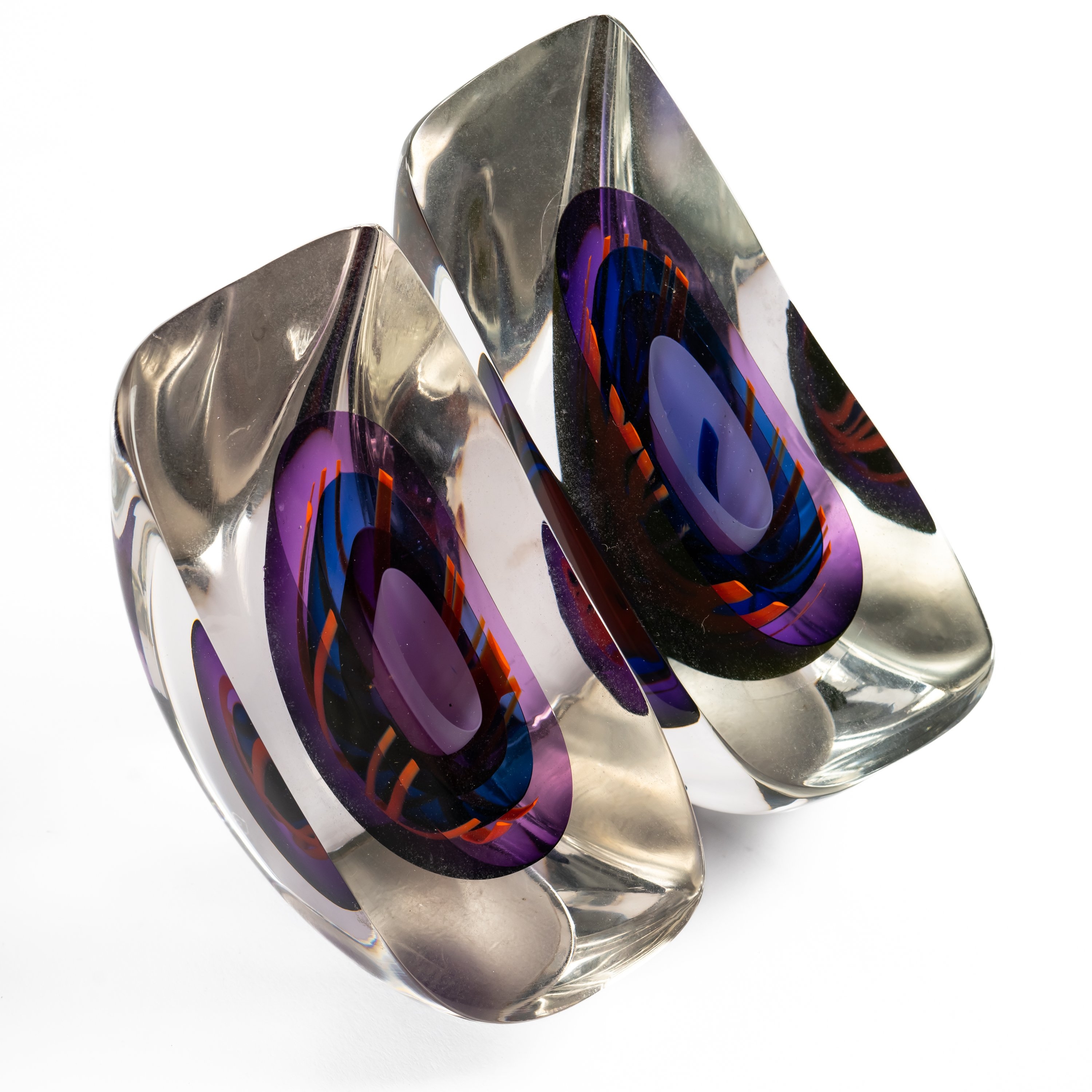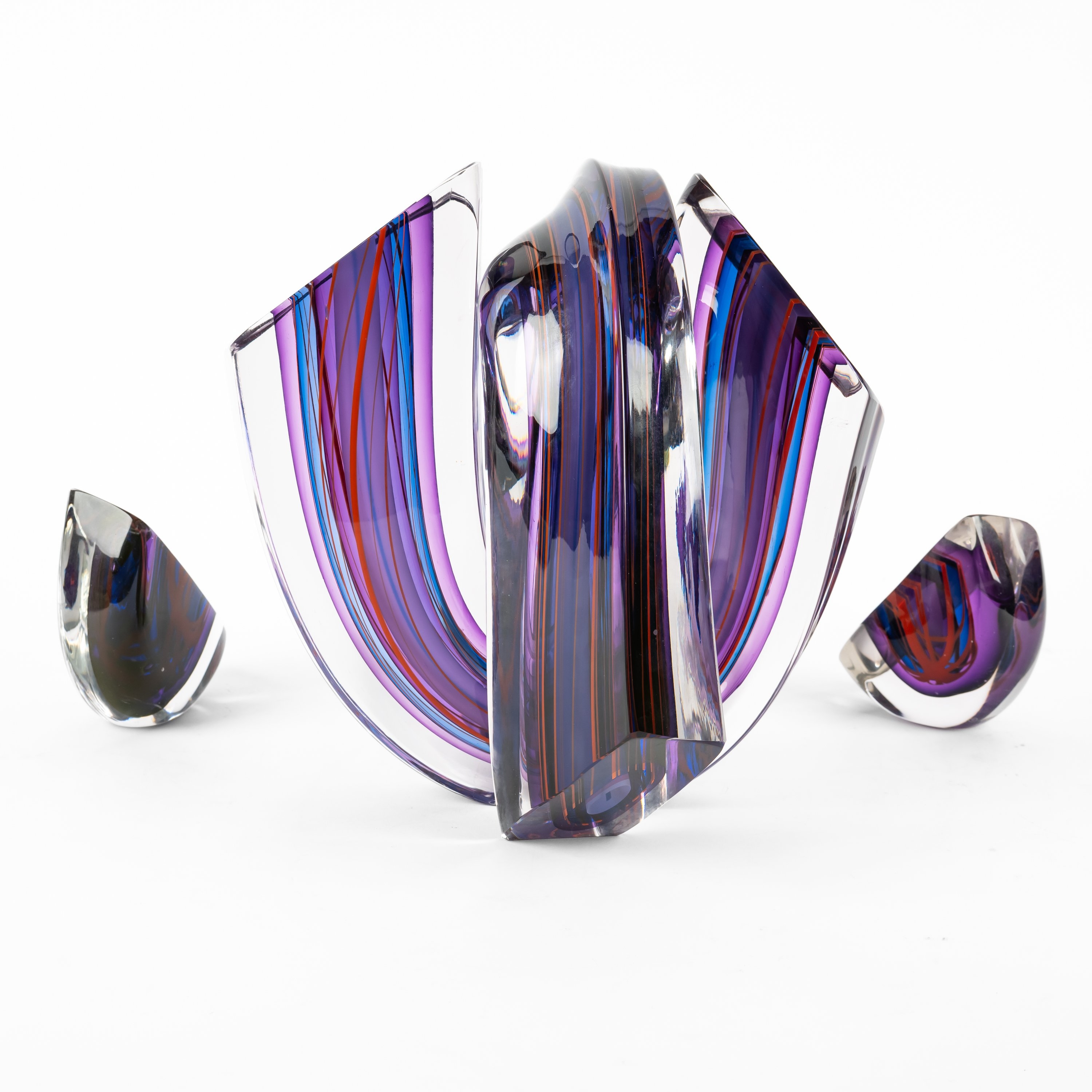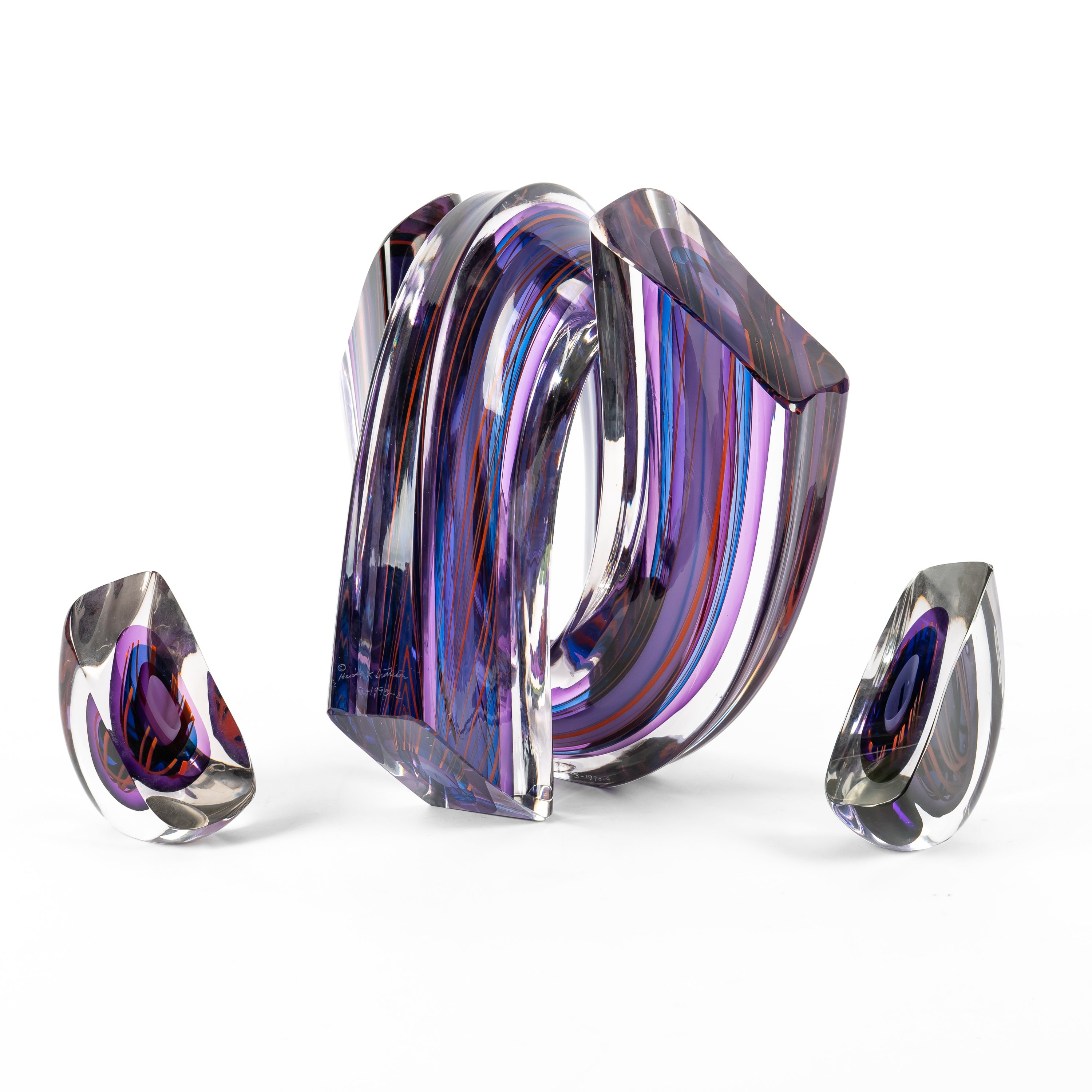 Works like ‘Purple Crossed Forms’ were made using individual coloured cups of glass, placed one inside the other so they become concentric.